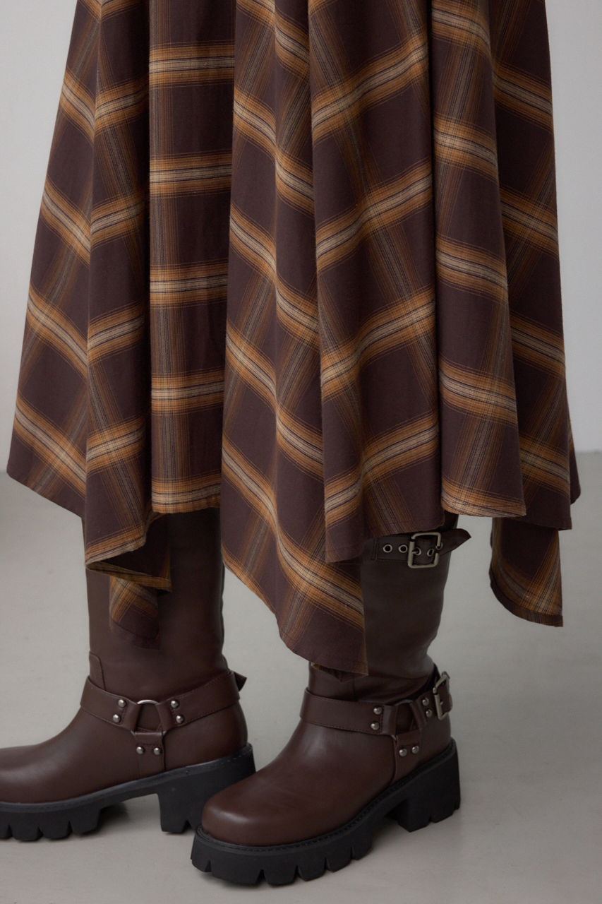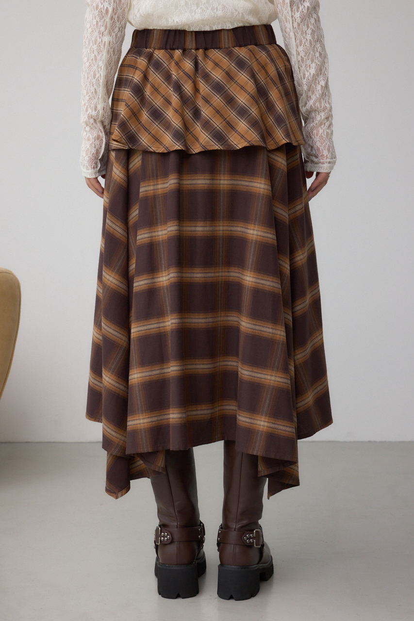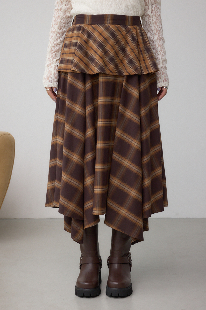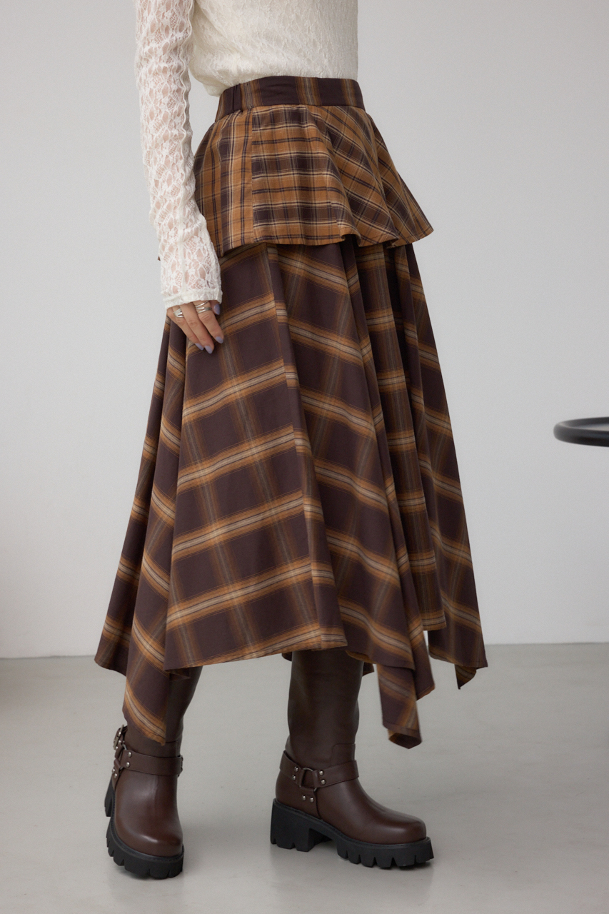 2素材のチェック柄を使用したレイヤ―ドデザインもポイント。