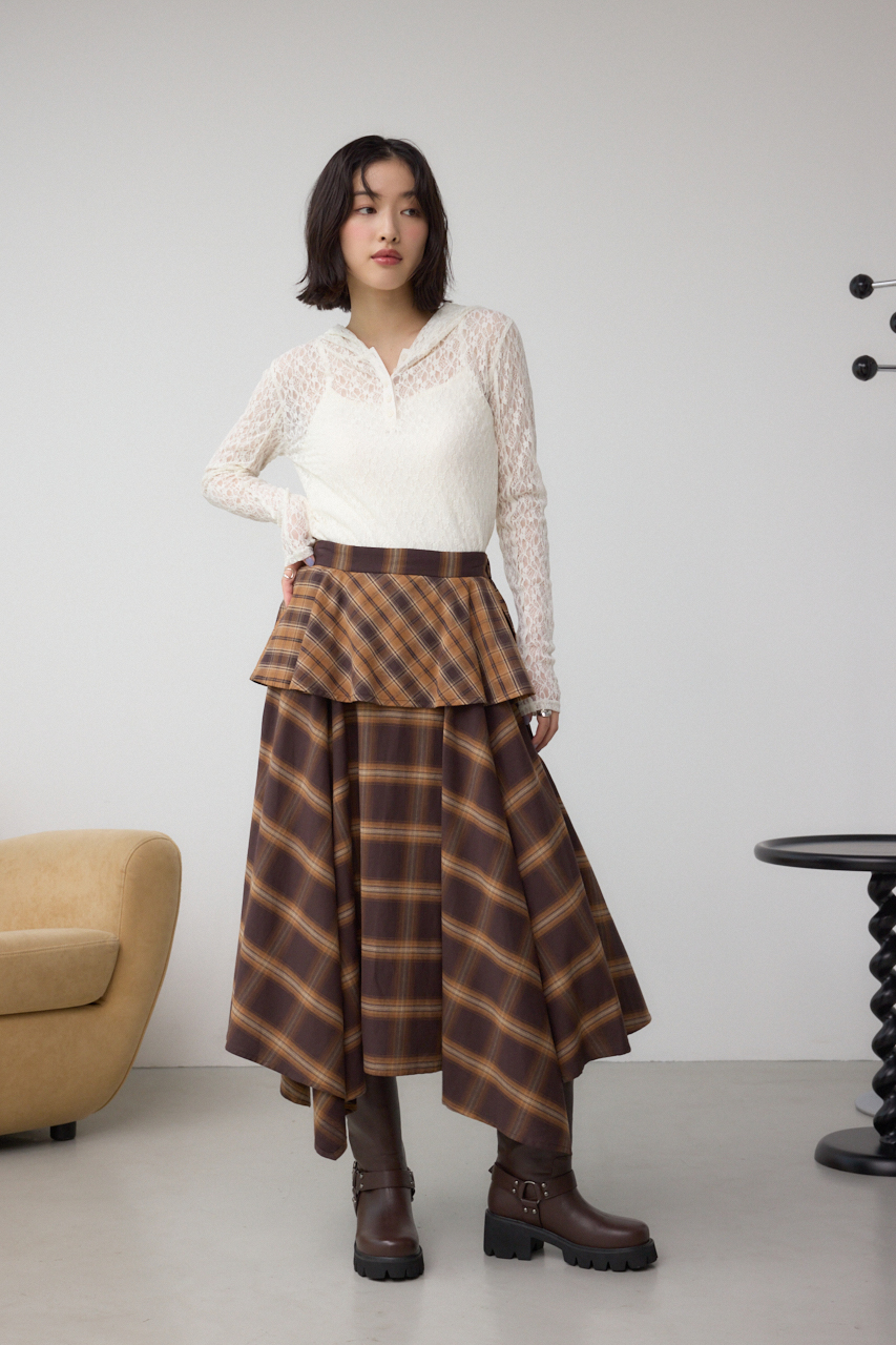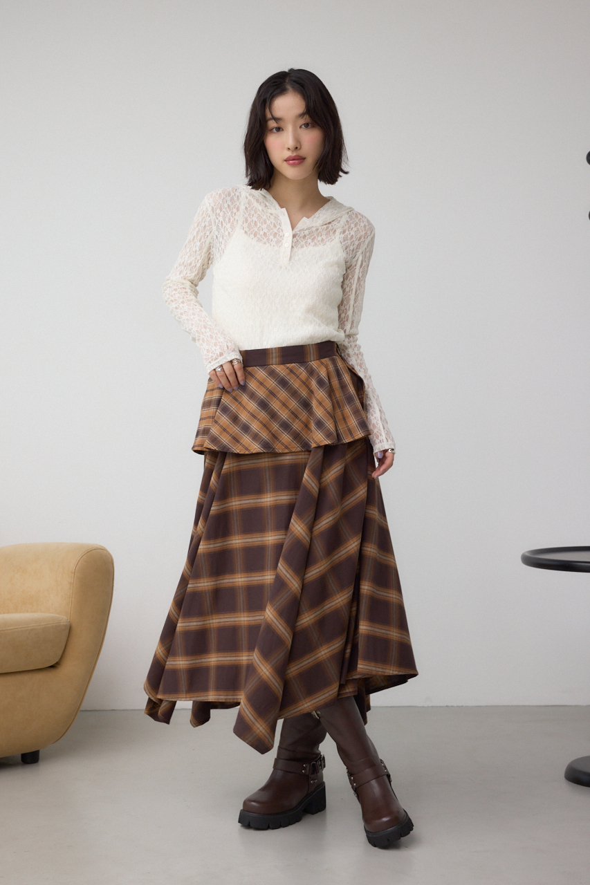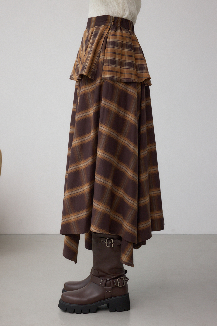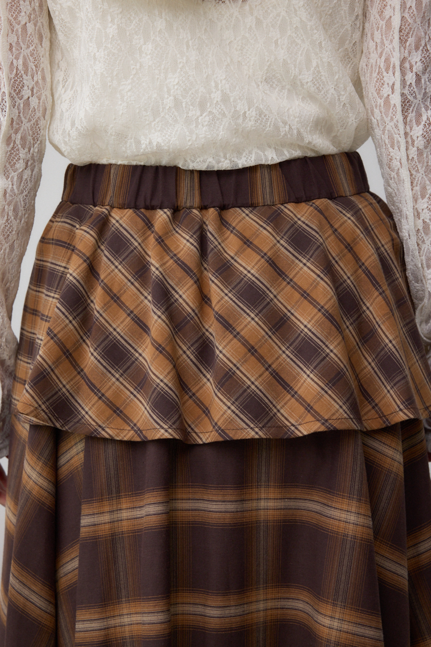 2素材のチェック柄を使用したレイヤ―ドデザインもポイント。
