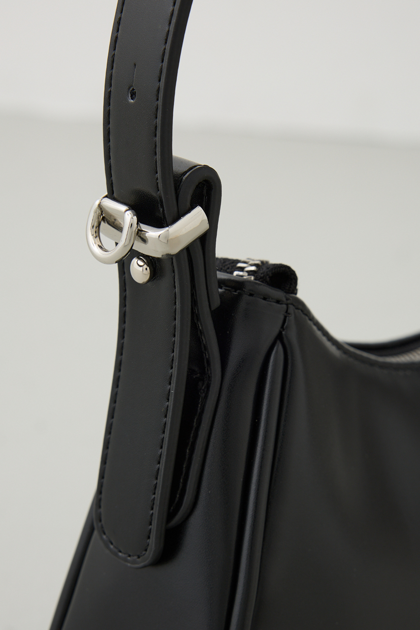高級感のある合成皮革とメタルパーツが際立つモードなワンハンドルバッグ。