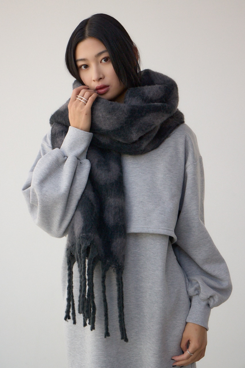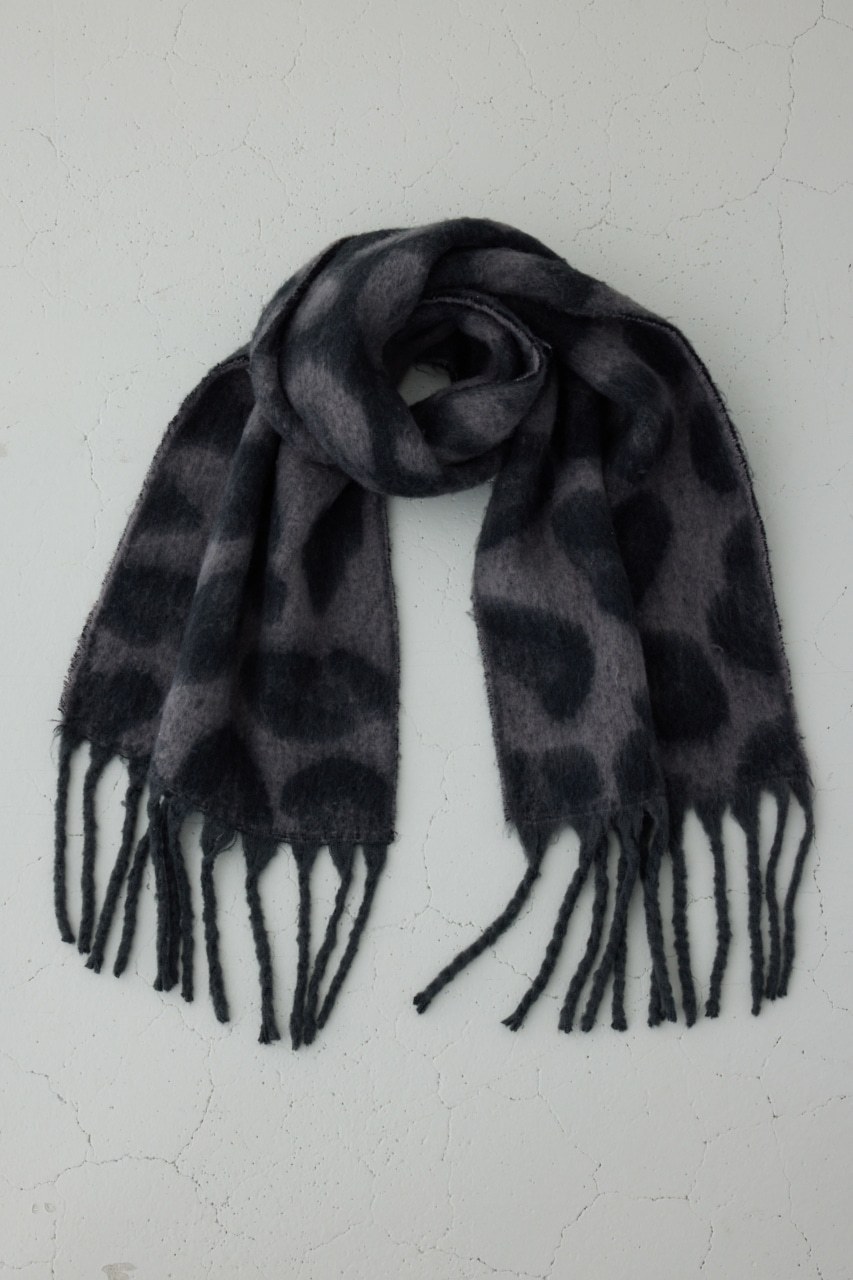 大きめのレオパード柄が今季らしいアクセントになる、レオパードジャガードマフラー。