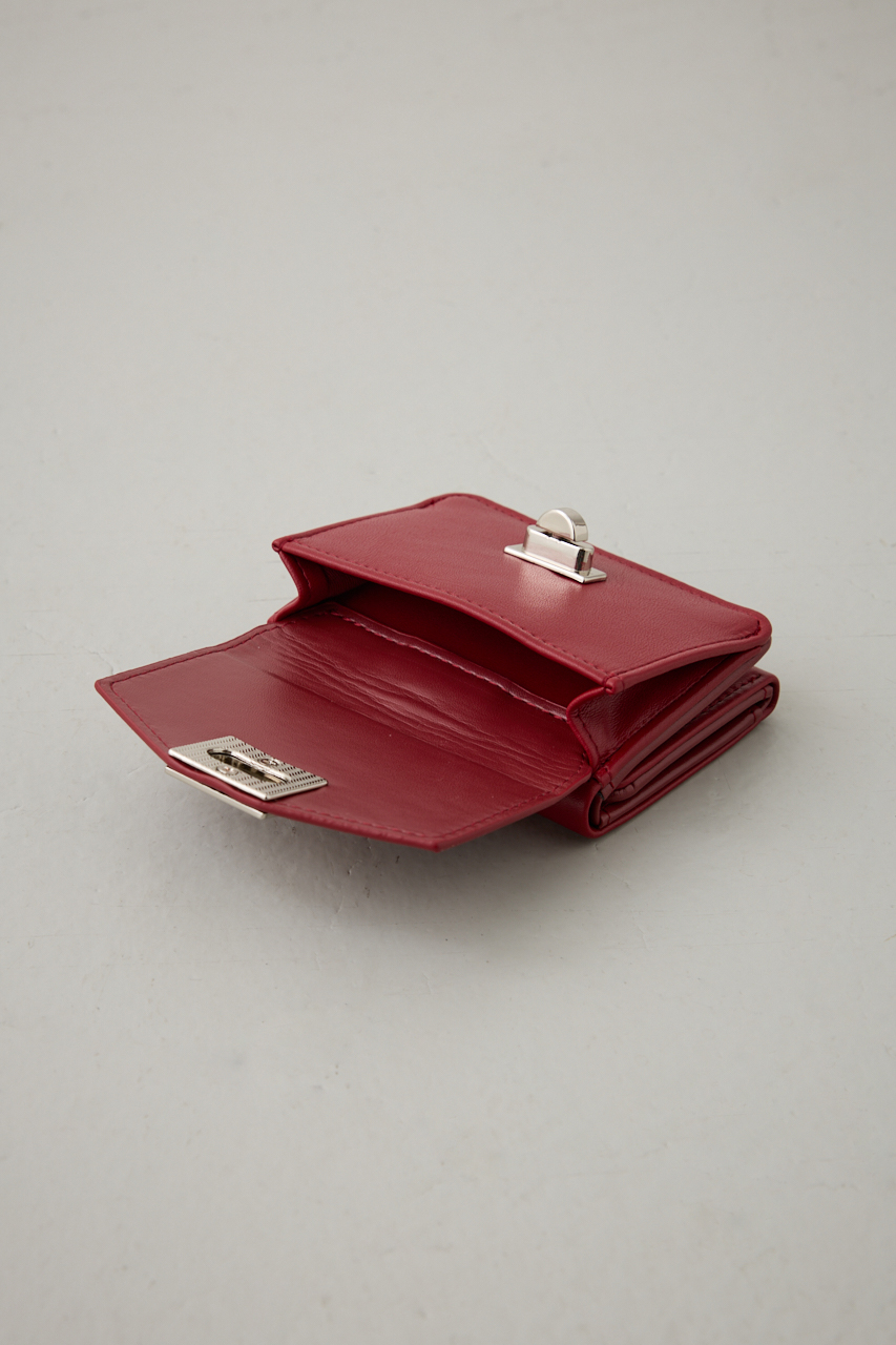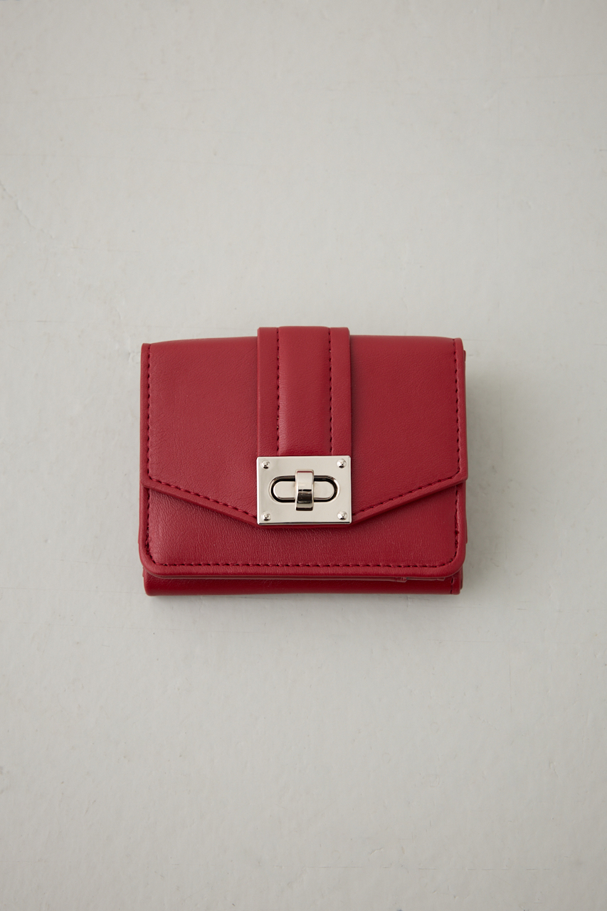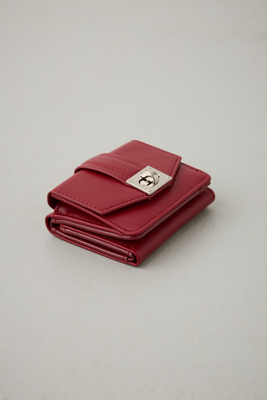 上品な艶感のあるフェイクレザーに、シルバーのターンロック金具が映えるクラシックな三つ折りウォレット。