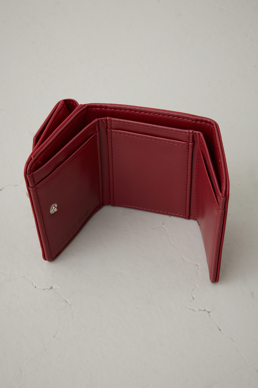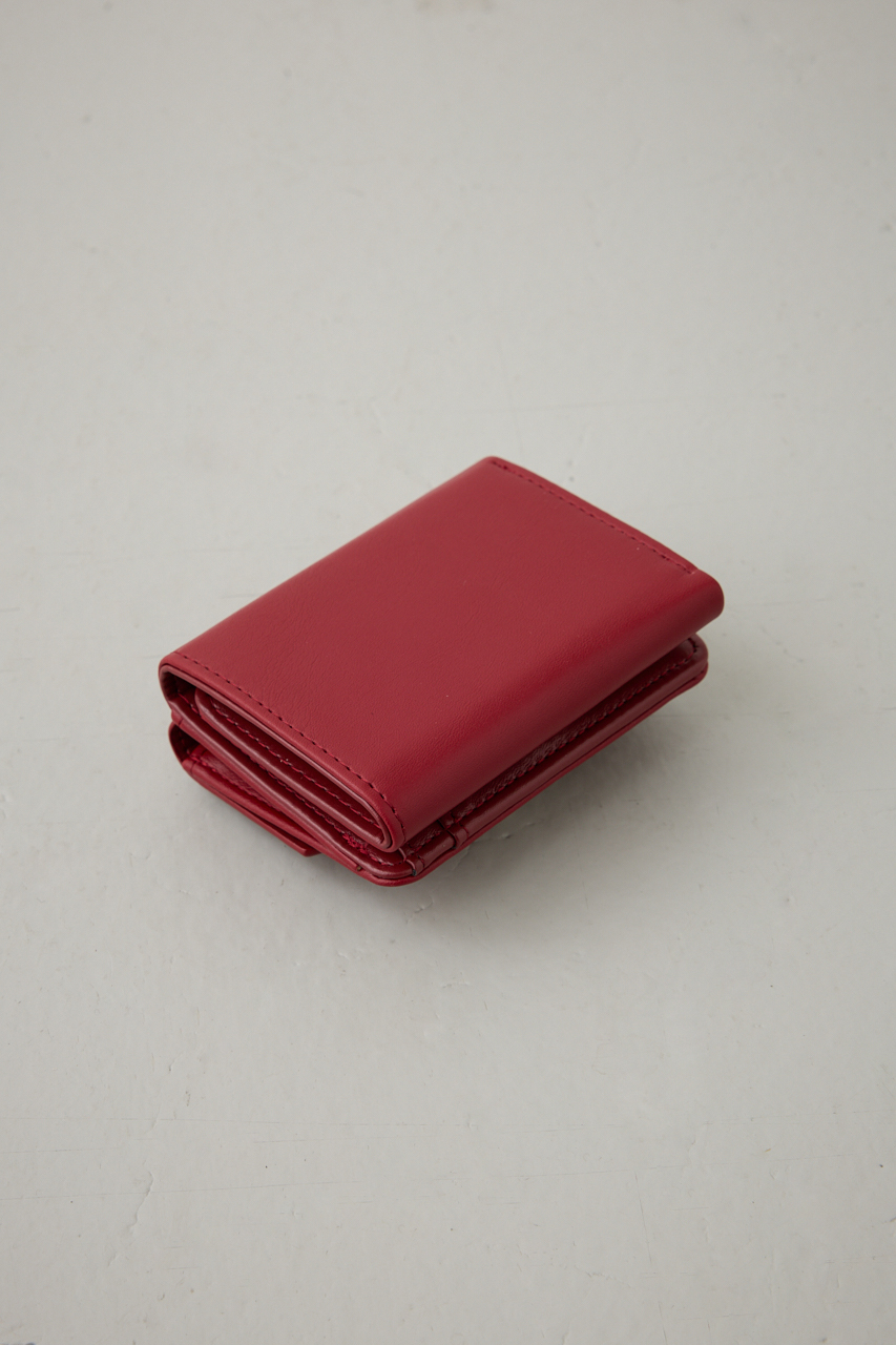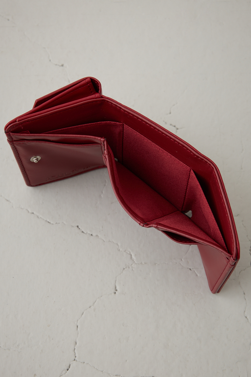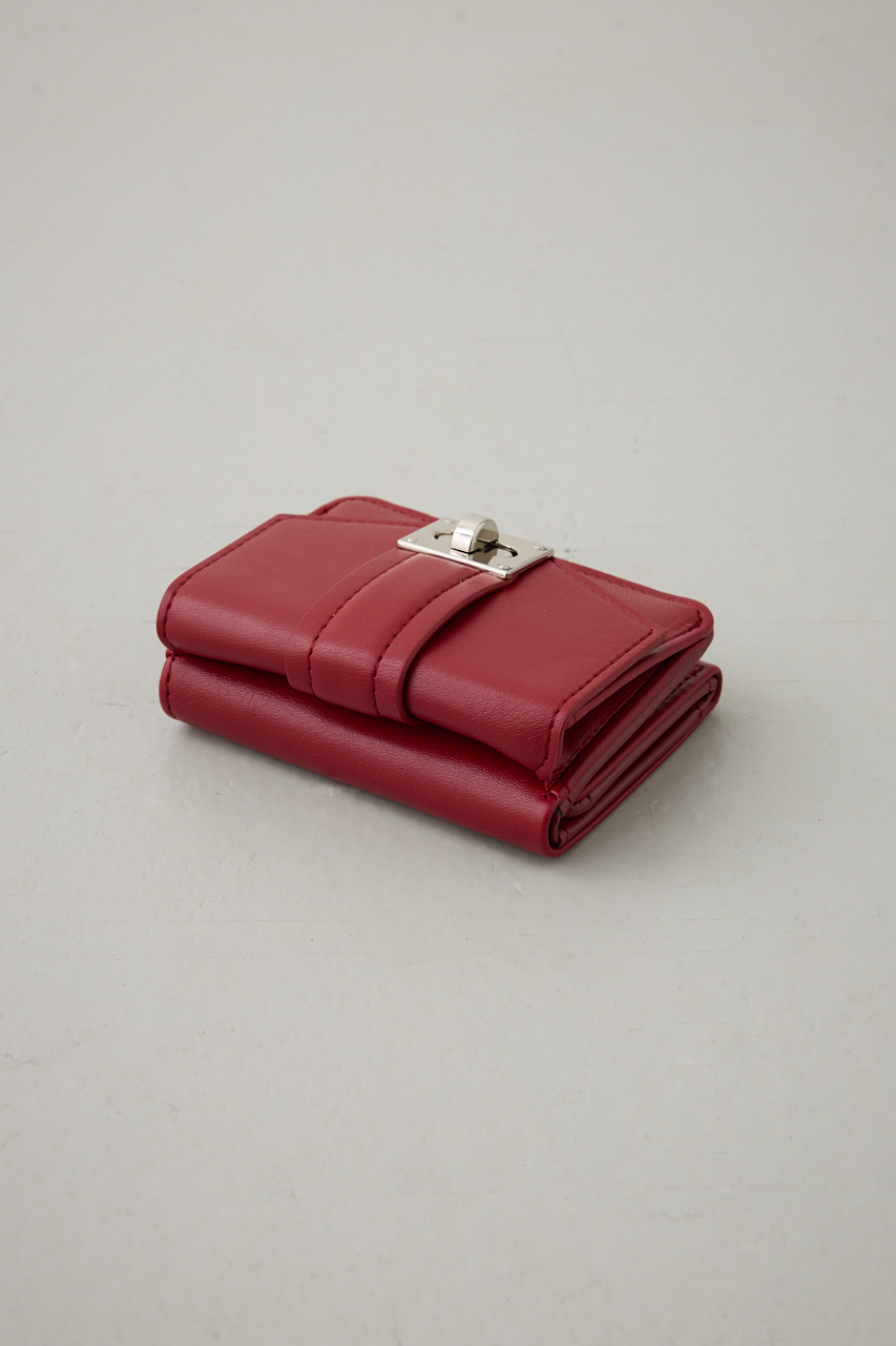 上品な艶感のあるフェイクレザーに、シルバーのターンロック金具が映えるクラシックな三つ折りウォレット。