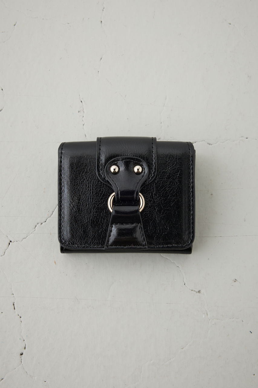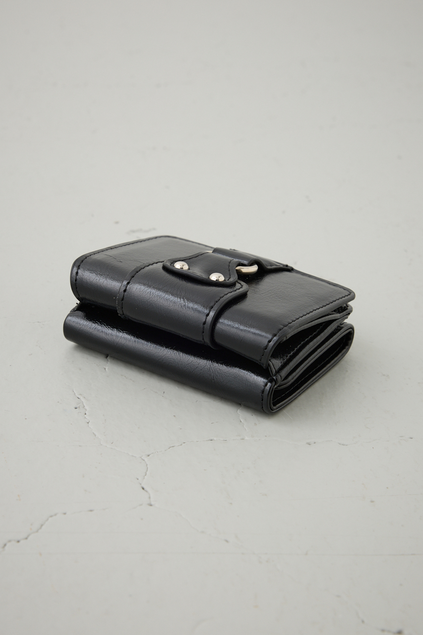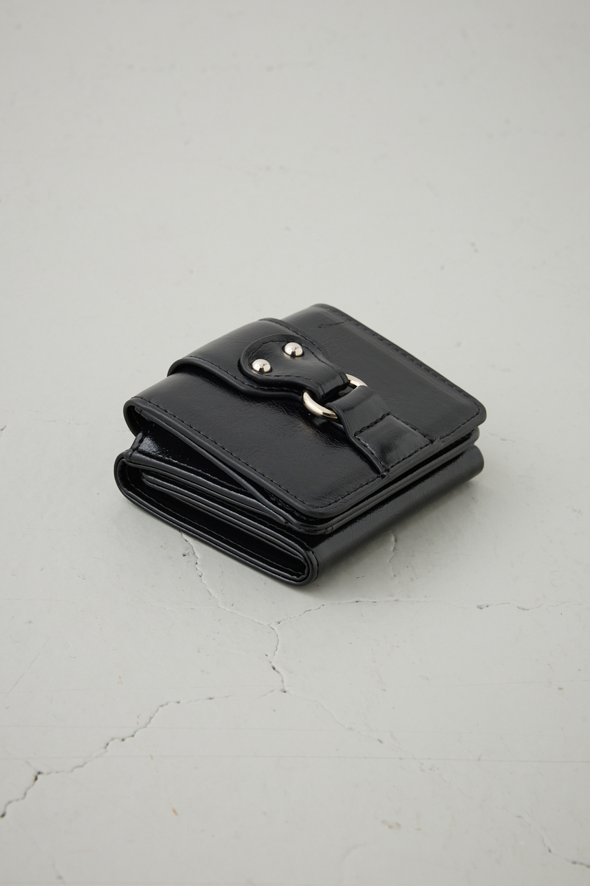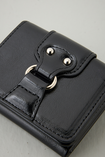 艶感のある合成皮革にスタッズを効かせた、トレンド感たっぷりのミニウォレット。