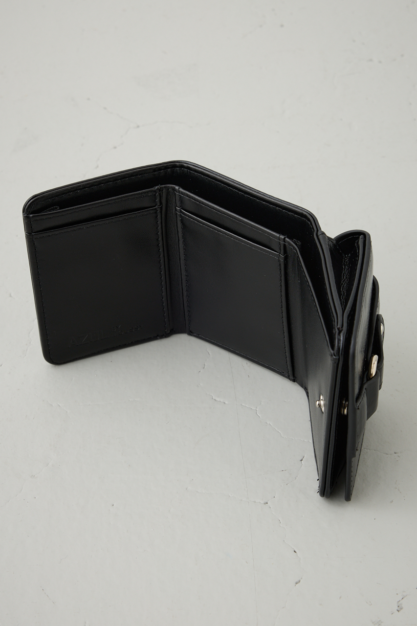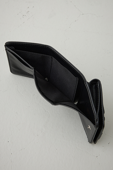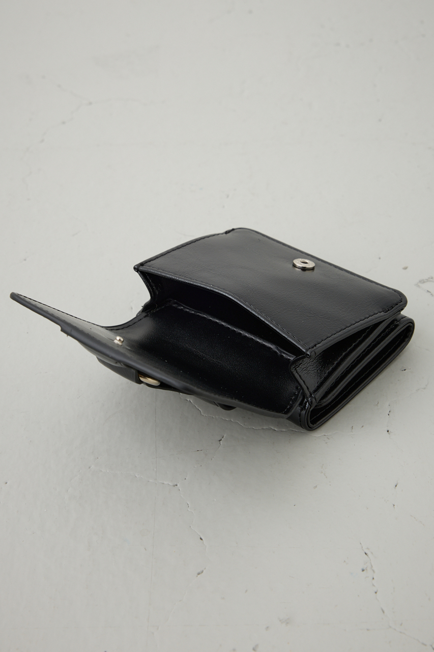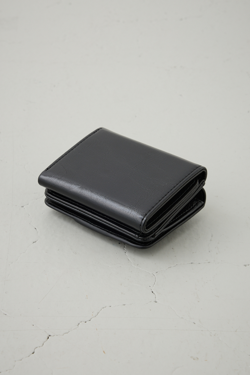 艶感のある合成皮革にスタッズを効かせた、トレンド感たっぷりのミニウォレット。