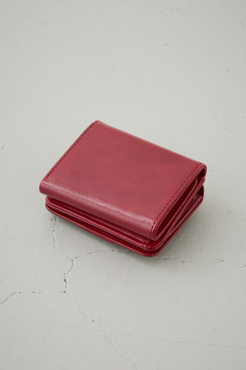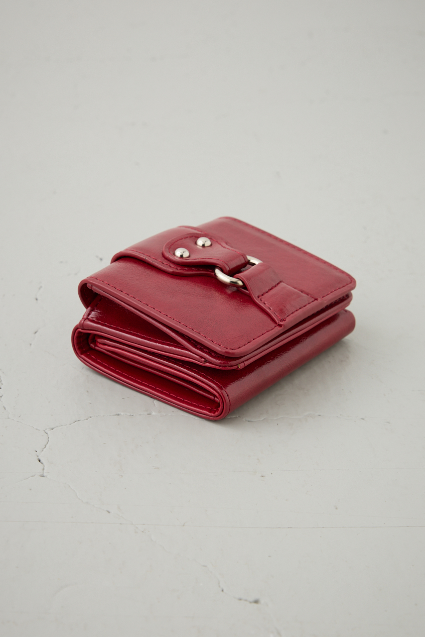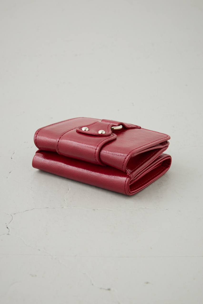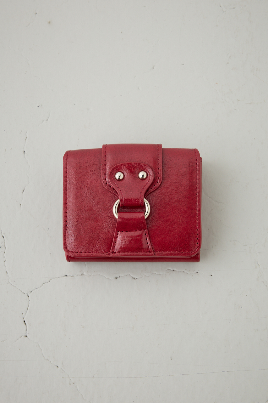 艶感のある合成皮革にスタッズを効かせた、トレンド感たっぷりのミニウォレット。