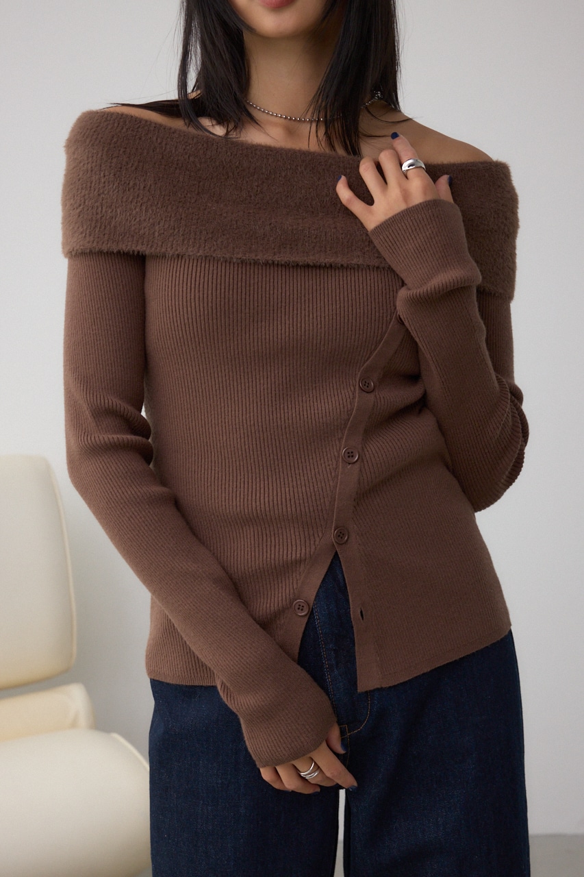 シャギーコンビオフショルダーニット