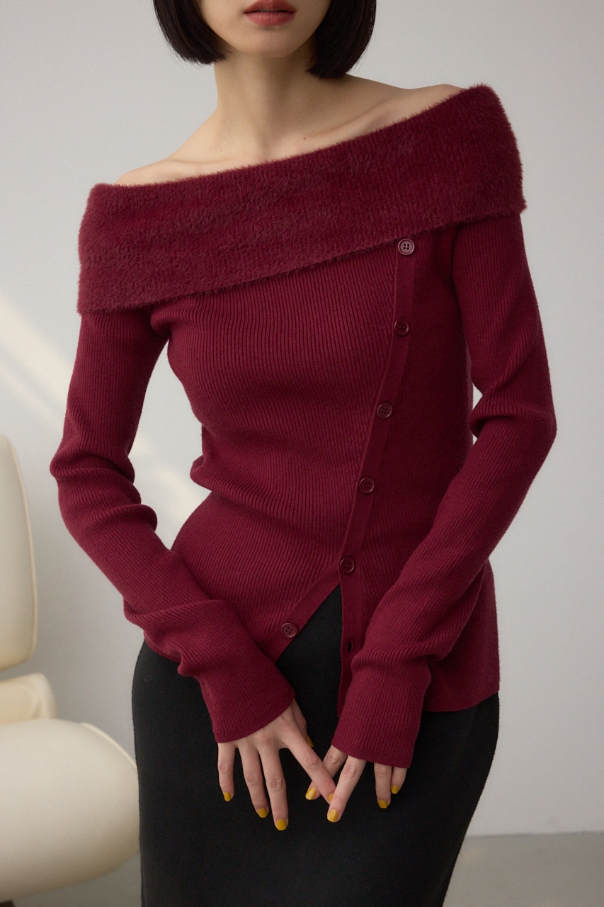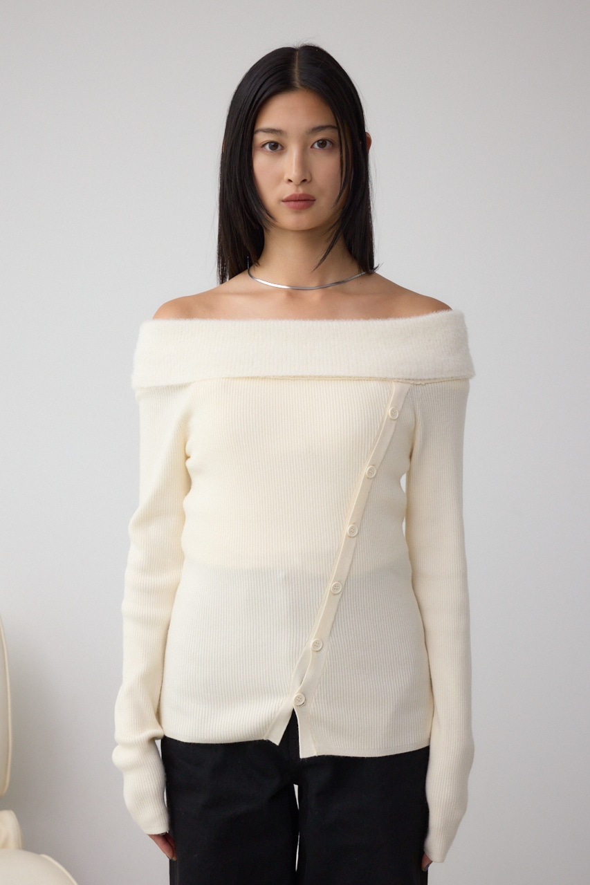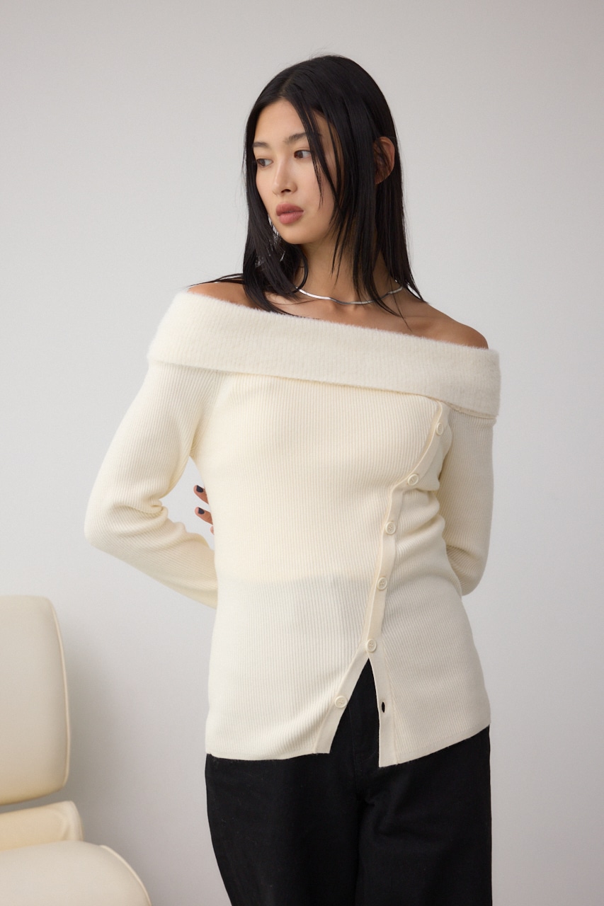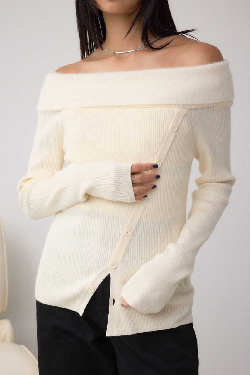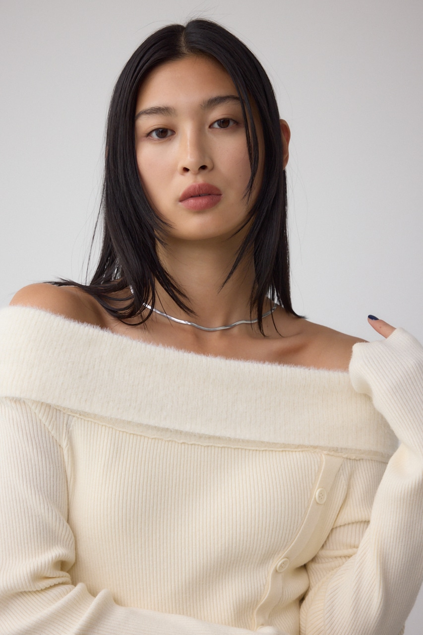 ■シャギーコンビオフショルダーニット