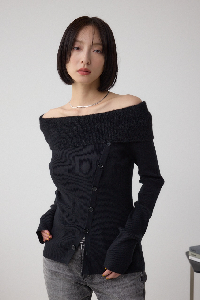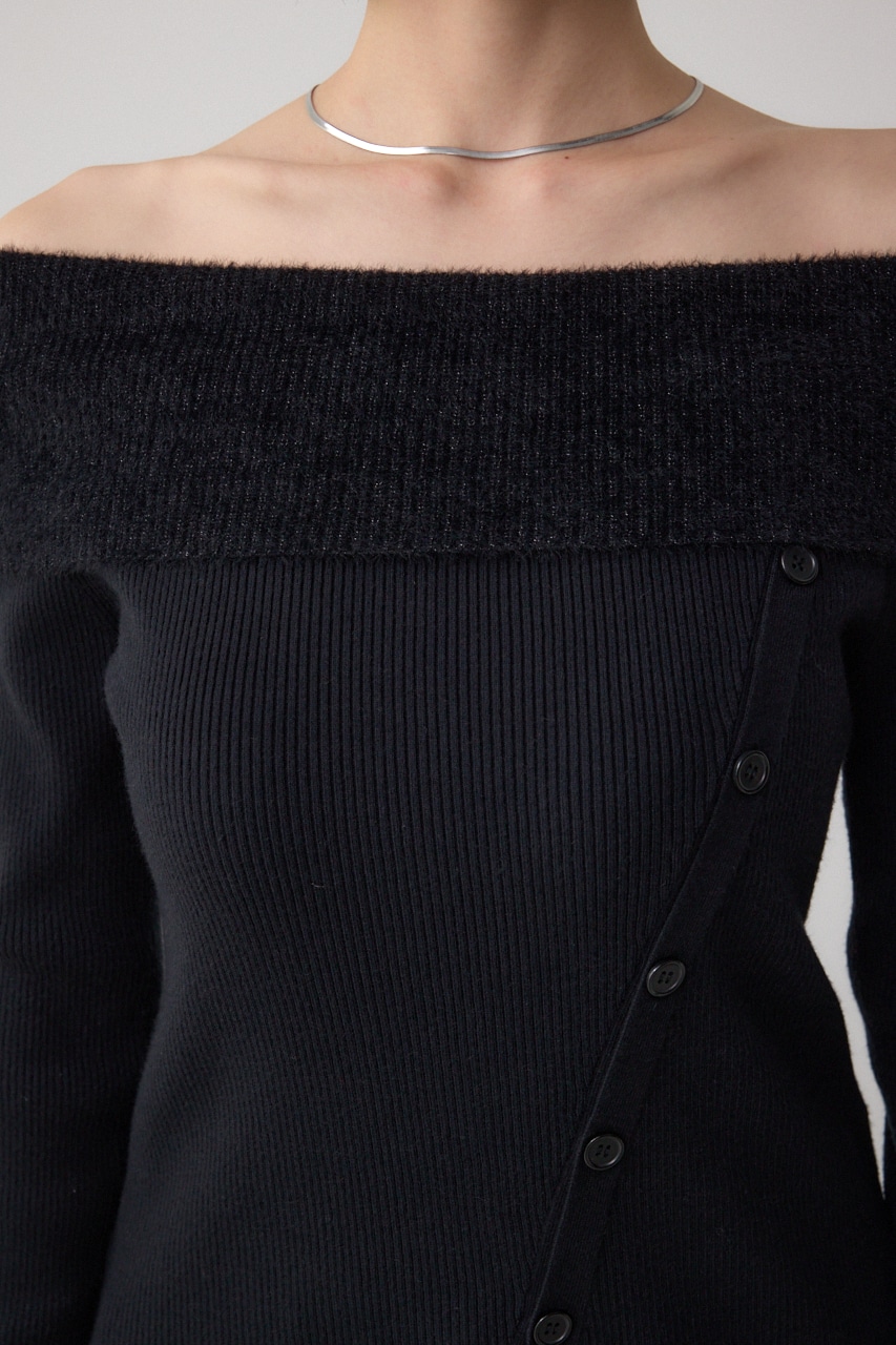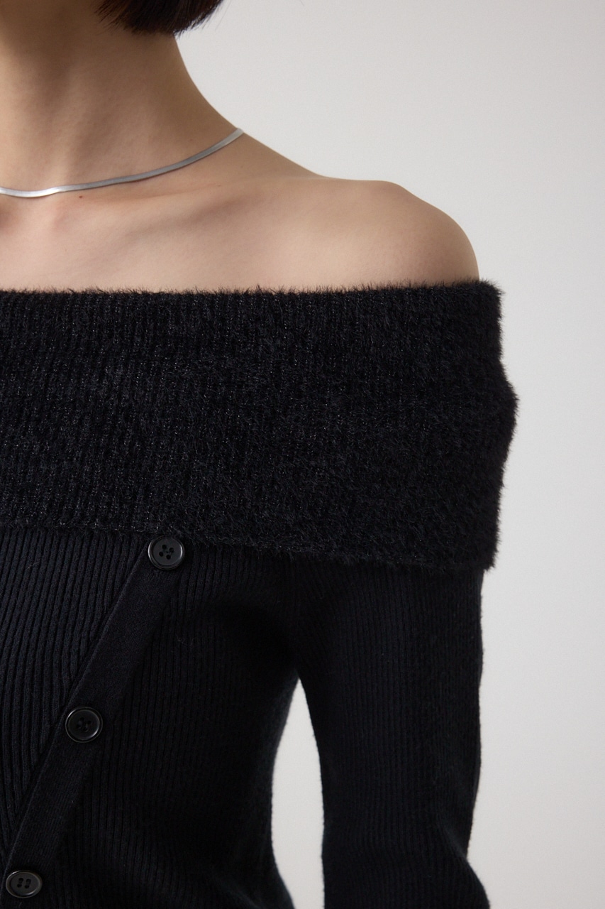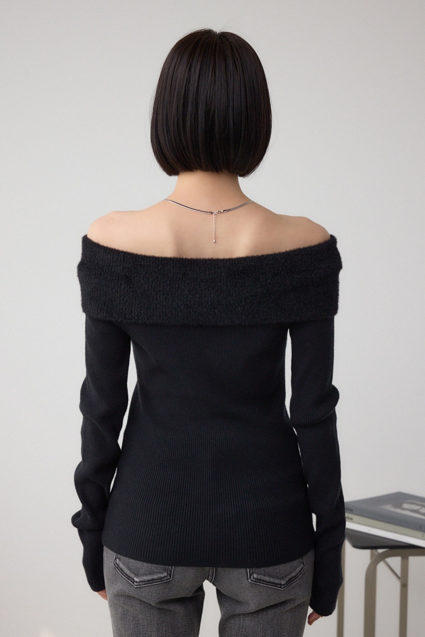 シャギー素材とのコンビネーションがポイントのニットトップスです。