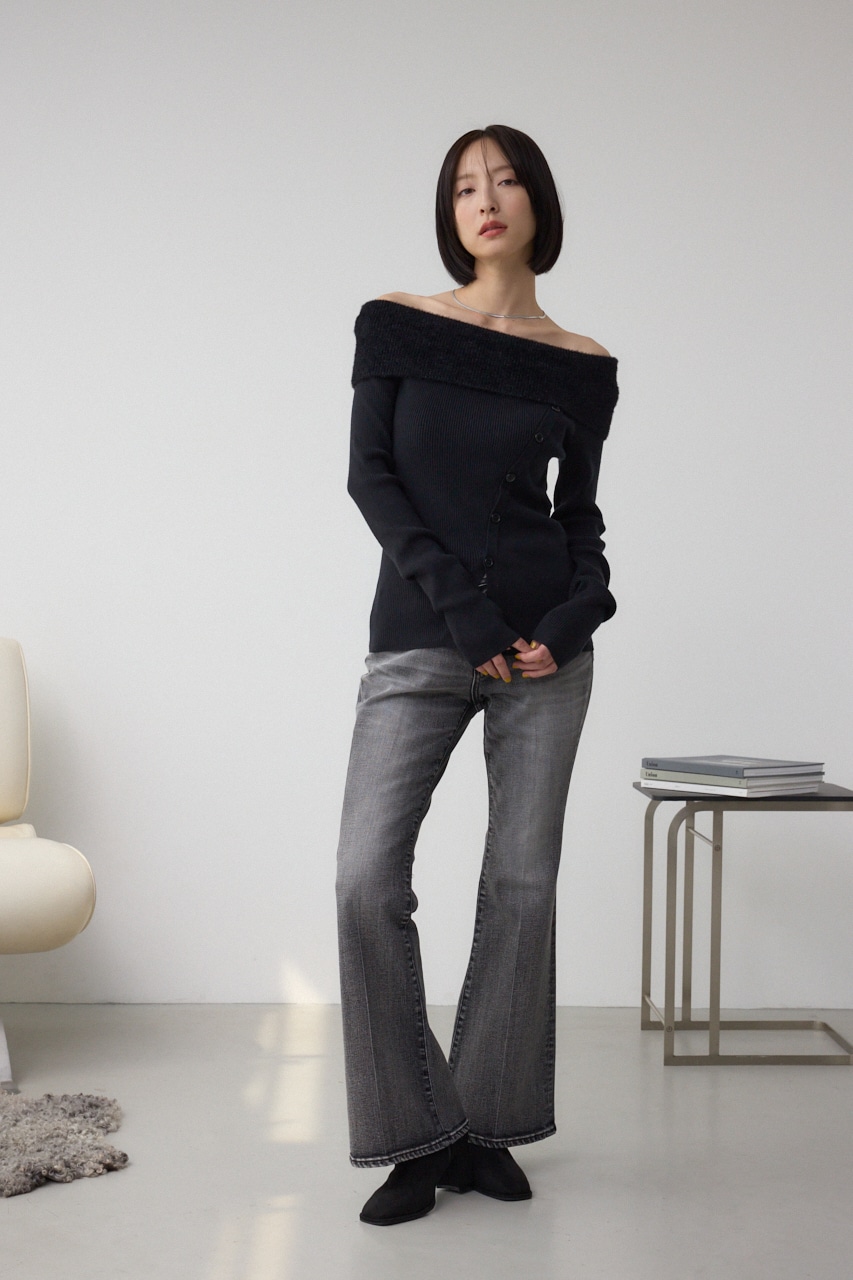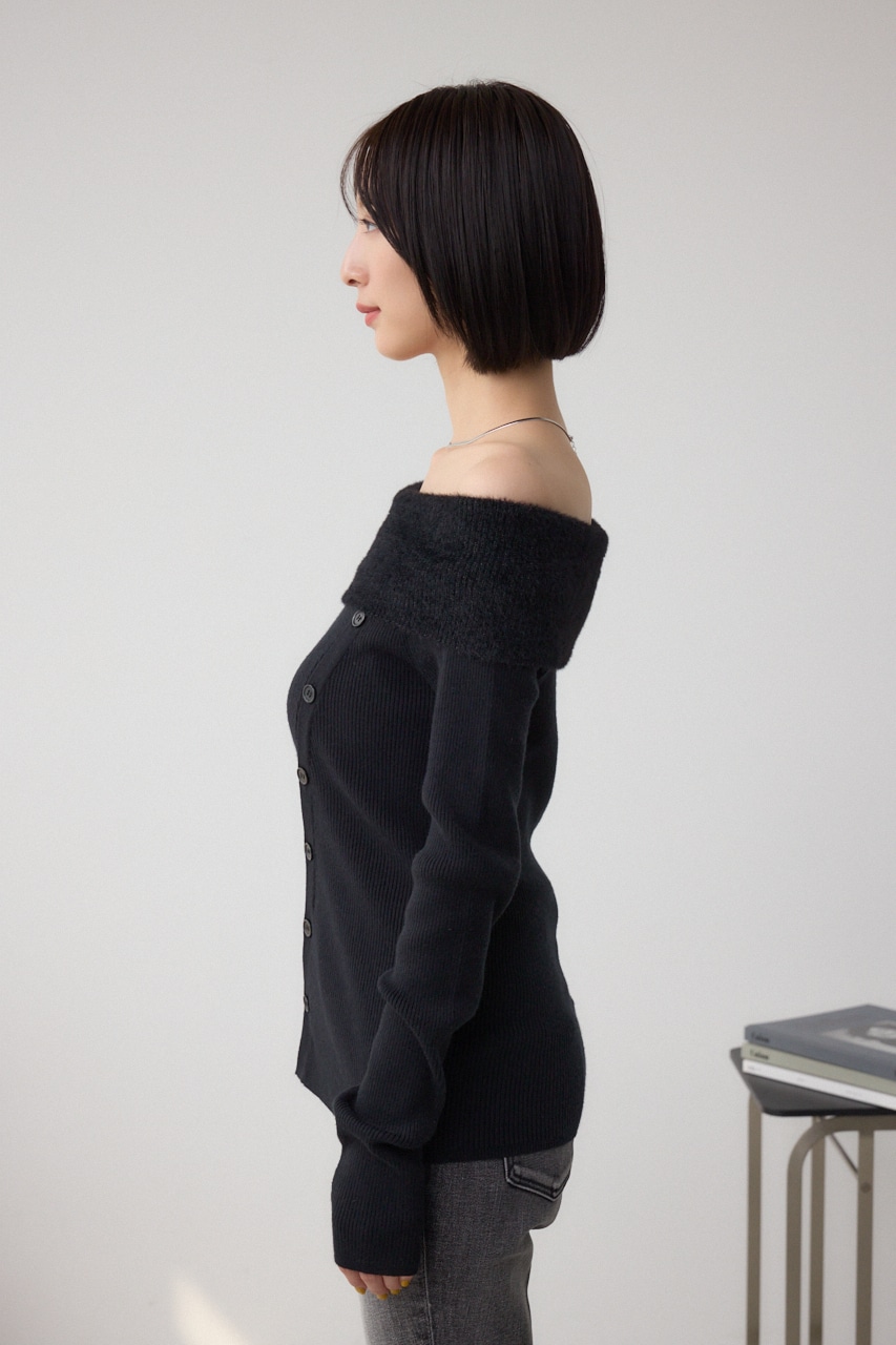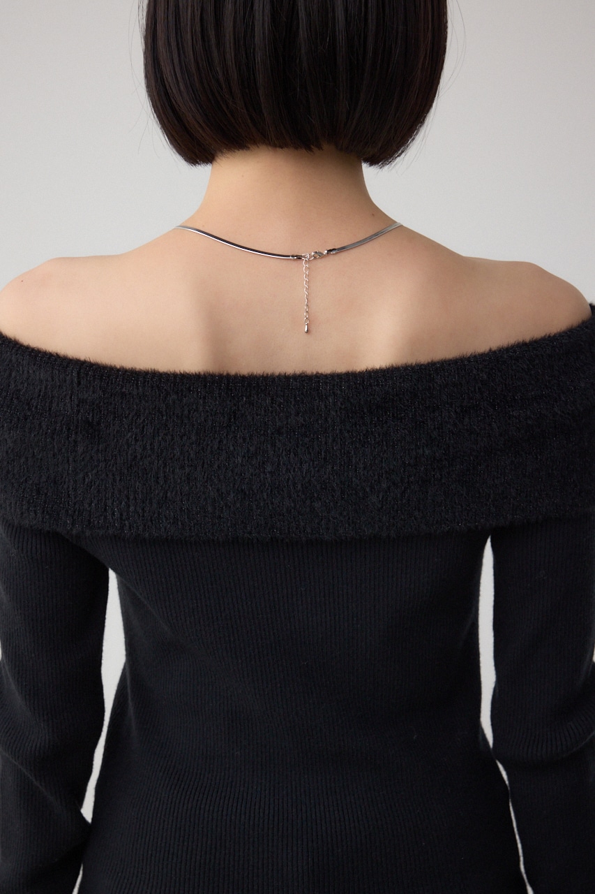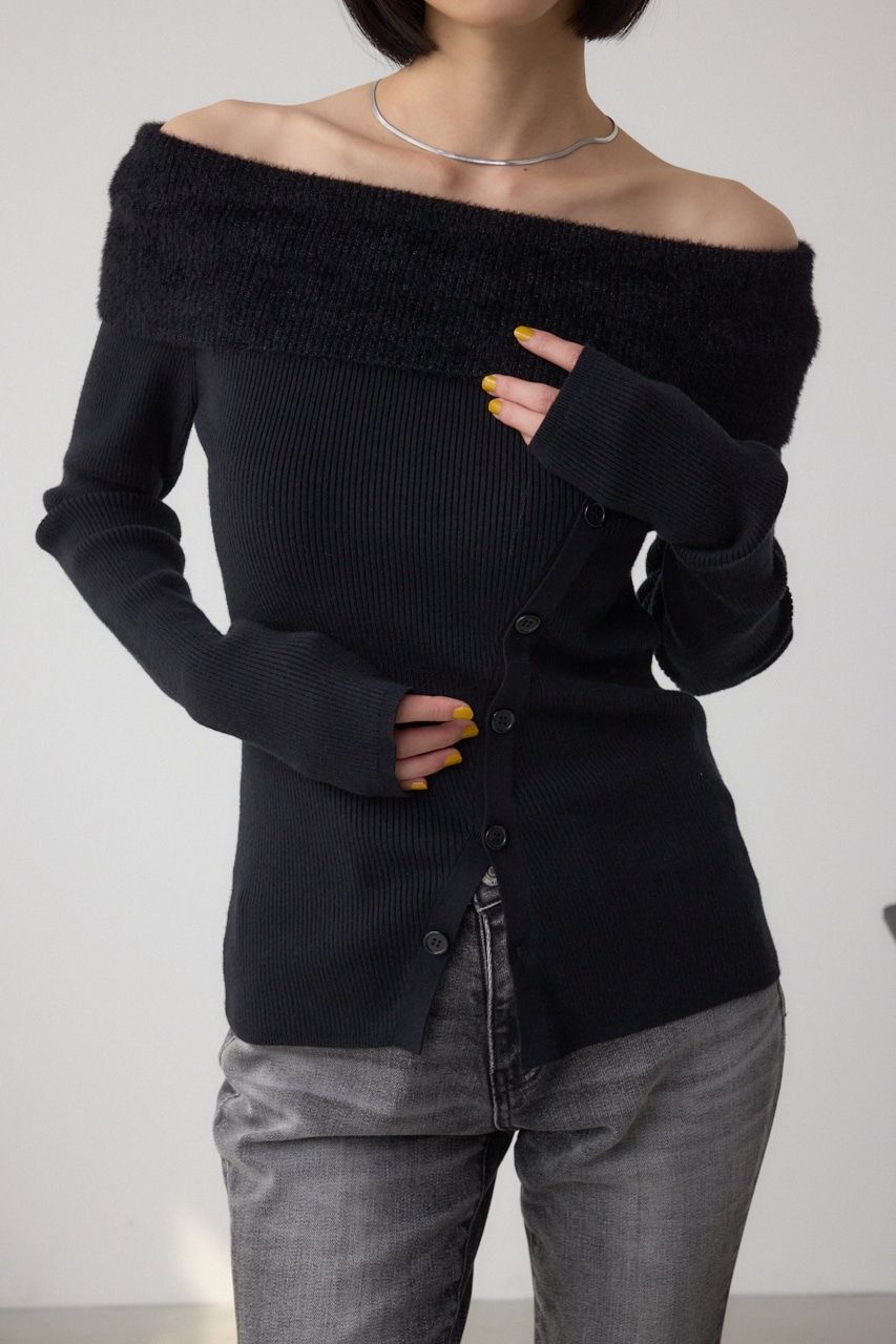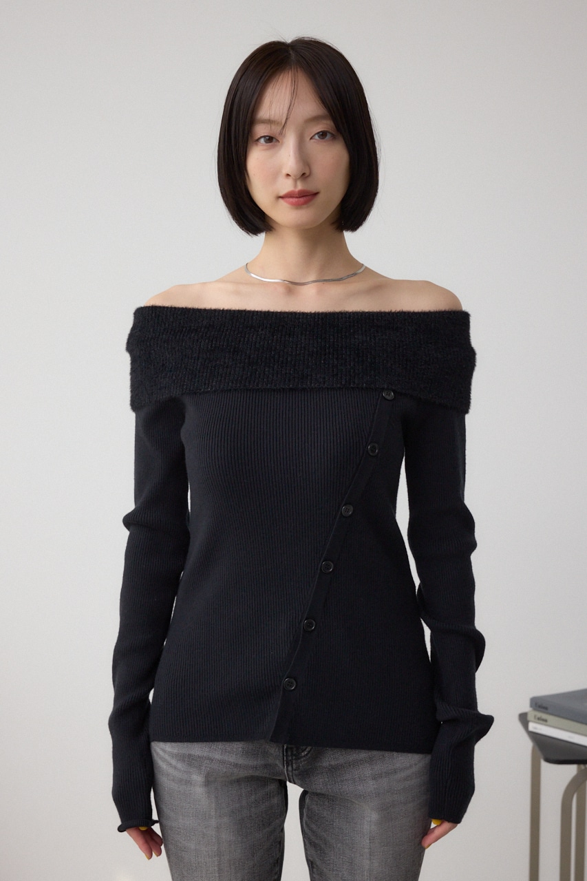 シャギー素材とのコンビネーションがポイントのニットトップスです。