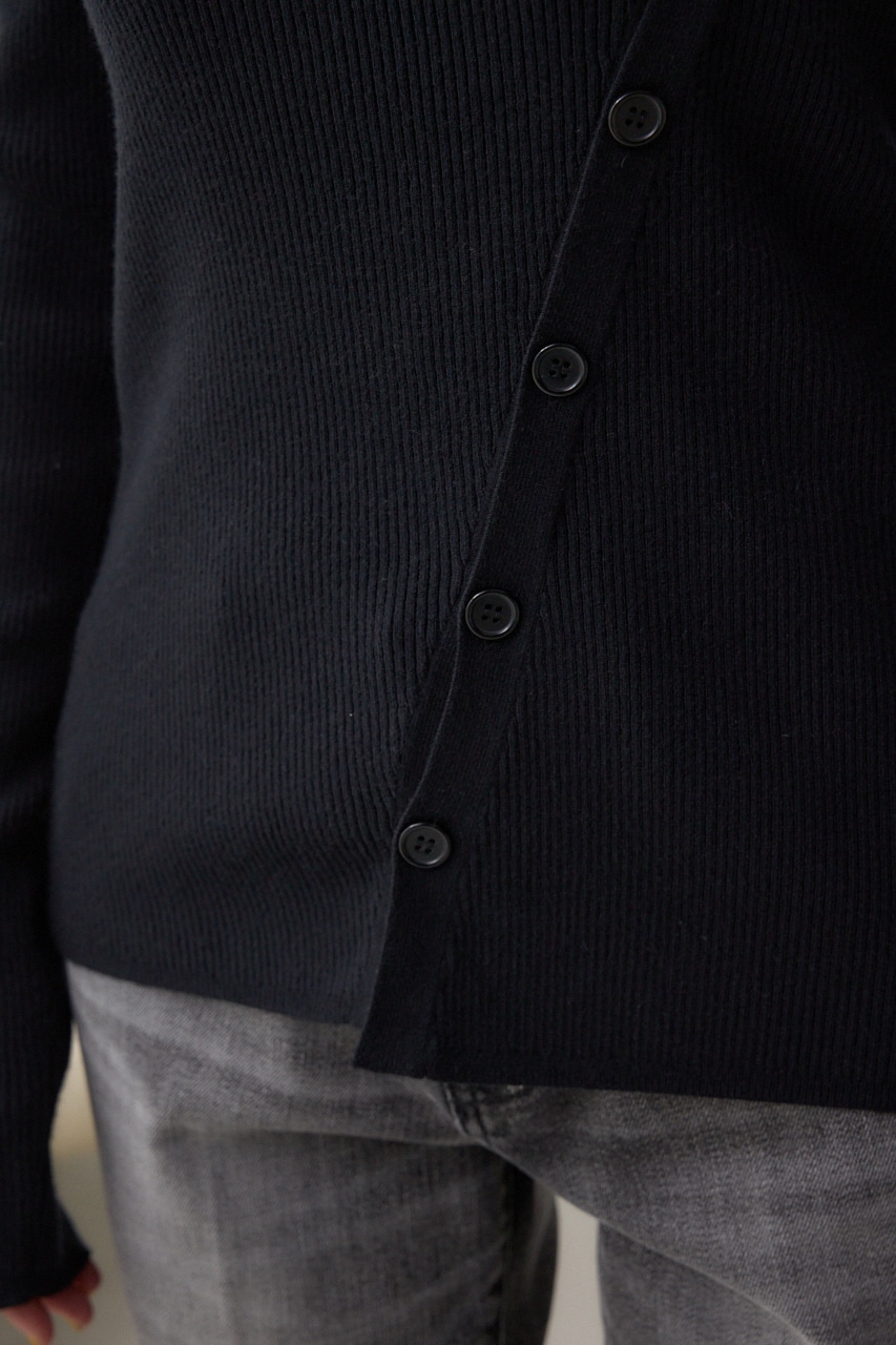 フロントのボタンは下側のみ開くので、インスタイルだけでなくアウトスタイルも決まります。