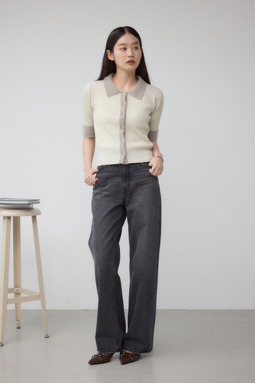 今季はカジュアルなオーバーダイ加工のデニム(250IAC11-037K AZUL DENIM オーバーダイワイドストレート)との合わせがトレンドライクなスタイルに仕上がりおすすめです。