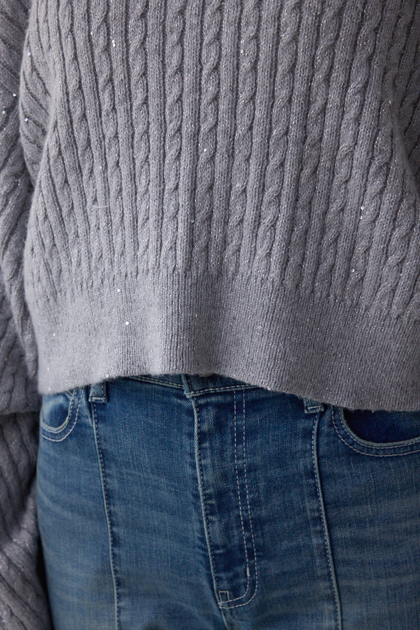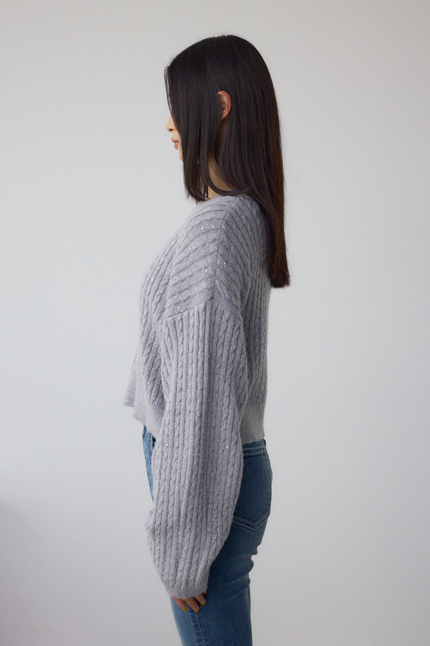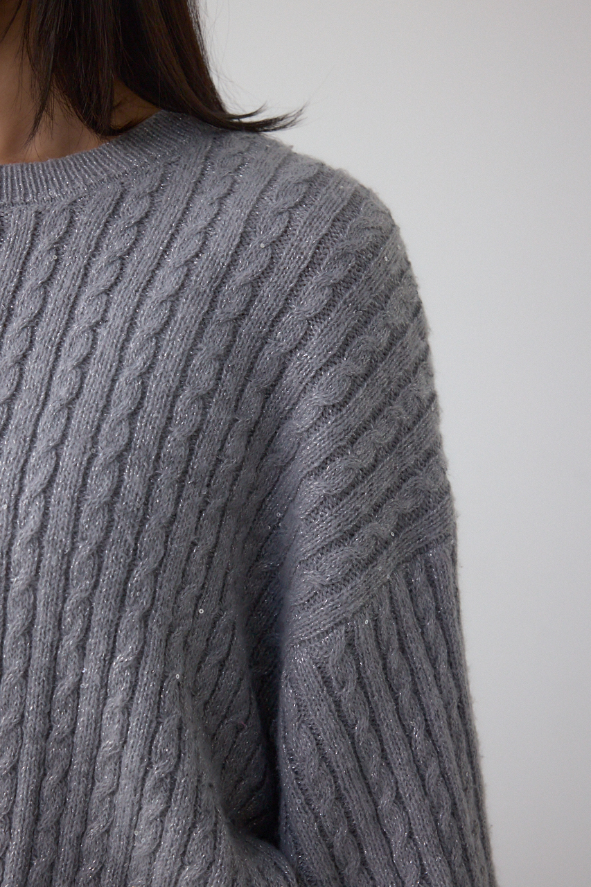 ラメ入りの少し毛足のある糸とスパンコール入りの糸を掛け合わせたニット素材。