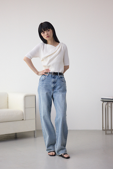 前身頃にアシンメトリーなドレープを入れたデザインです。