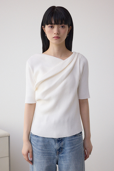 10. ドレープデザイン5分袖リブニット 詳細画像