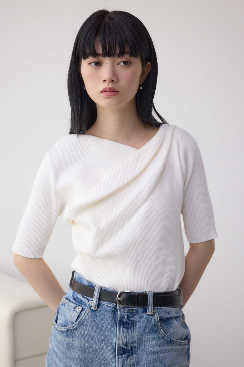4. ドレープデザイン5分袖リブニット 詳細画像