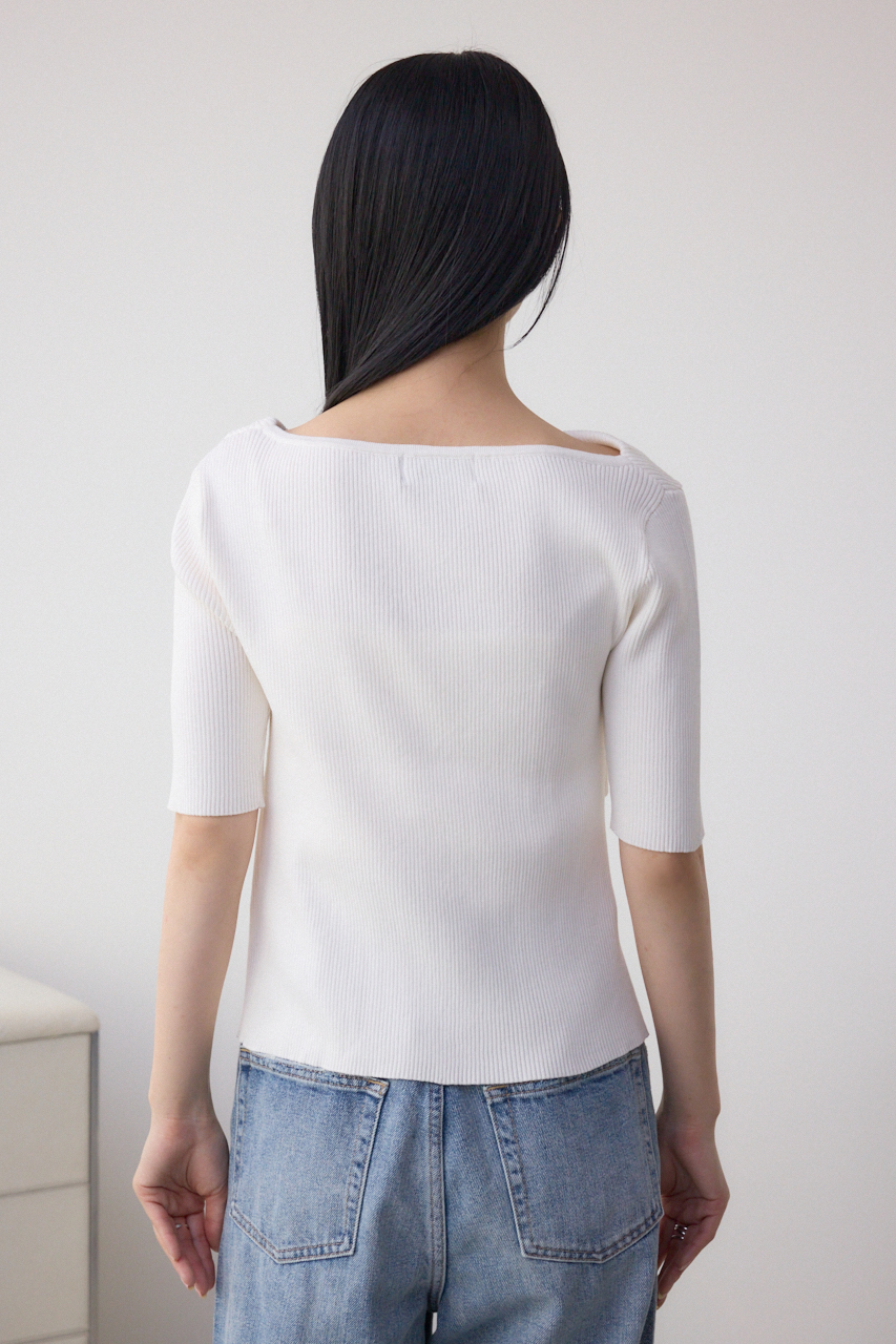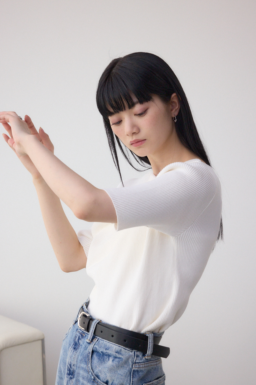 8. ドレープデザイン5分袖リブニット 詳細画像