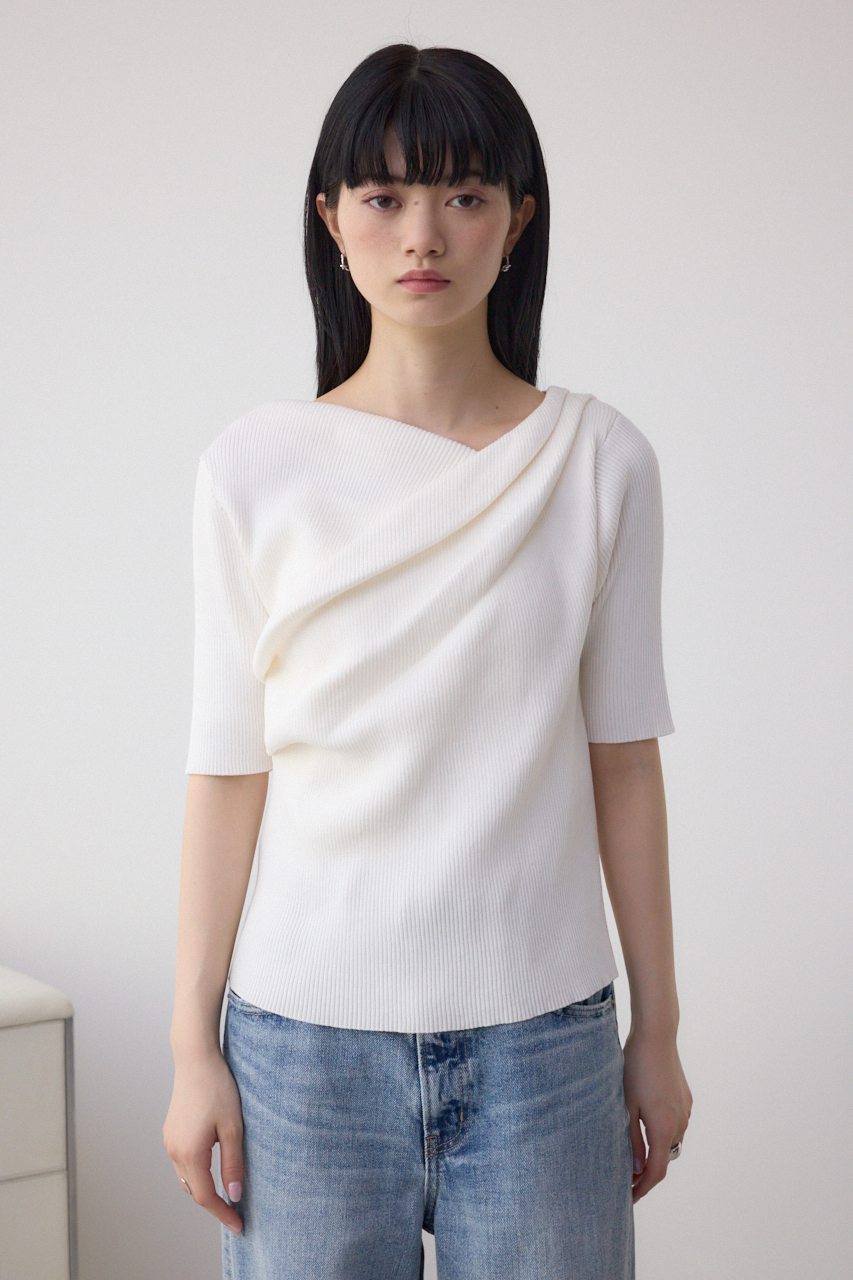 9. ドレープデザイン5分袖リブニット 詳細画像