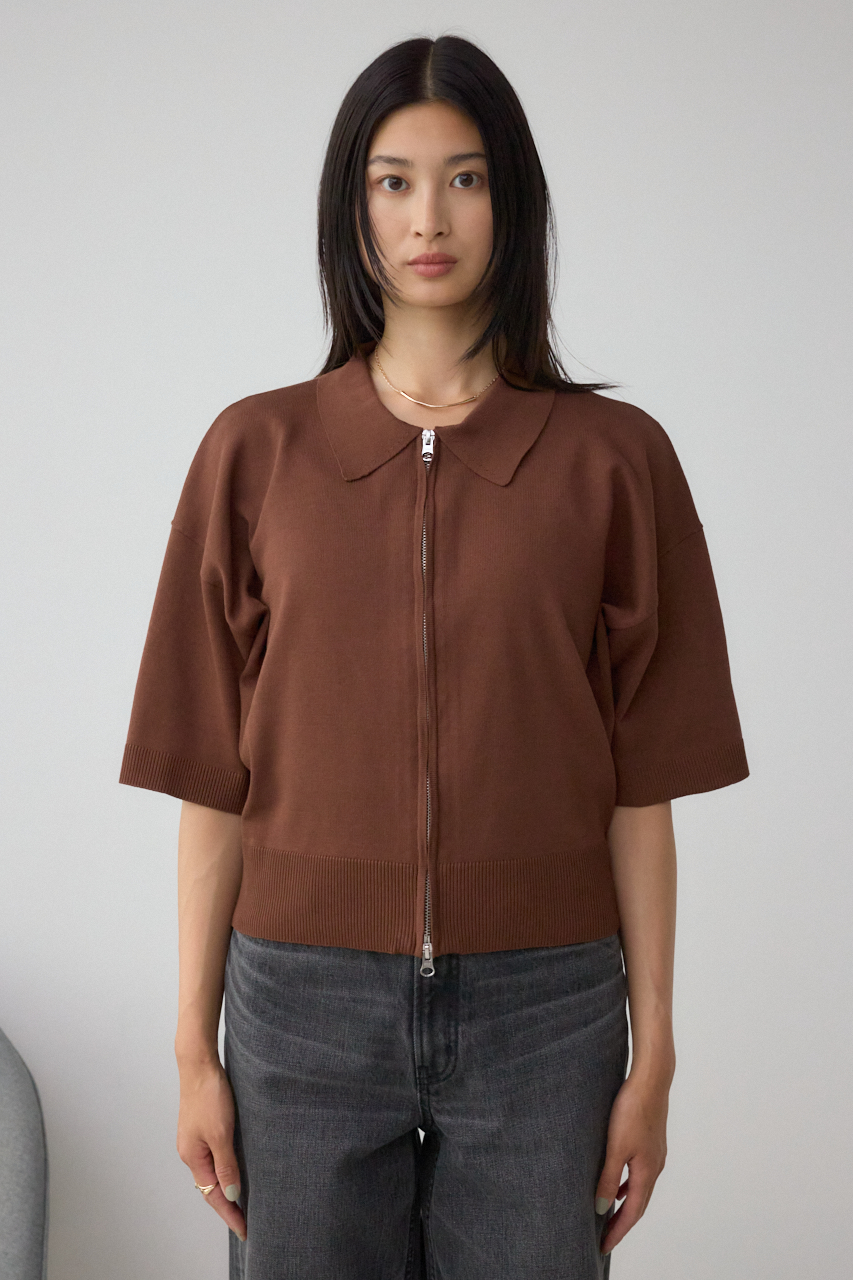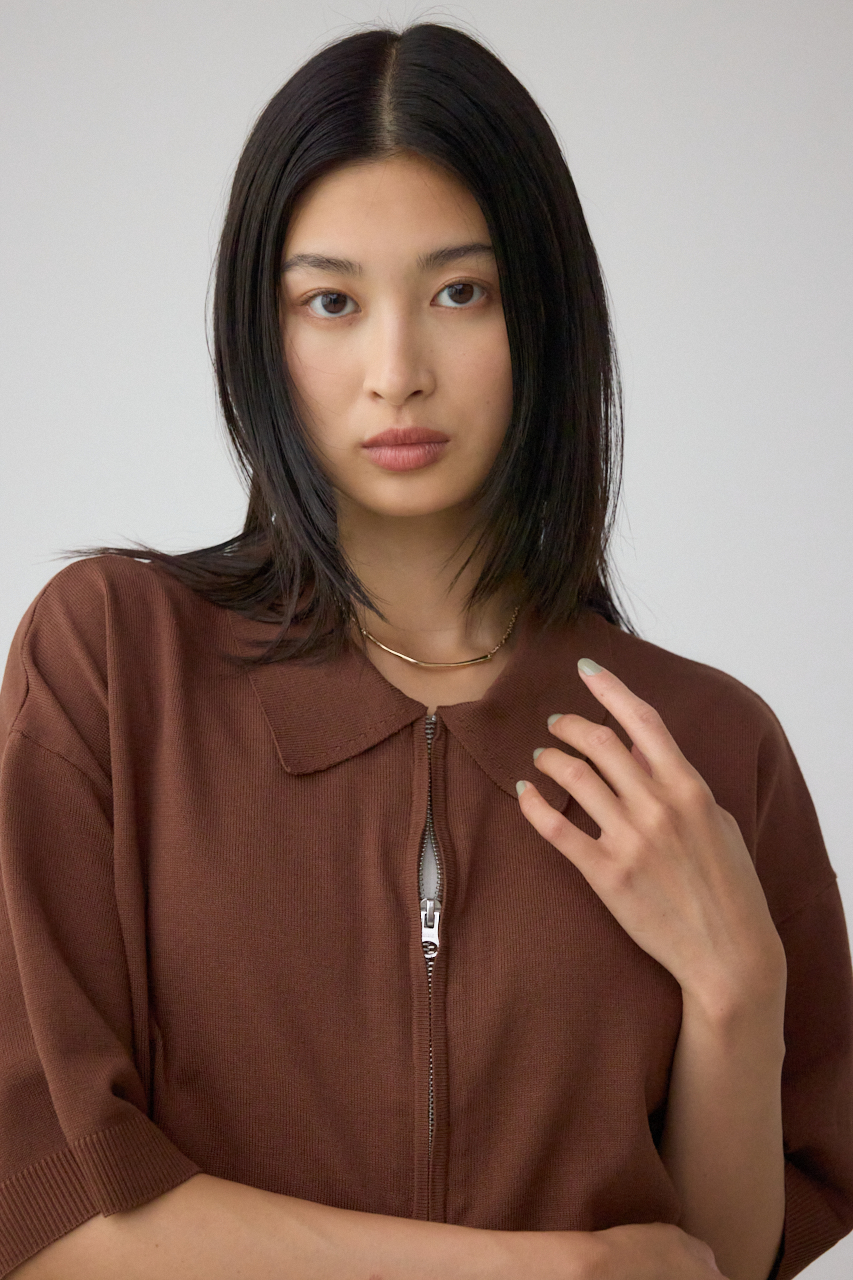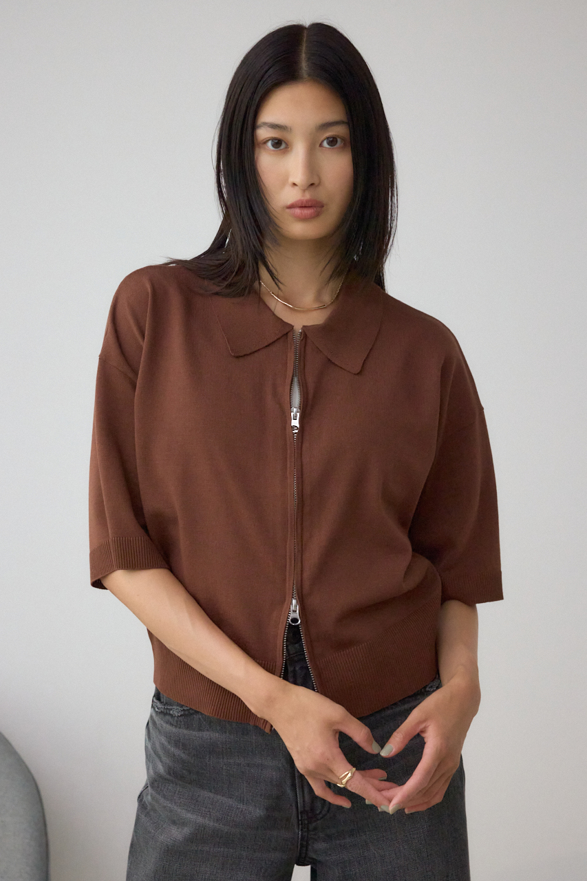 コロンとしたシルエットにエッジのきいた襟とWジップの組み合わせが絶妙なバランスのいいポロニット。