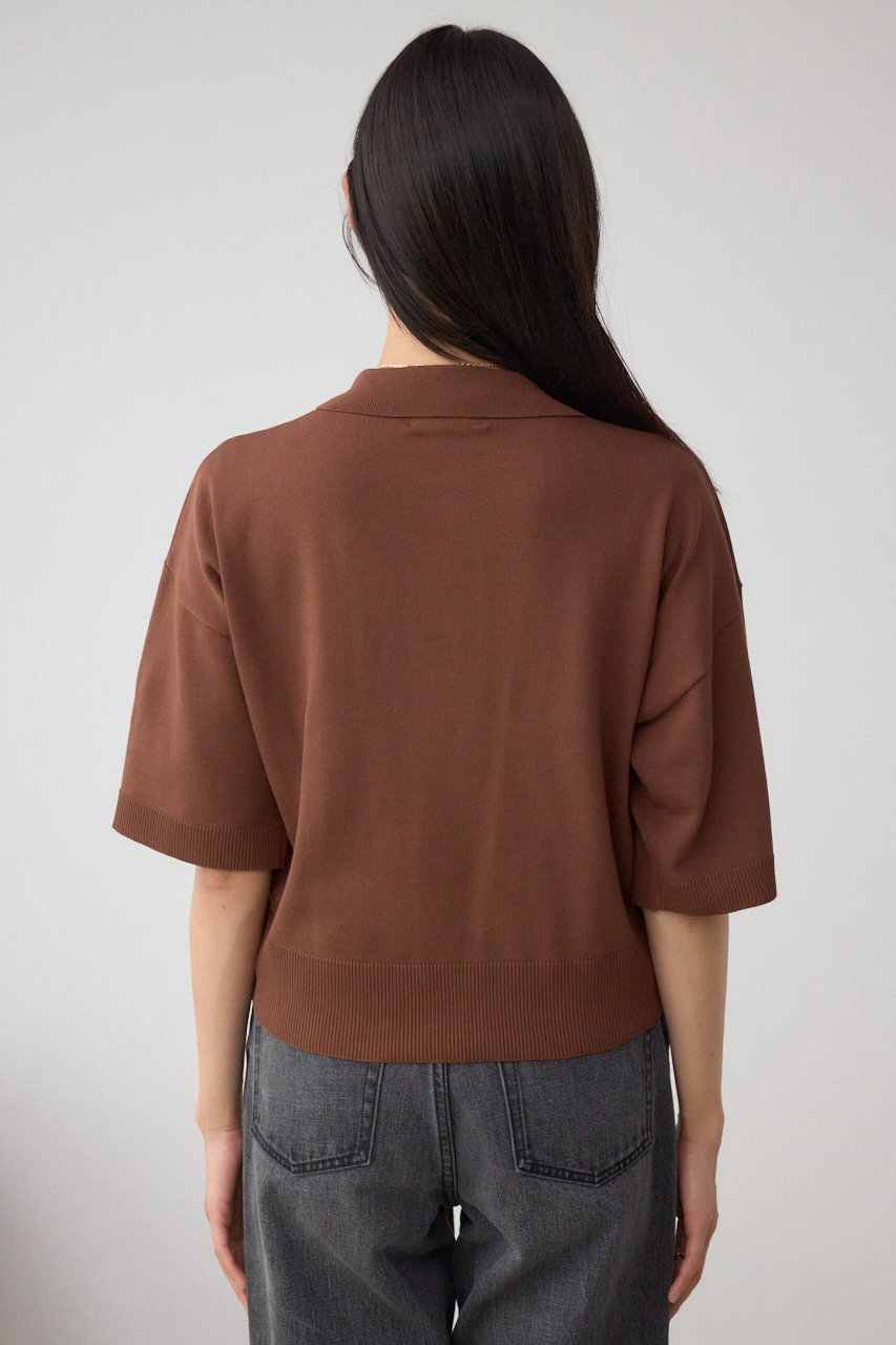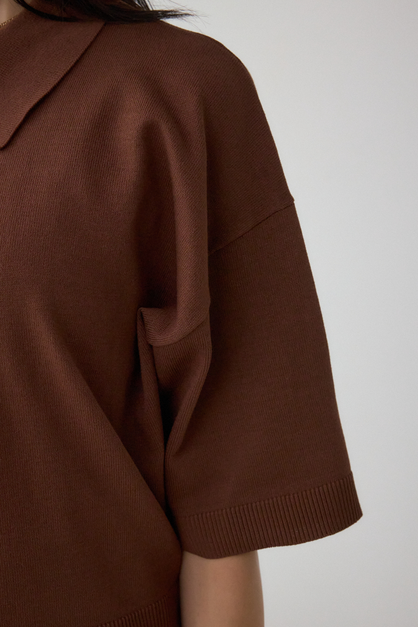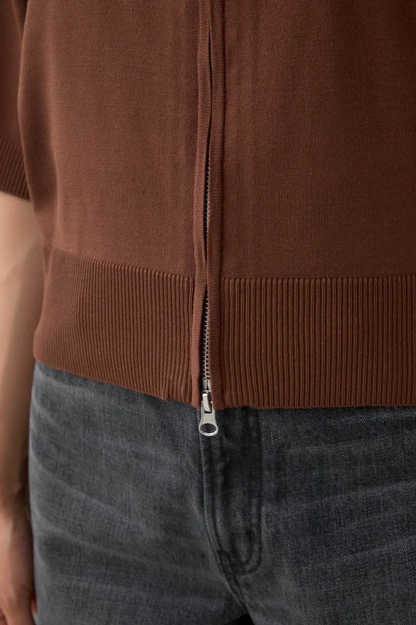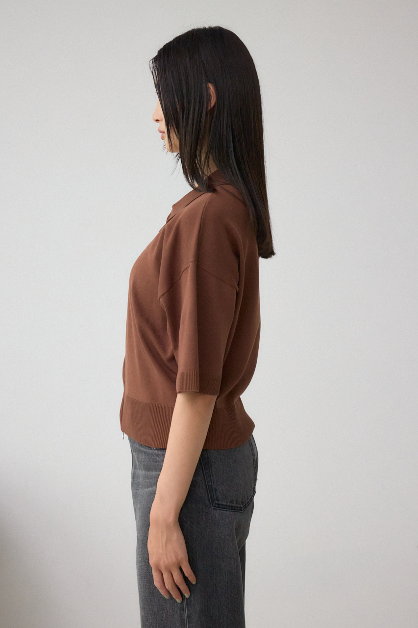 コロンとしたシルエットにエッジのきいた襟とWジップの組み合わせが絶妙なバランスのいいポロニット。