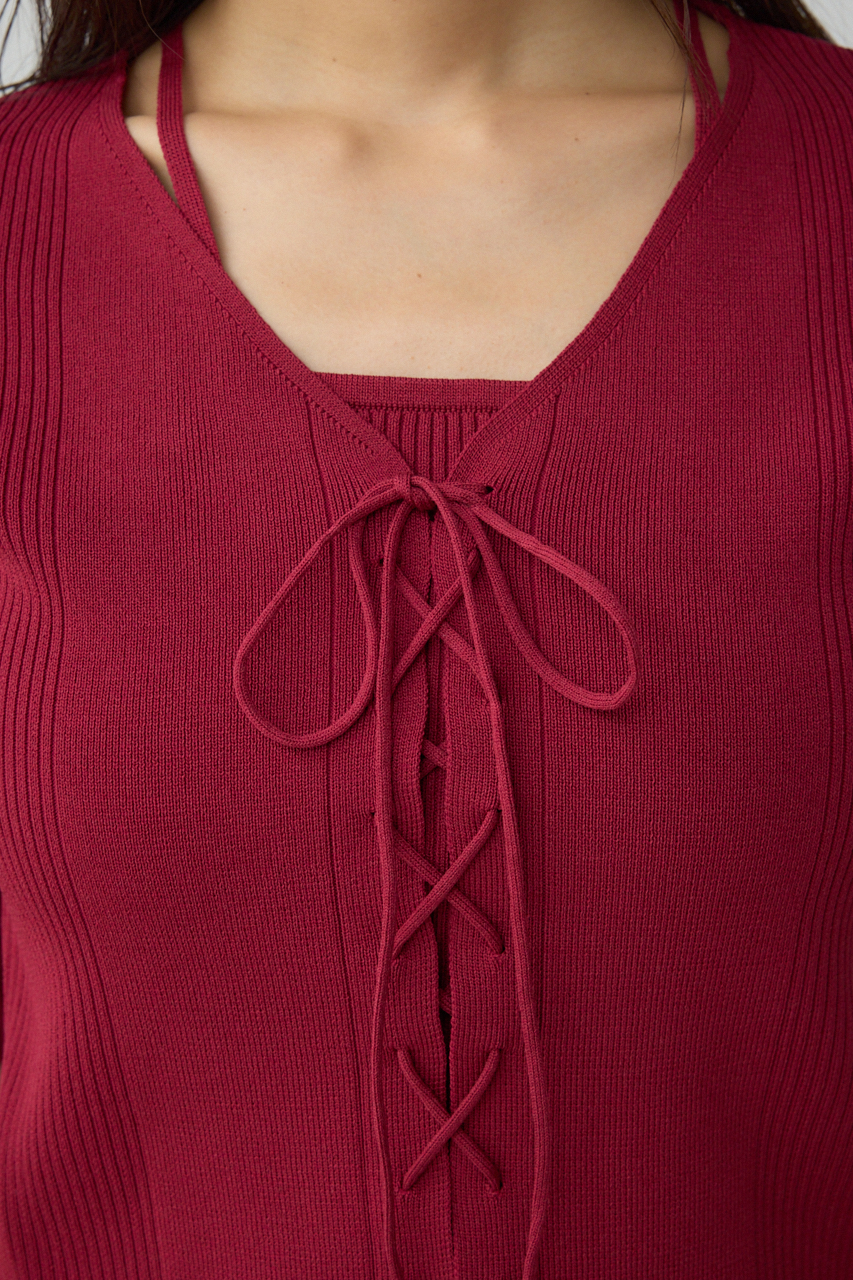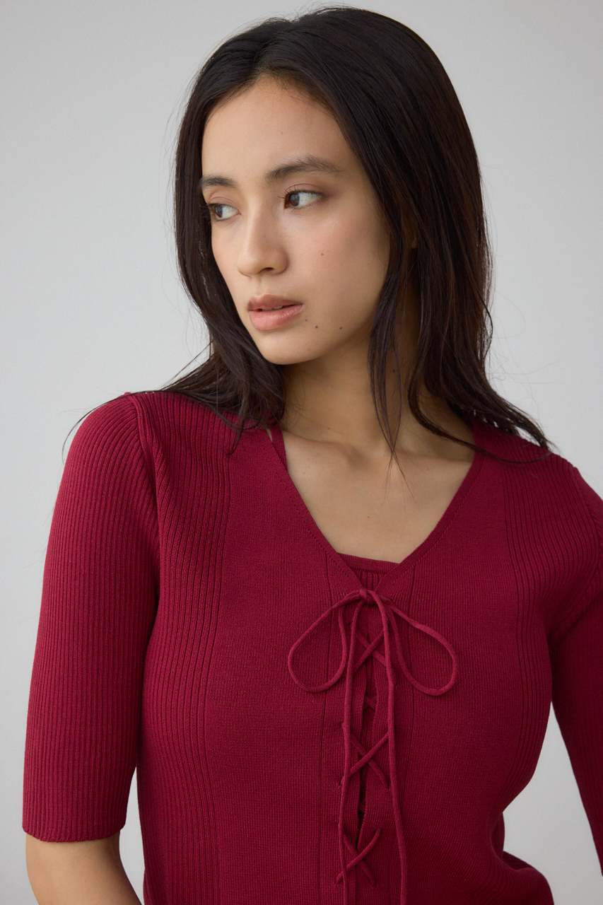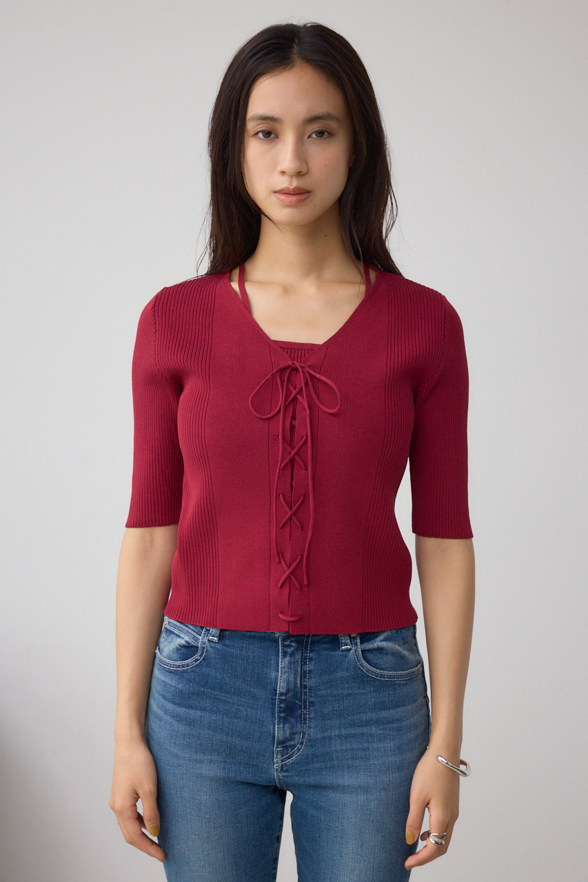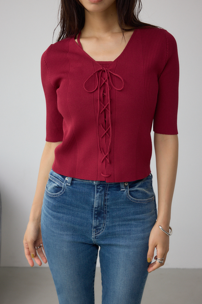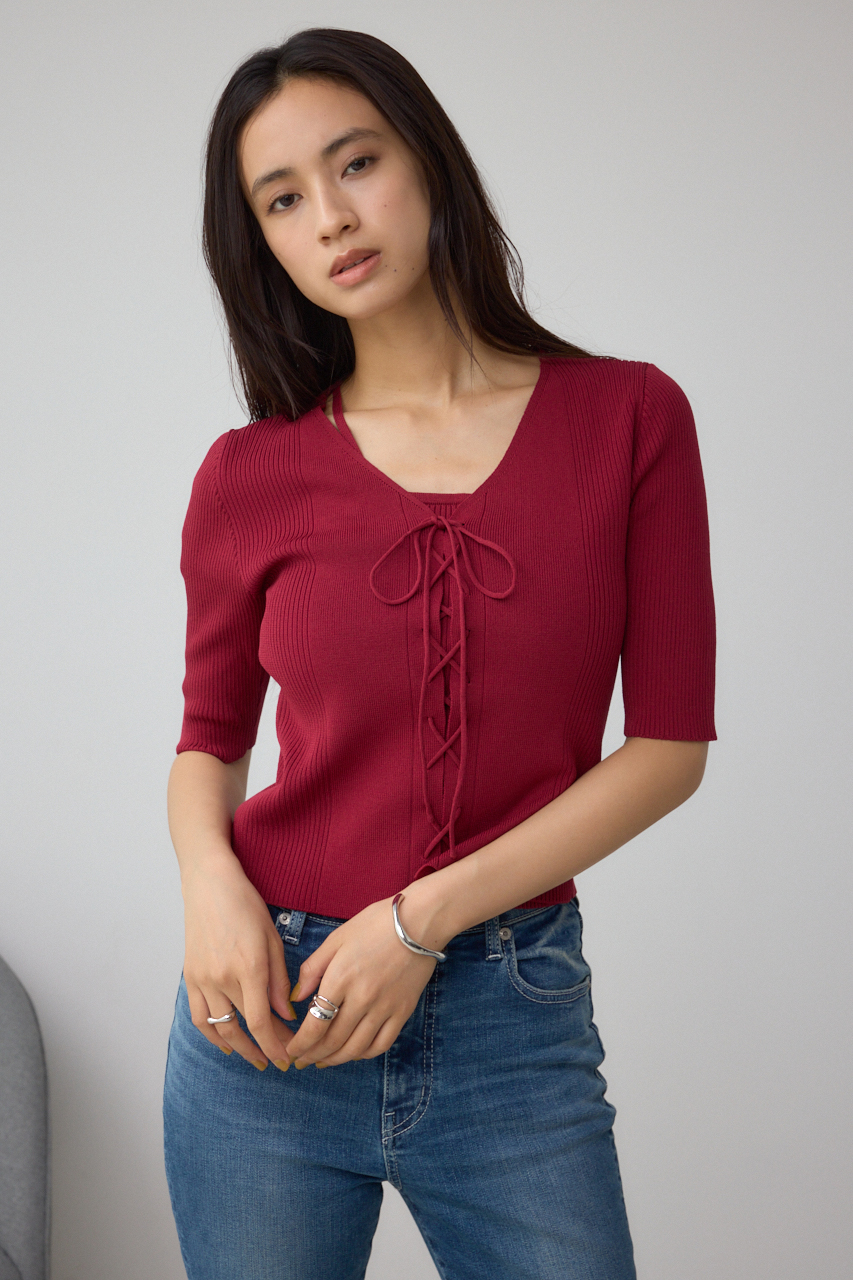 フロントのレースアップがポイントのニットトップスです。