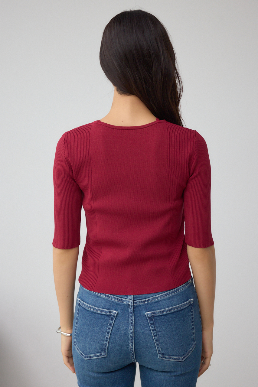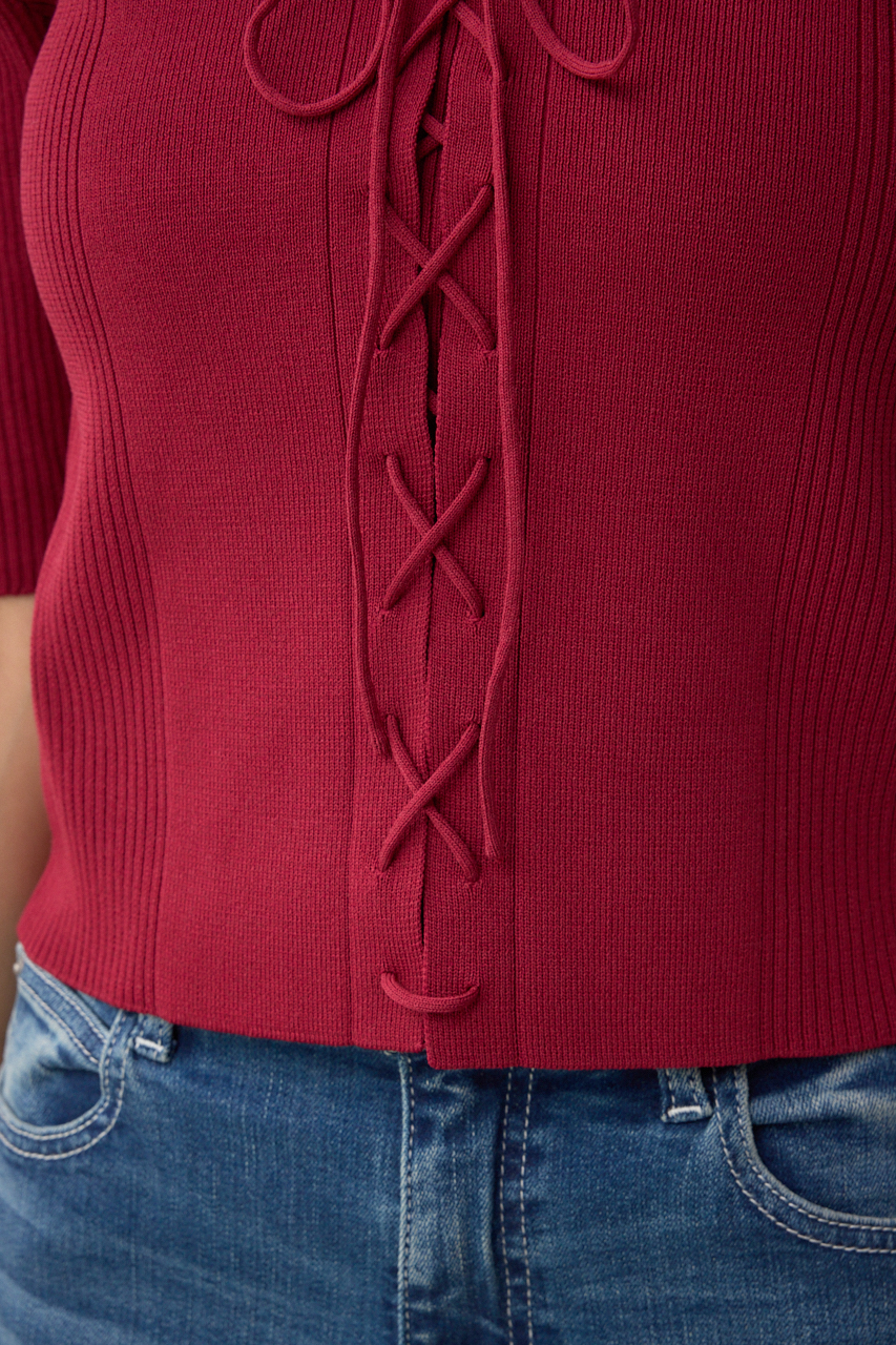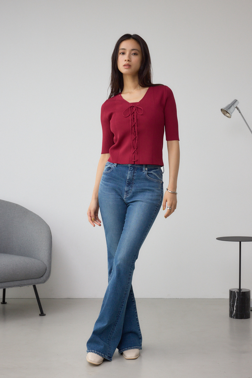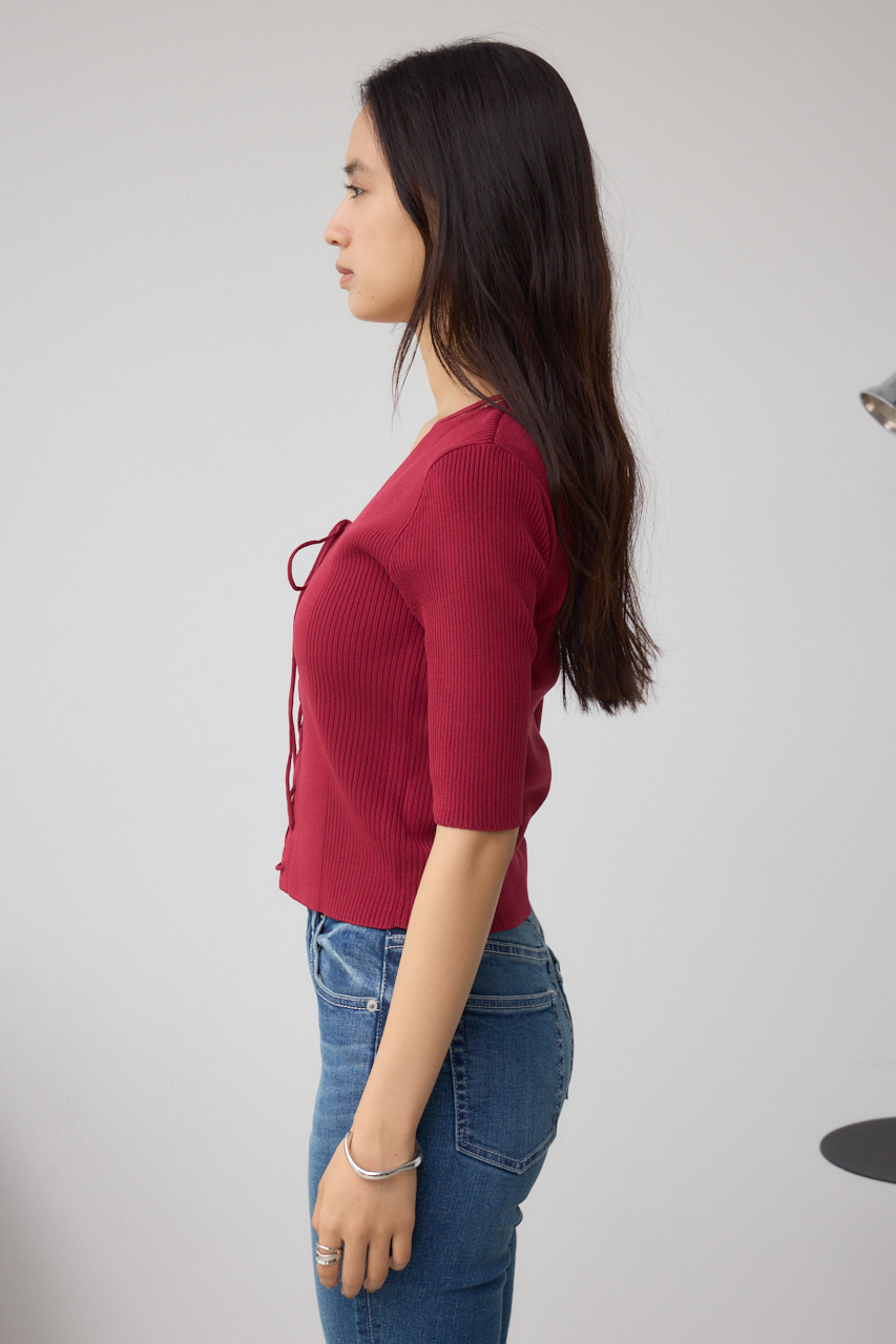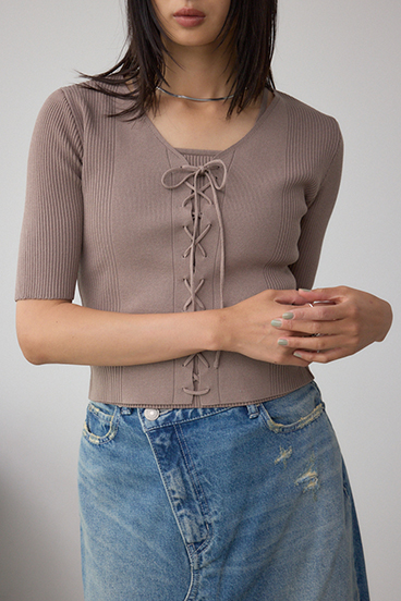 フロントのレースアップがポイントのニットトップスです。