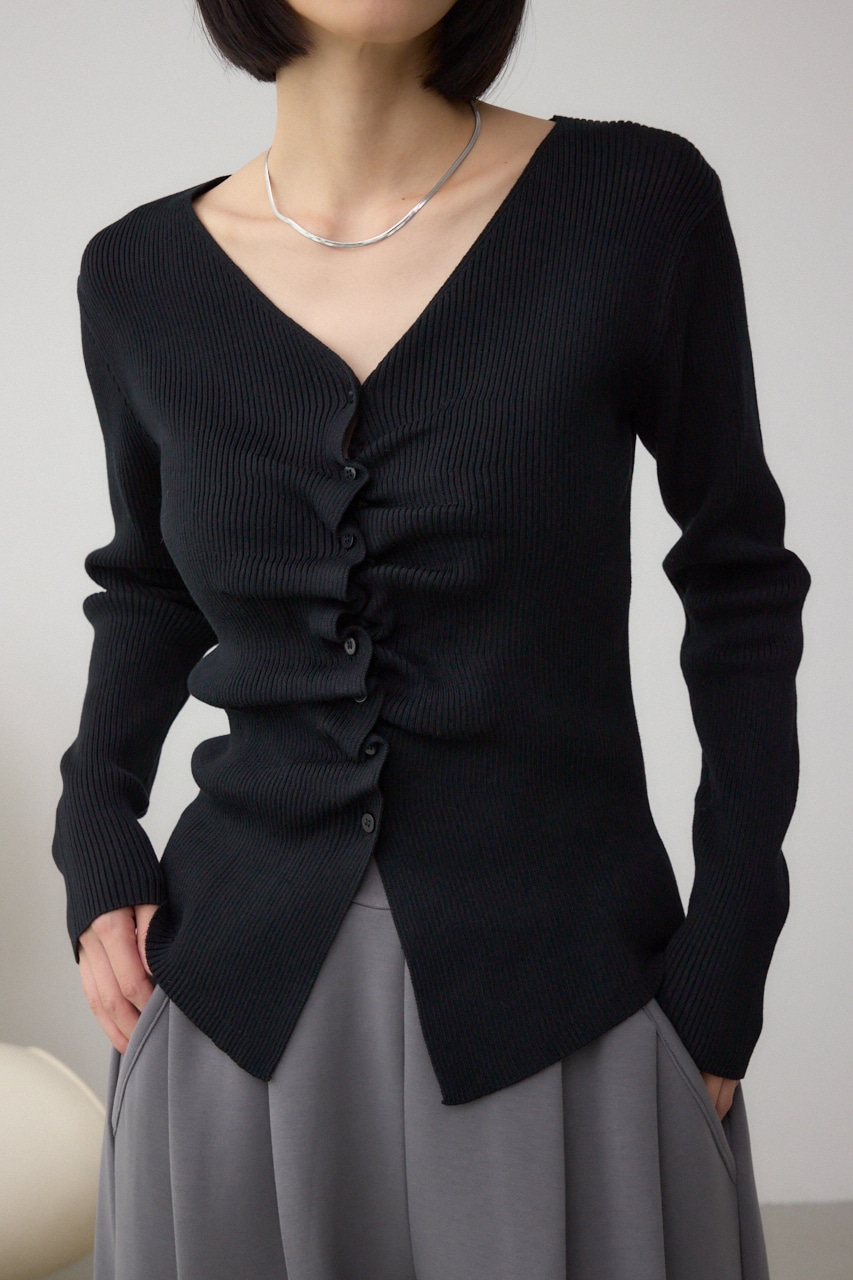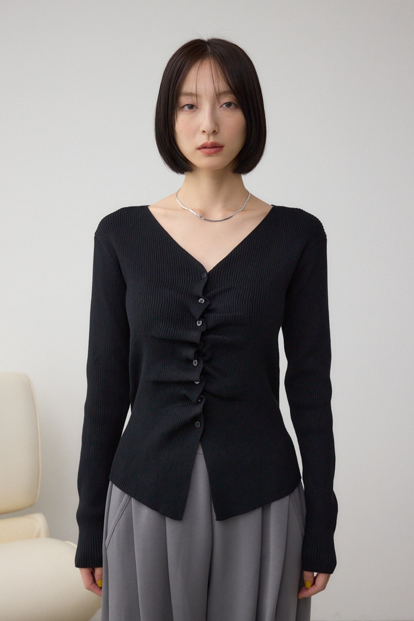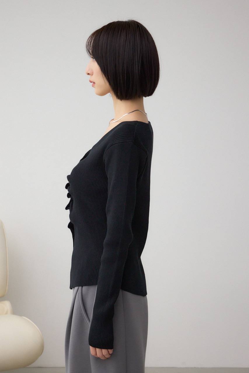 フロントに寄せた立体的なギャザーがポイントのデザインニットです。