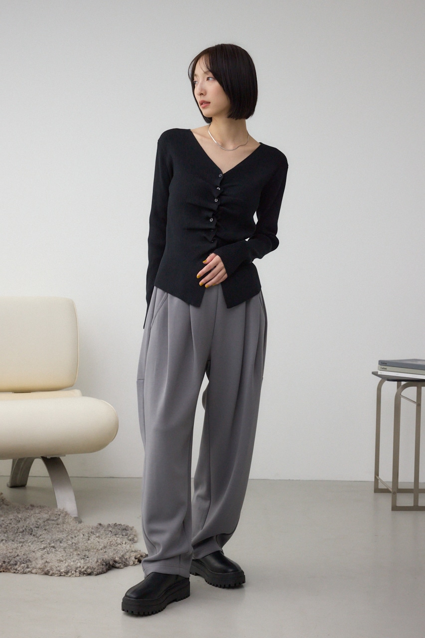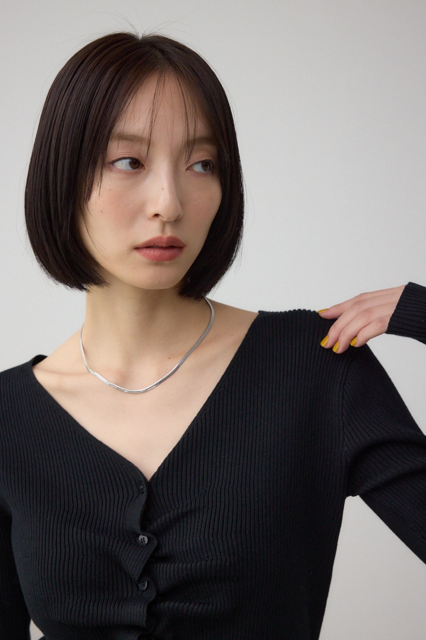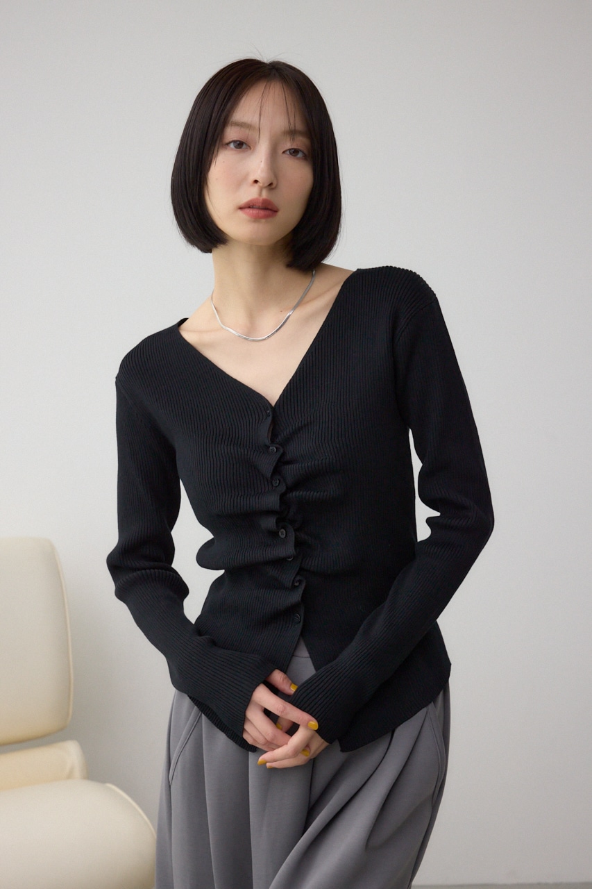 フロントに寄せた立体的なギャザーがポイントのデザインニットです。