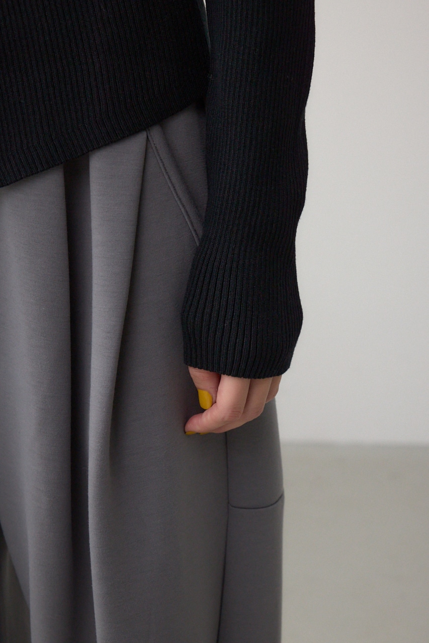 レーヨン糸にポリエステル糸を織り交ぜ、程よい膨らみと肉感に仕上げたリブ編み素材です。