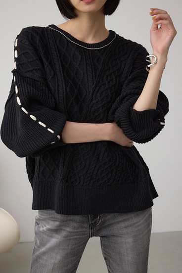ステッチデザインケーブルニット