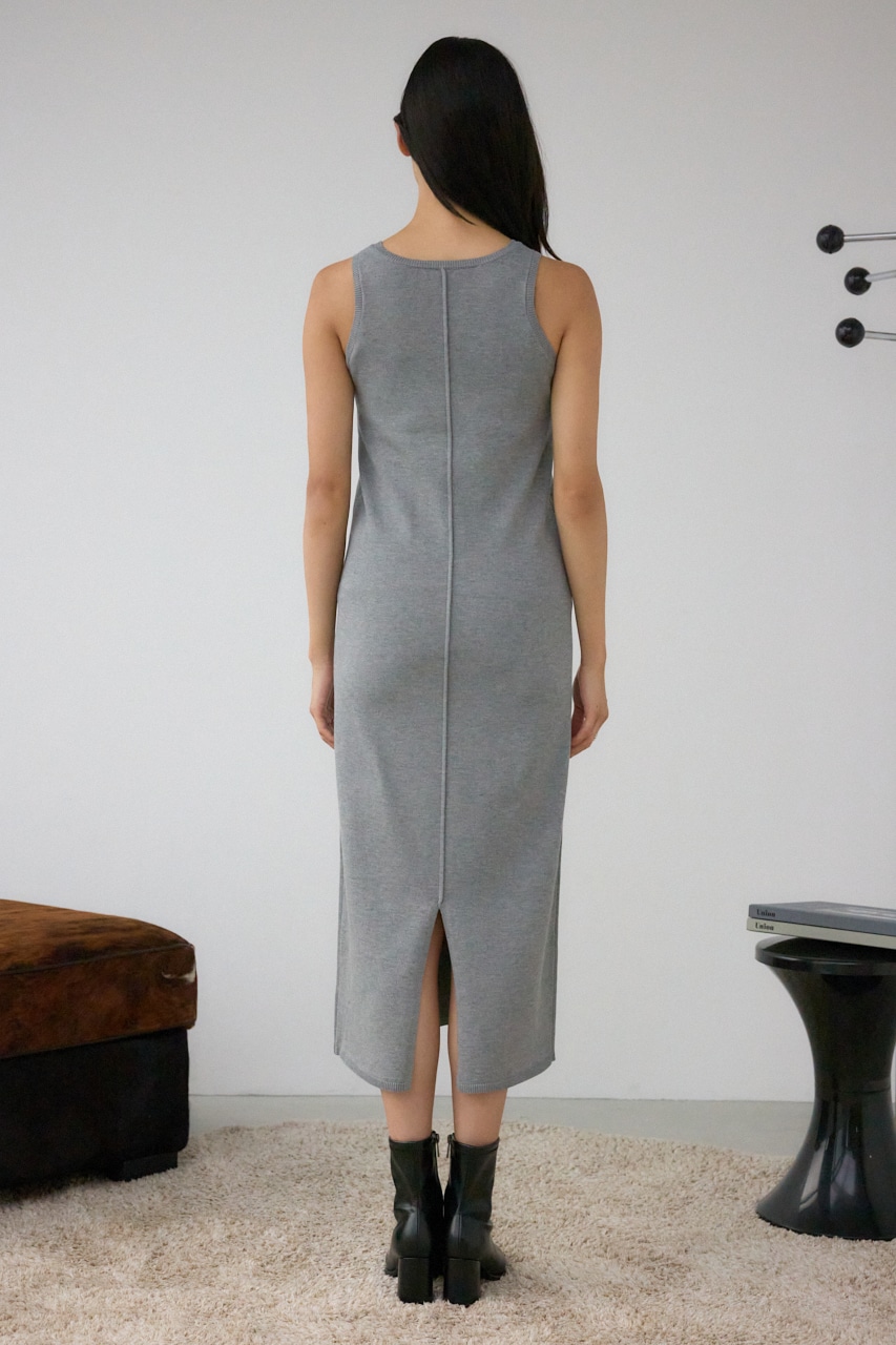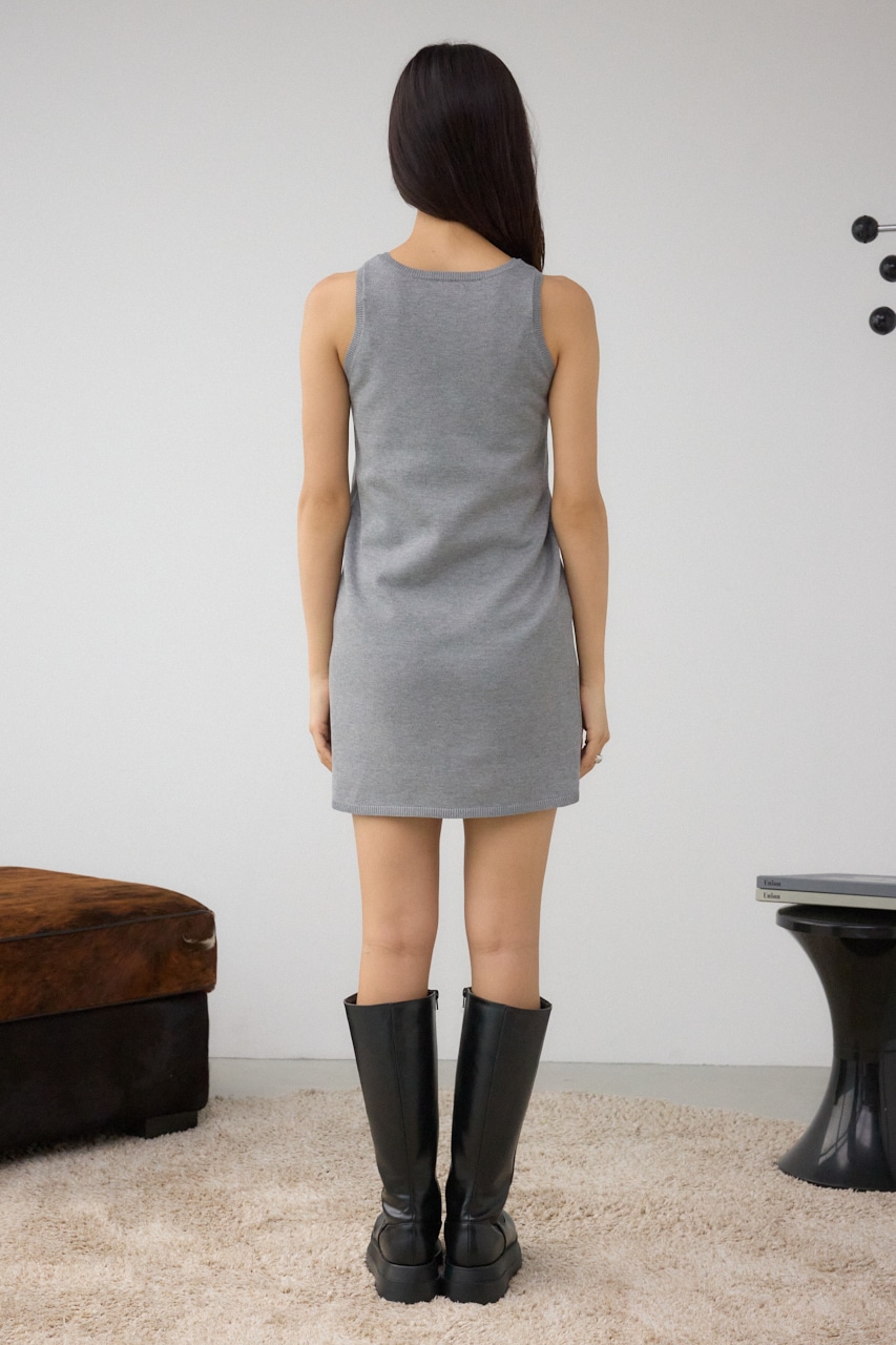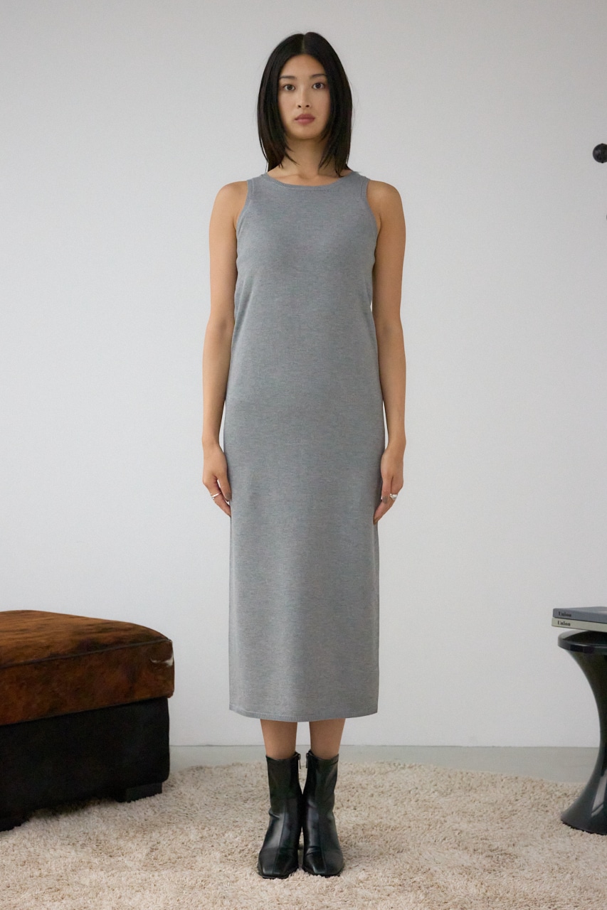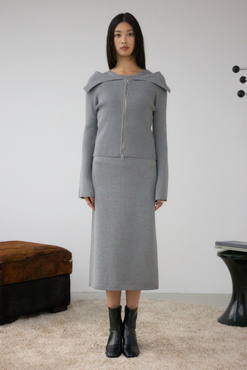 ニットタンクとビッグカラーのジップカーディガンがセットになった、セットで着られるレイヤードワンピースです。