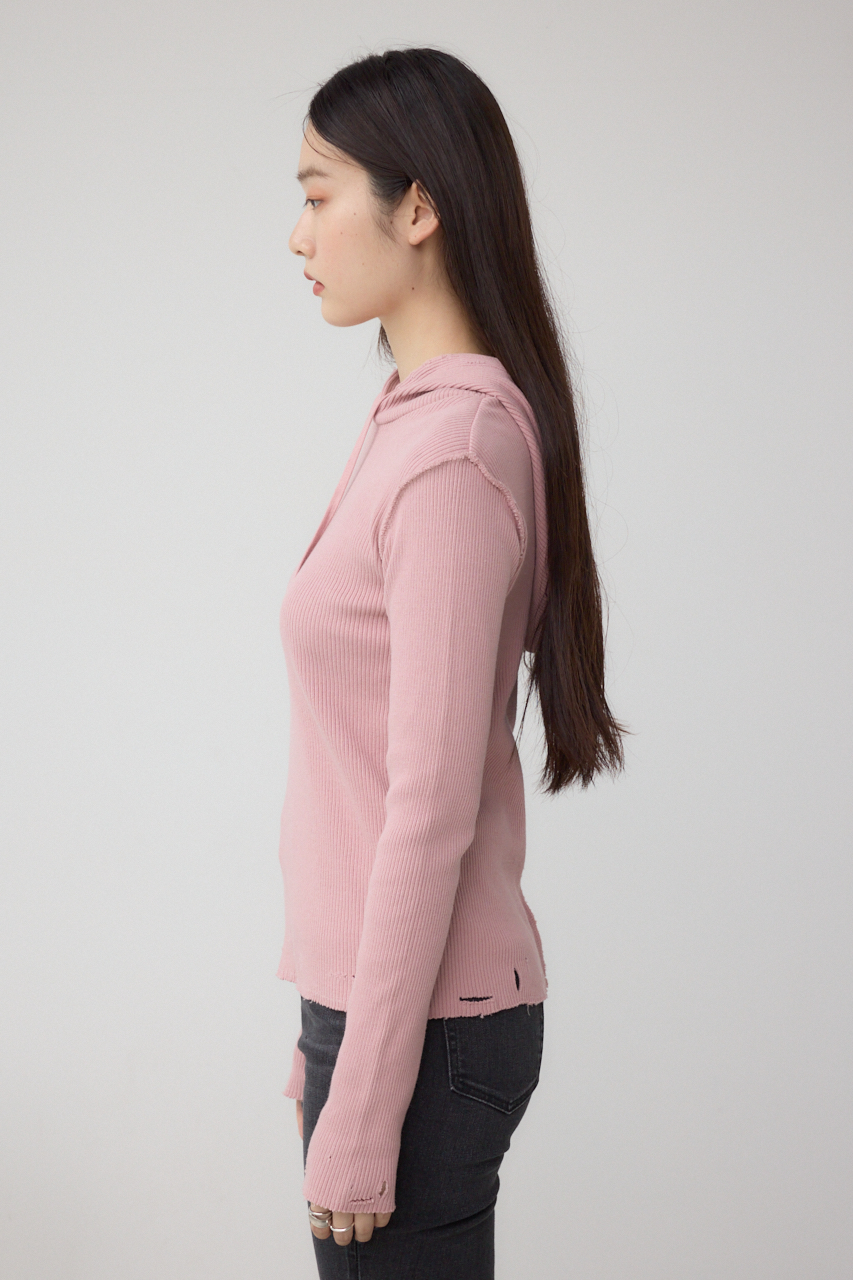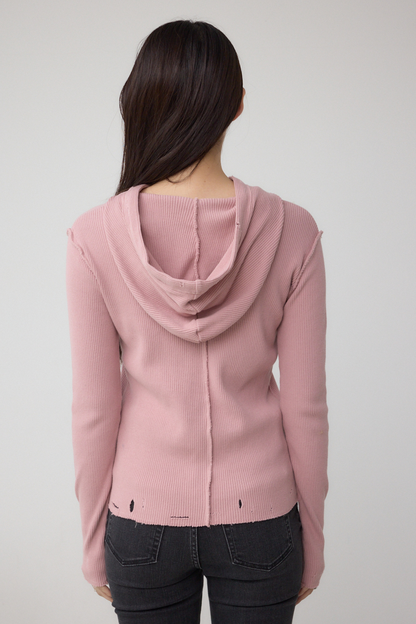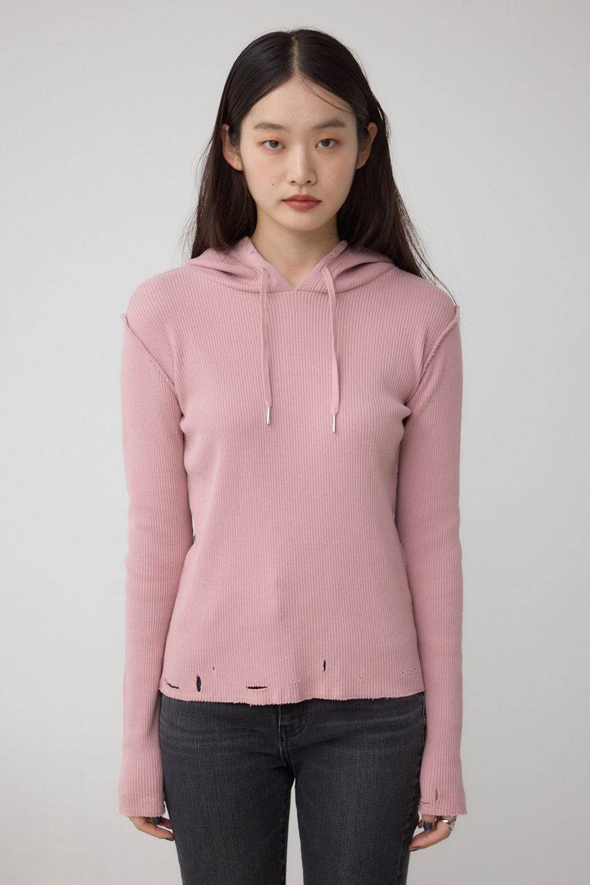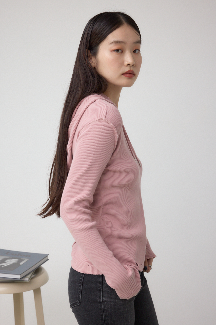 裾や袖口、フードまわりにランダムにあしらったダメージ加工がポイント。