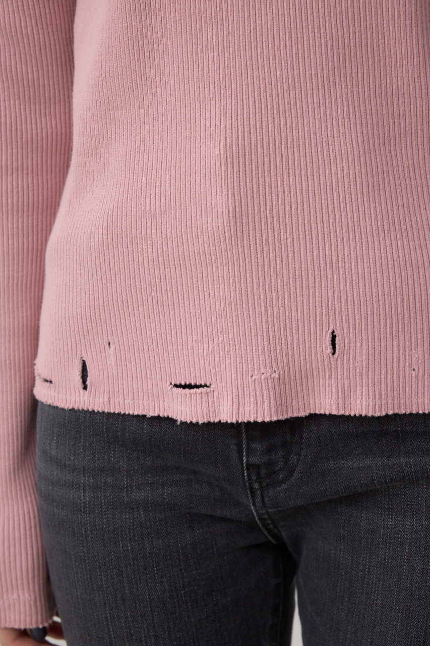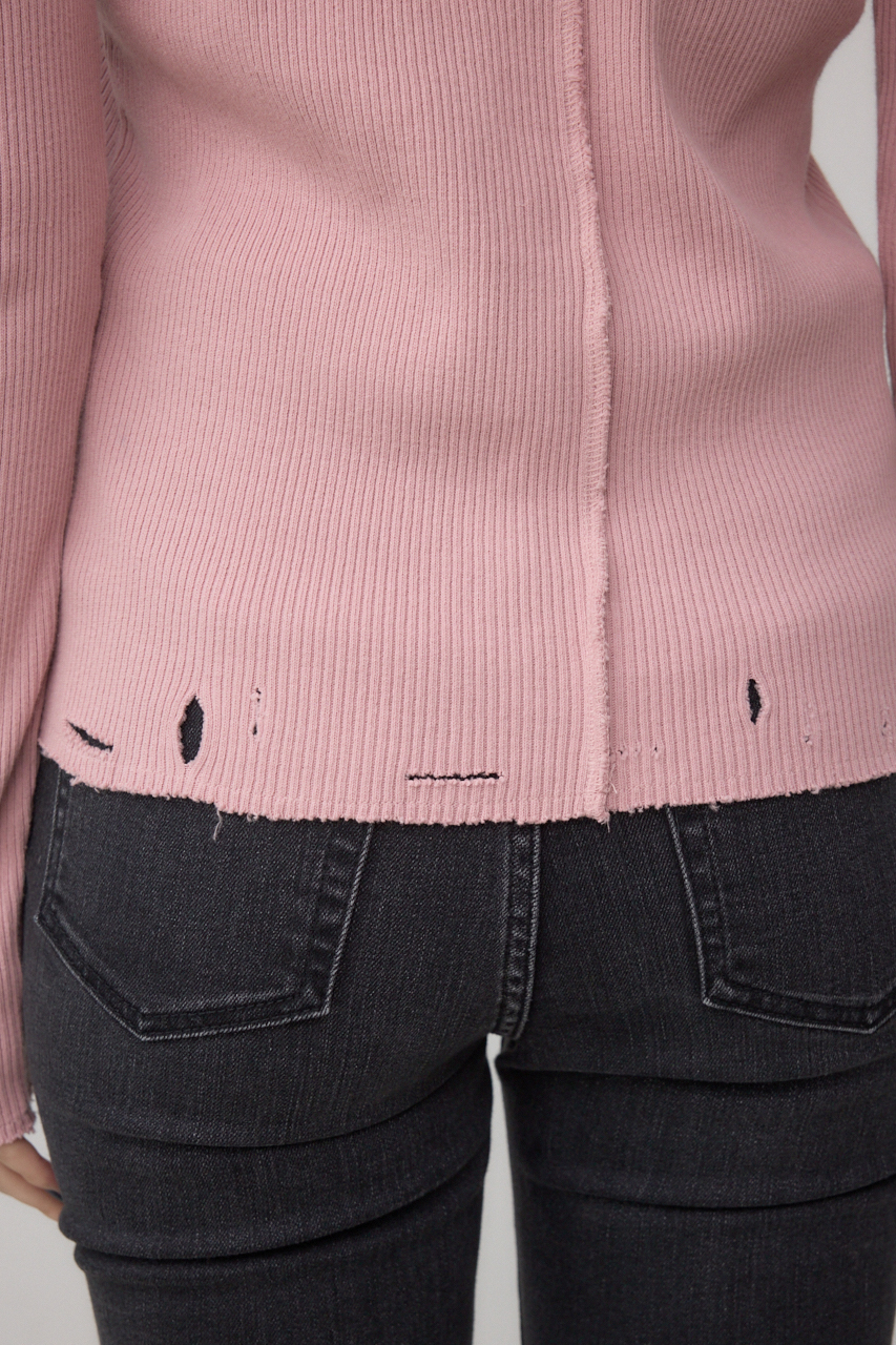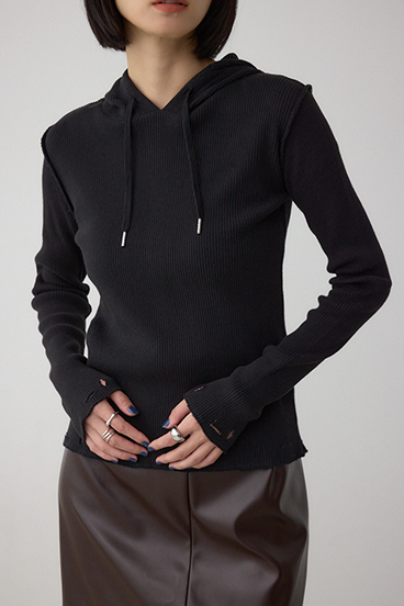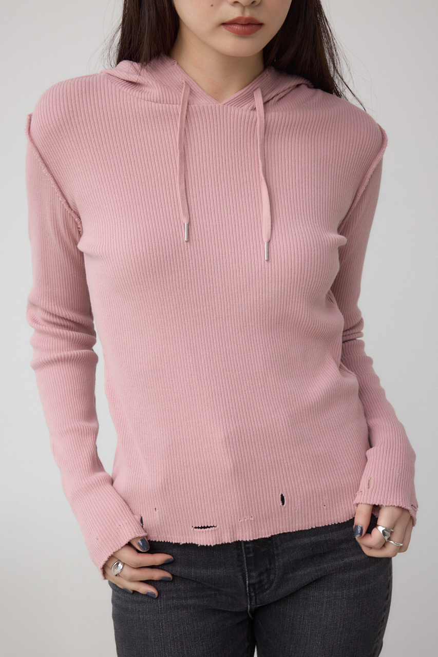 裾や袖口、フードまわりにランダムにあしらったダメージ加工がポイント。