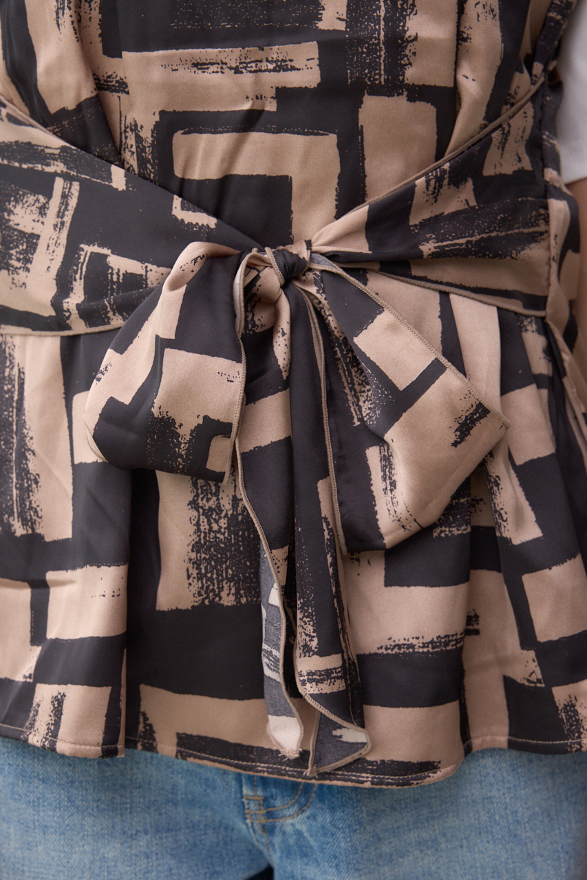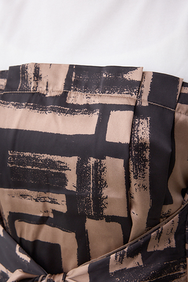 着やすい幾何学柄を使用し、トレンド感を出しました。