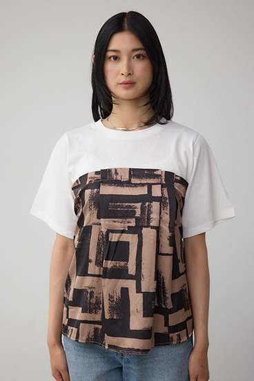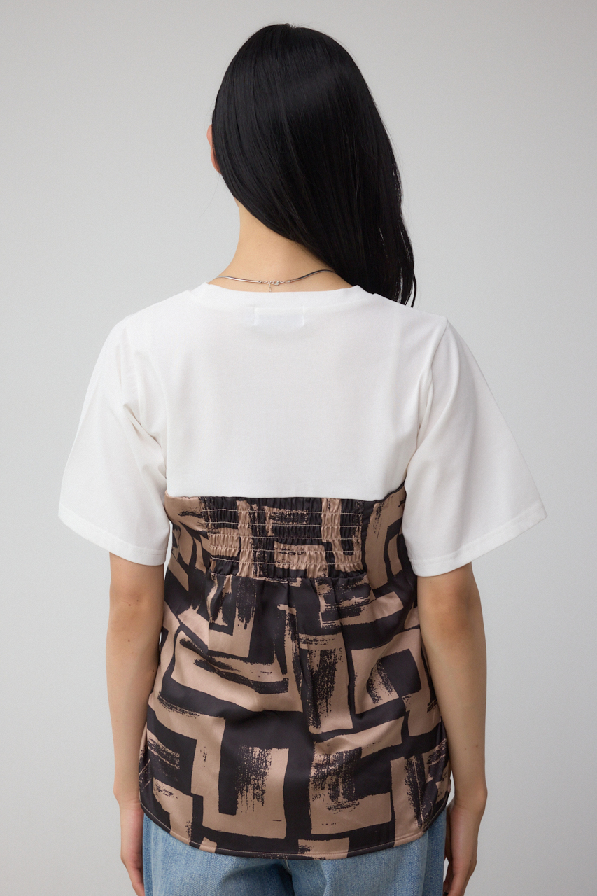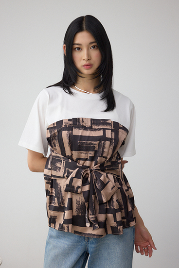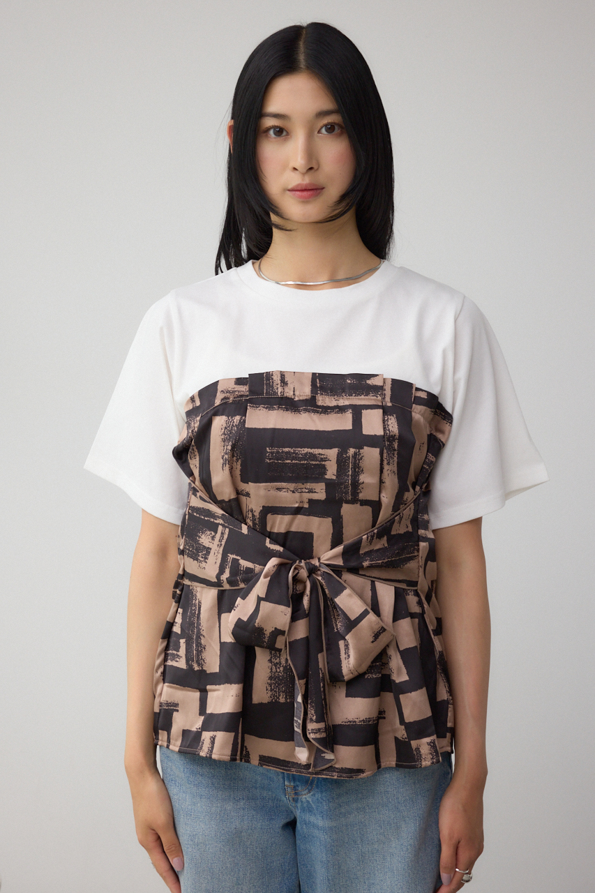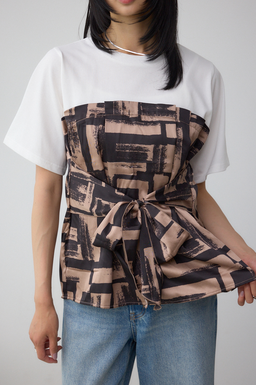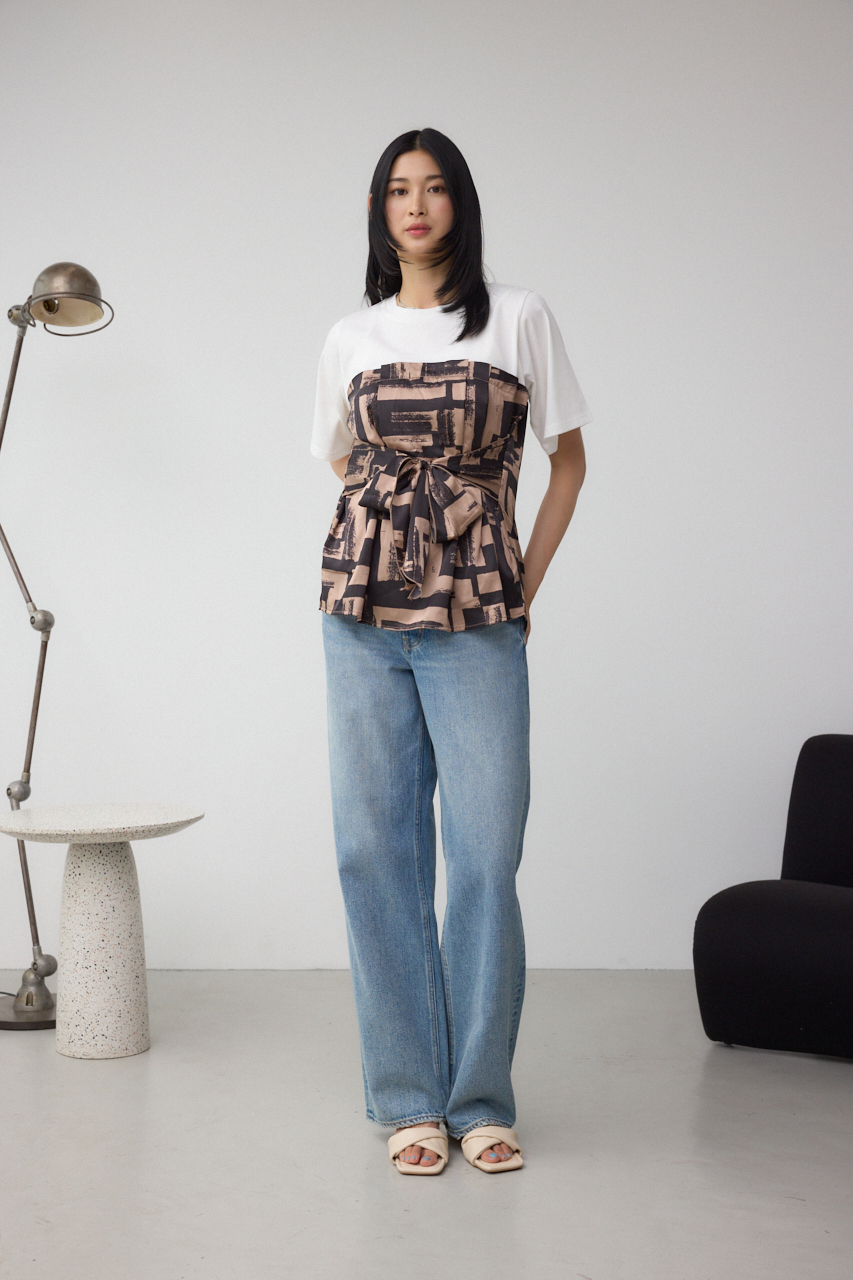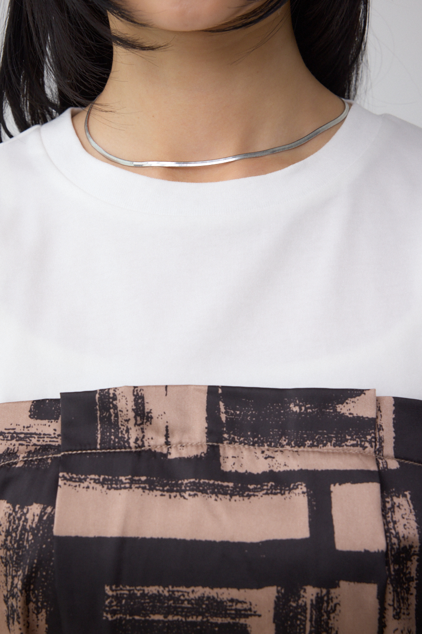 トレンドのスカーフをドッキングしたデザインがポイントのトップスです。