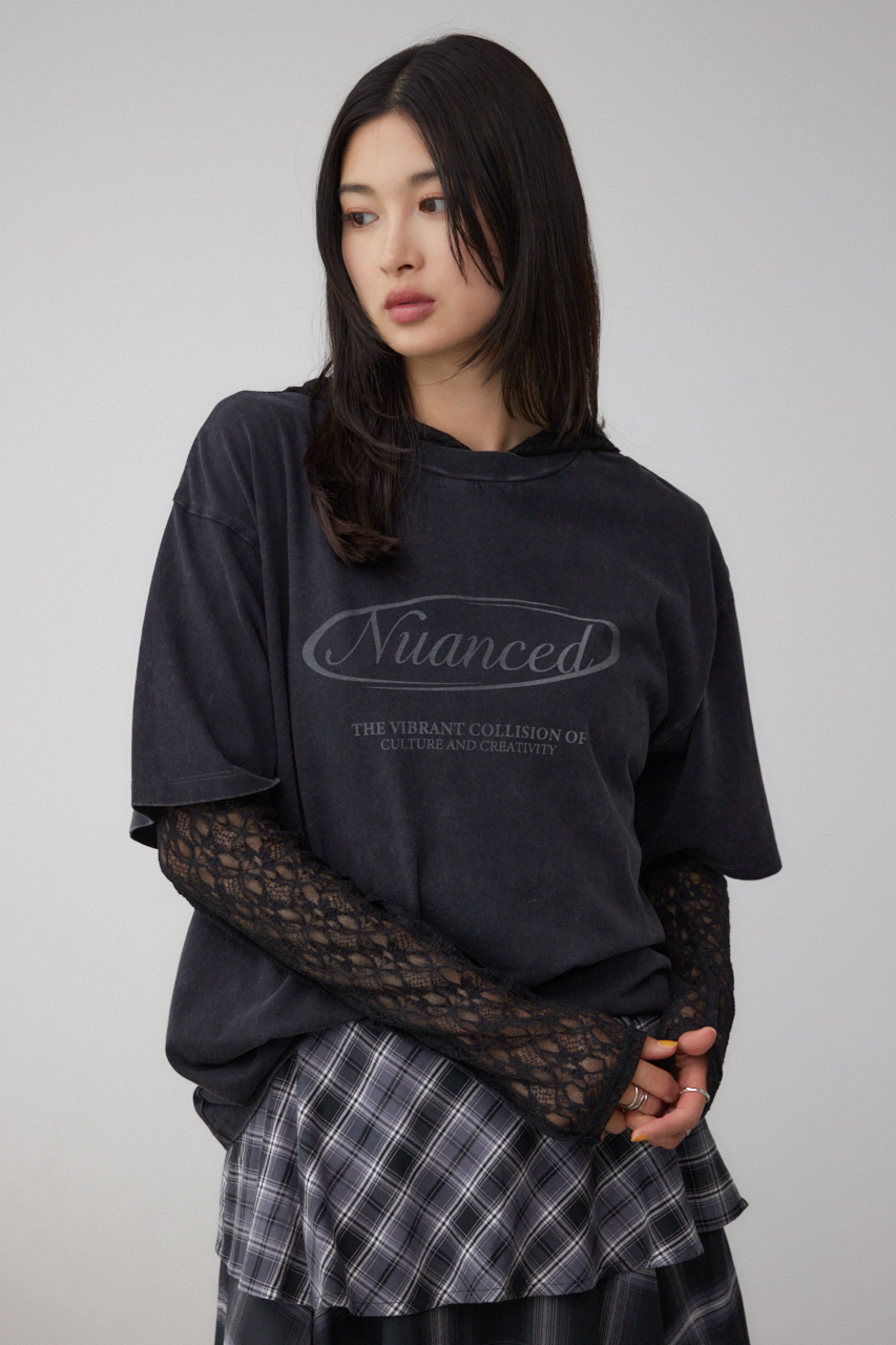 1枚での着用はもちろん、レーストップス(250IAC80-119H ヘンリーネックレースフーディートップス)とのレイヤードスタイルは、トレンドムードをぐっと引き立ててくれておすすめです。