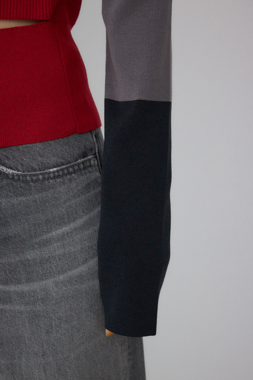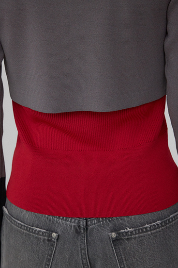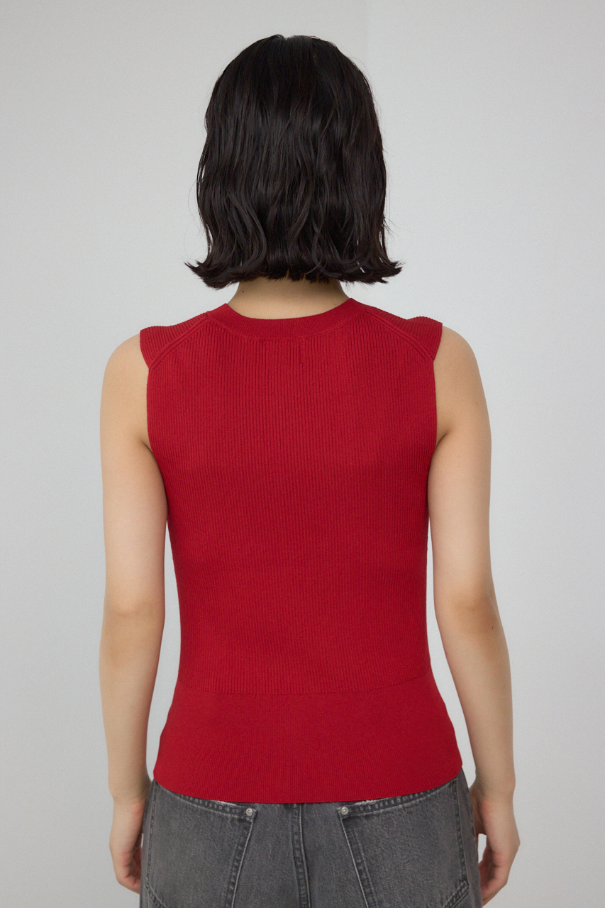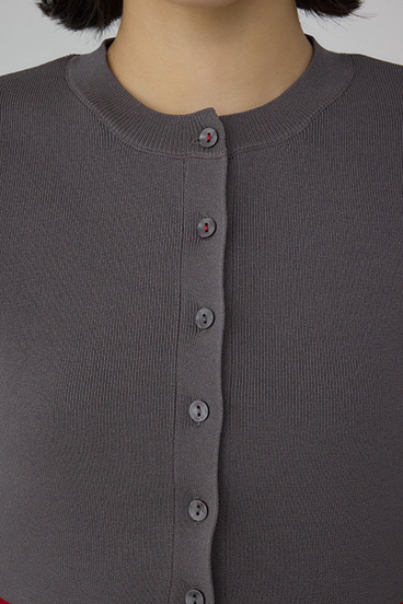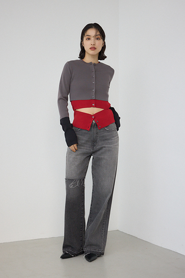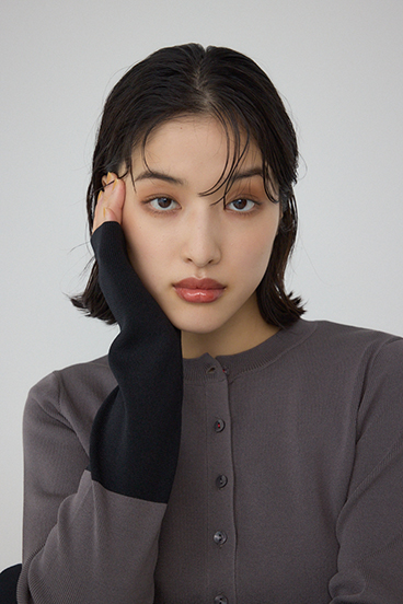 インナーのニットはスリットデザインがポイントで、下のボタンをお好みで開閉していただくとスリットの開きも調整していただけます。