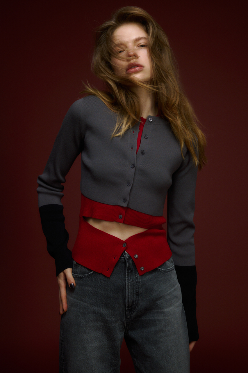 ■PLUSマルチウェイレイヤードセットニットカーディガン
