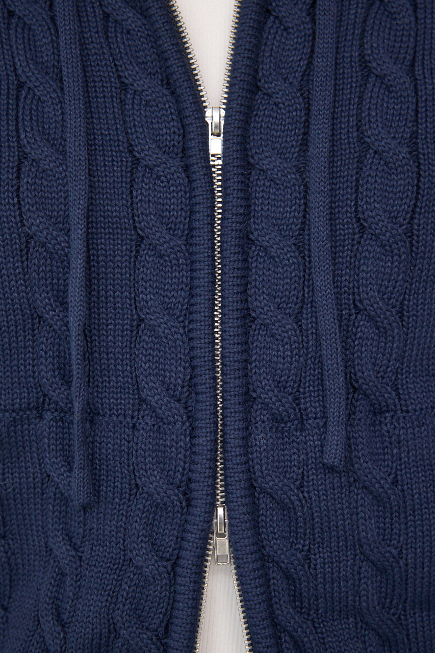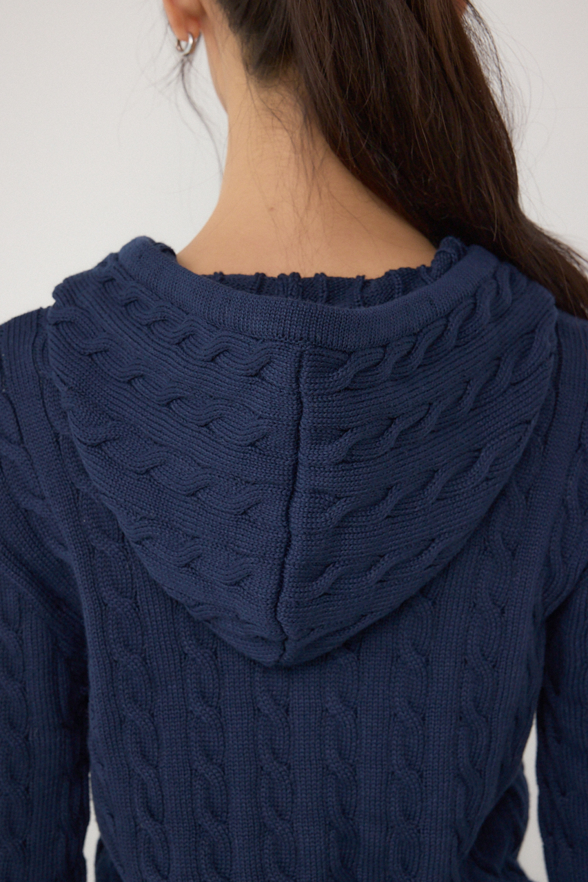 立体感のあるケーブル編みで高見えする編地に仕上がっています。