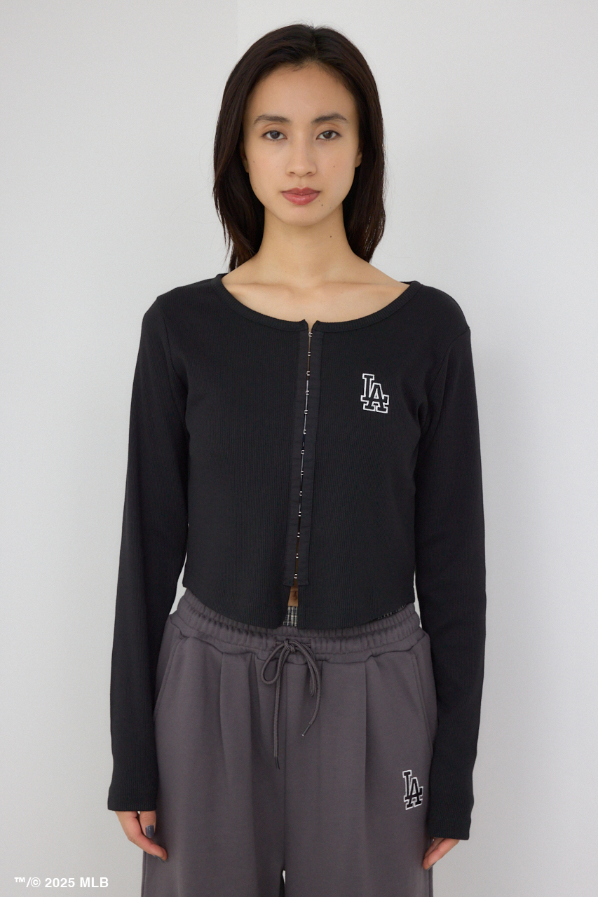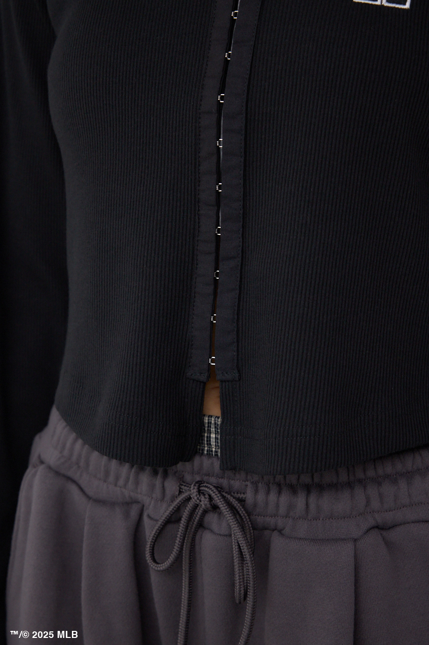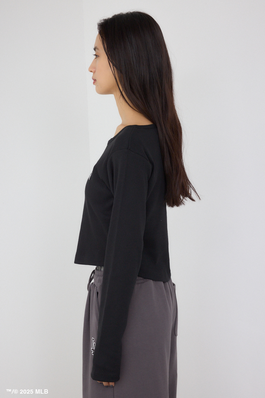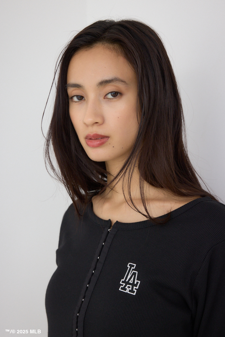 細かいピッチのリブ生地を使用し、胸元にワッペン風のMLBロゴ刺繍を施しました。