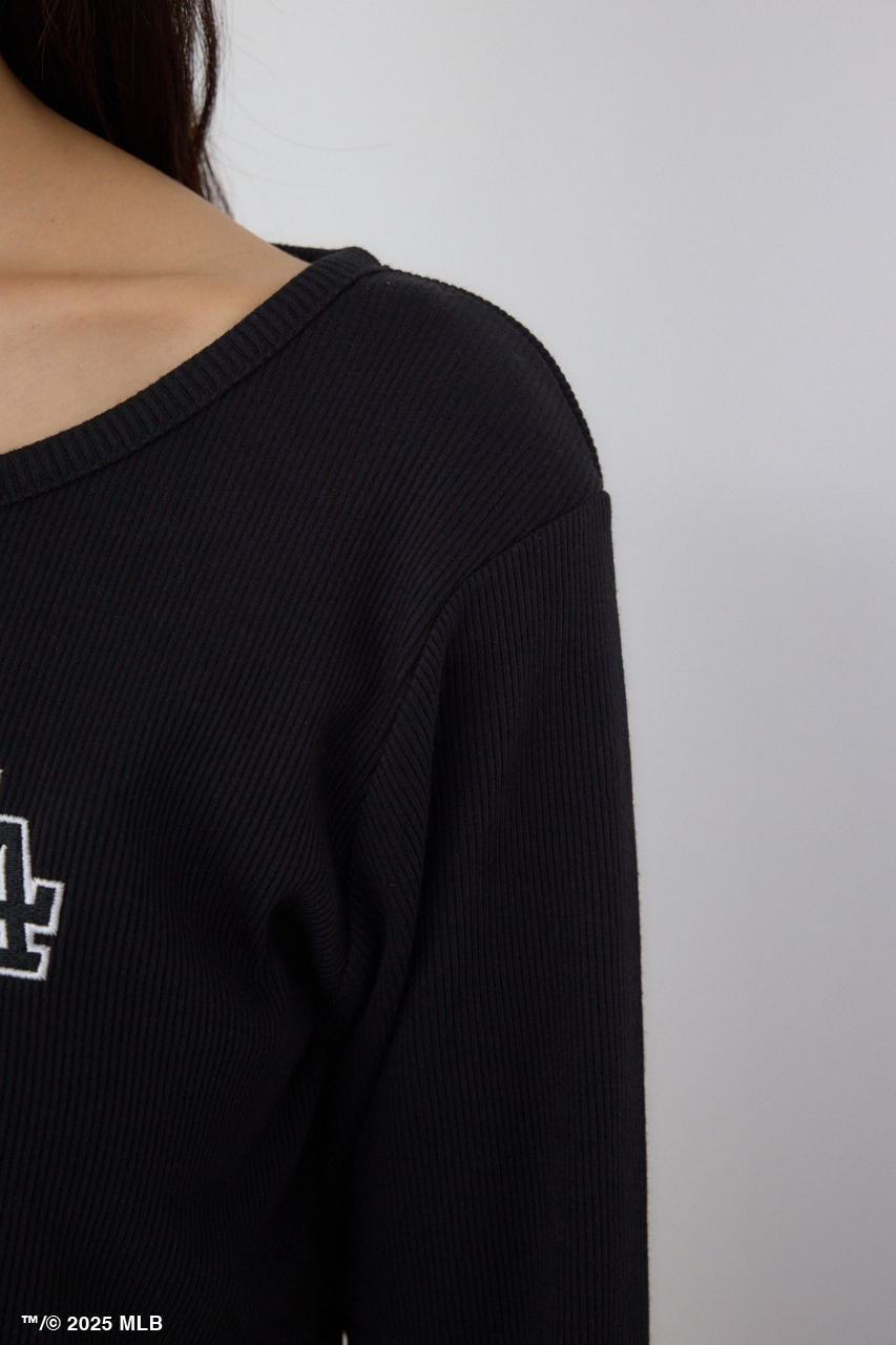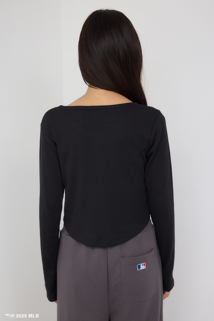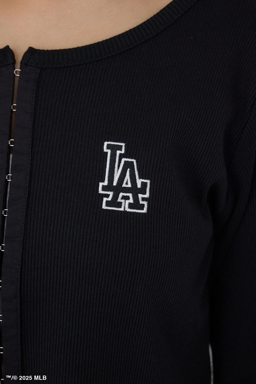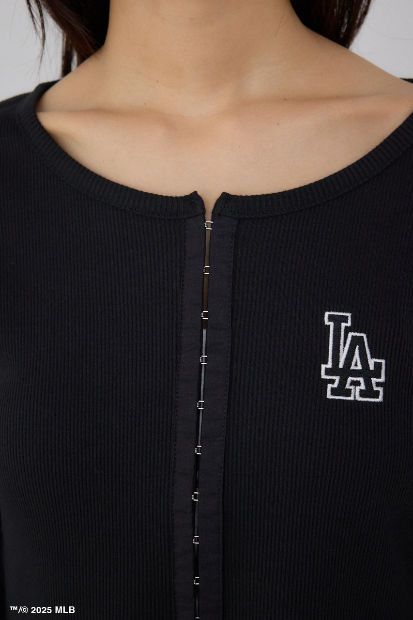 細かいピッチのリブ生地を使用し、胸元にワッペン風のMLBロゴ刺繍を施しました。