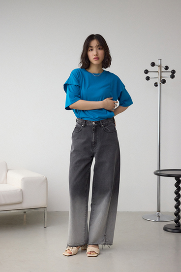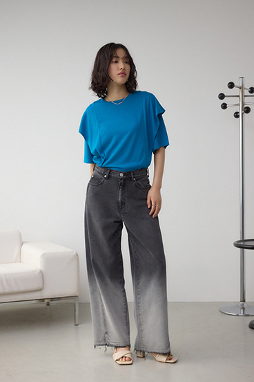 スタイリングのポイントになる加工感なのでシンプルな無地カットソー等とも相性良く着用頂けます。