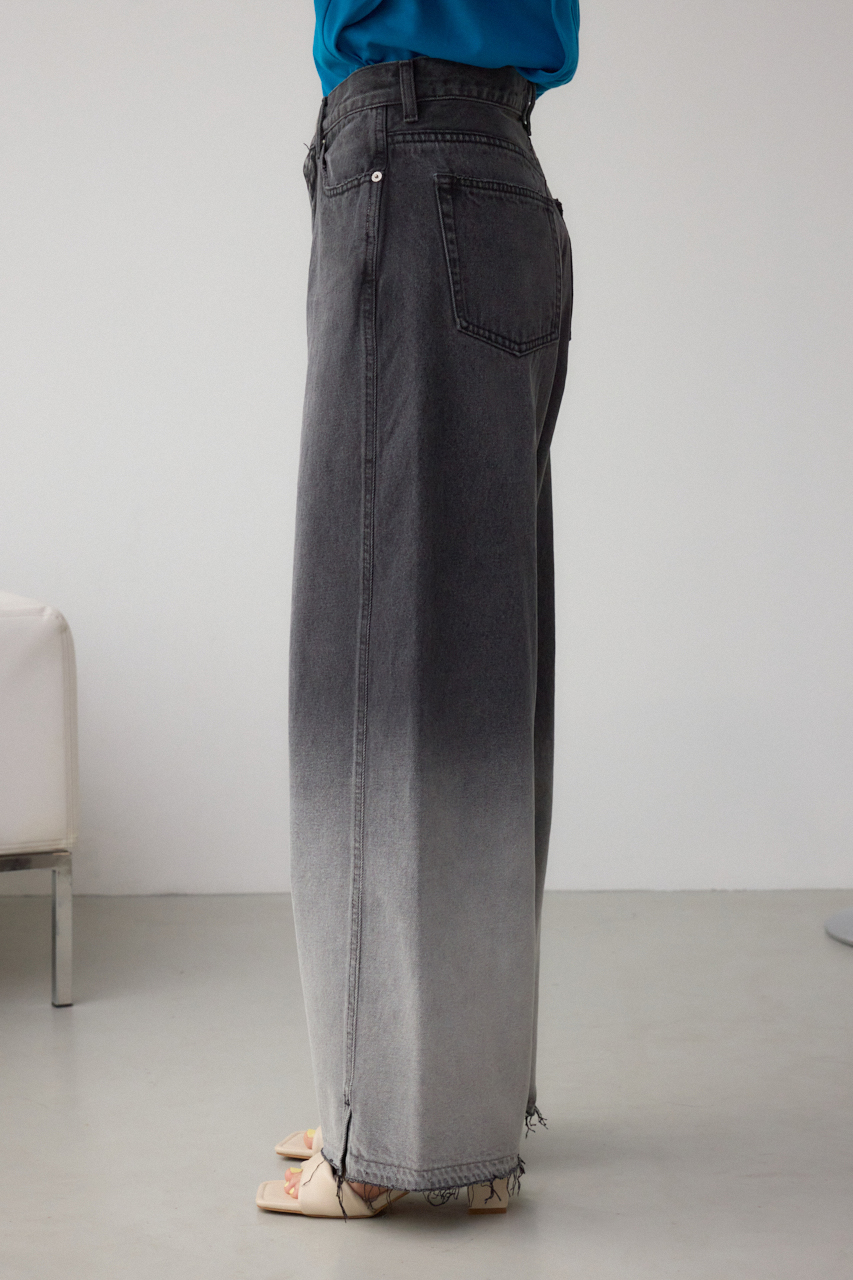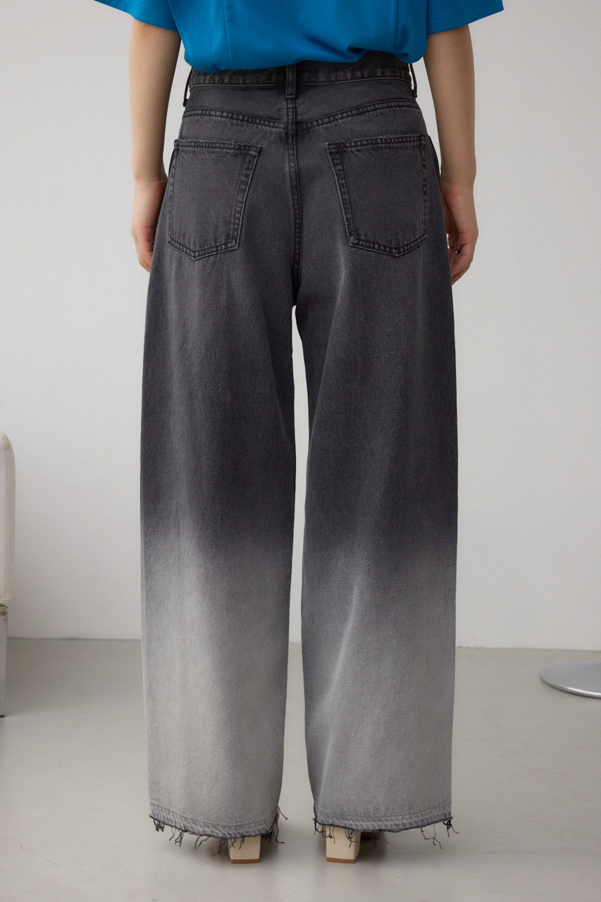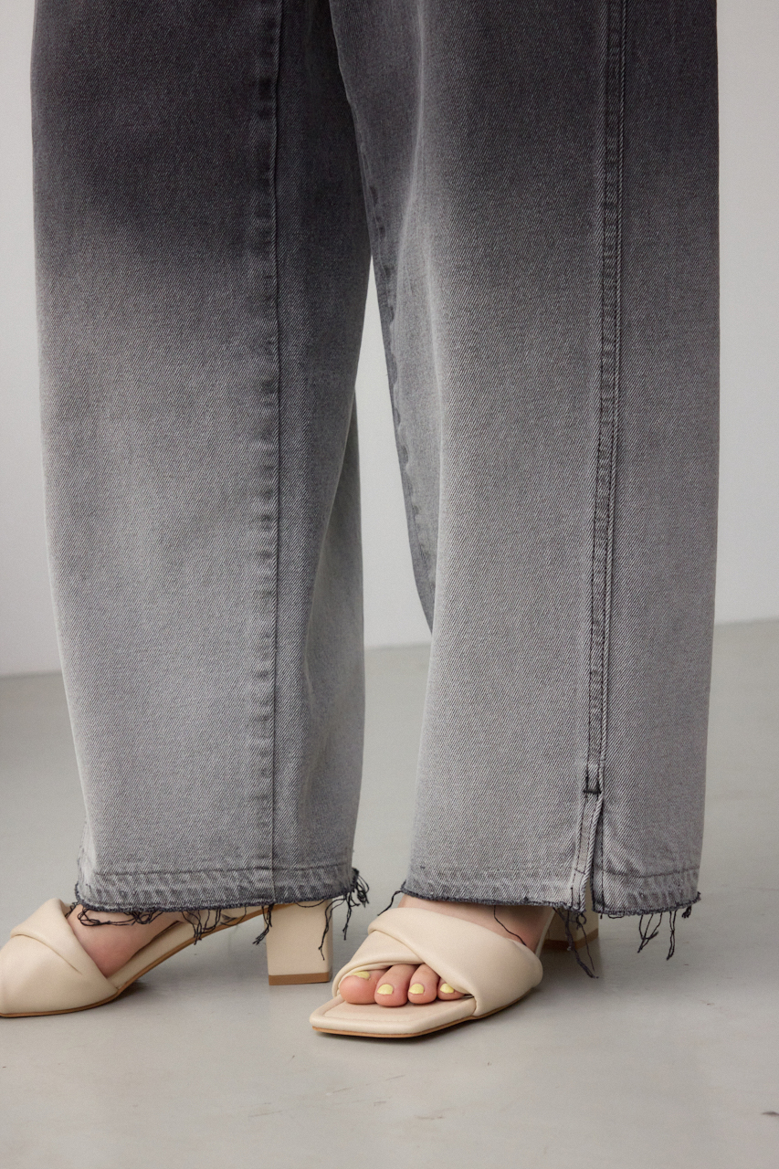 足のラインを拾わないゆったりとしたワイドレッグ。