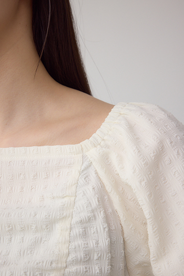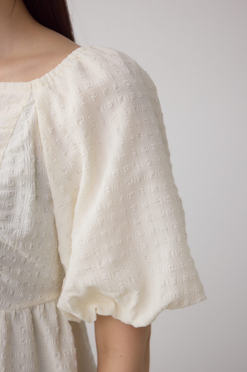 袖は女性らしさをぐっと引き立たせるバルーンスリーブデザイン。