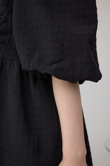 袖は女性らしさをぐっと引き立たせるバルーンスリーブデザイン。