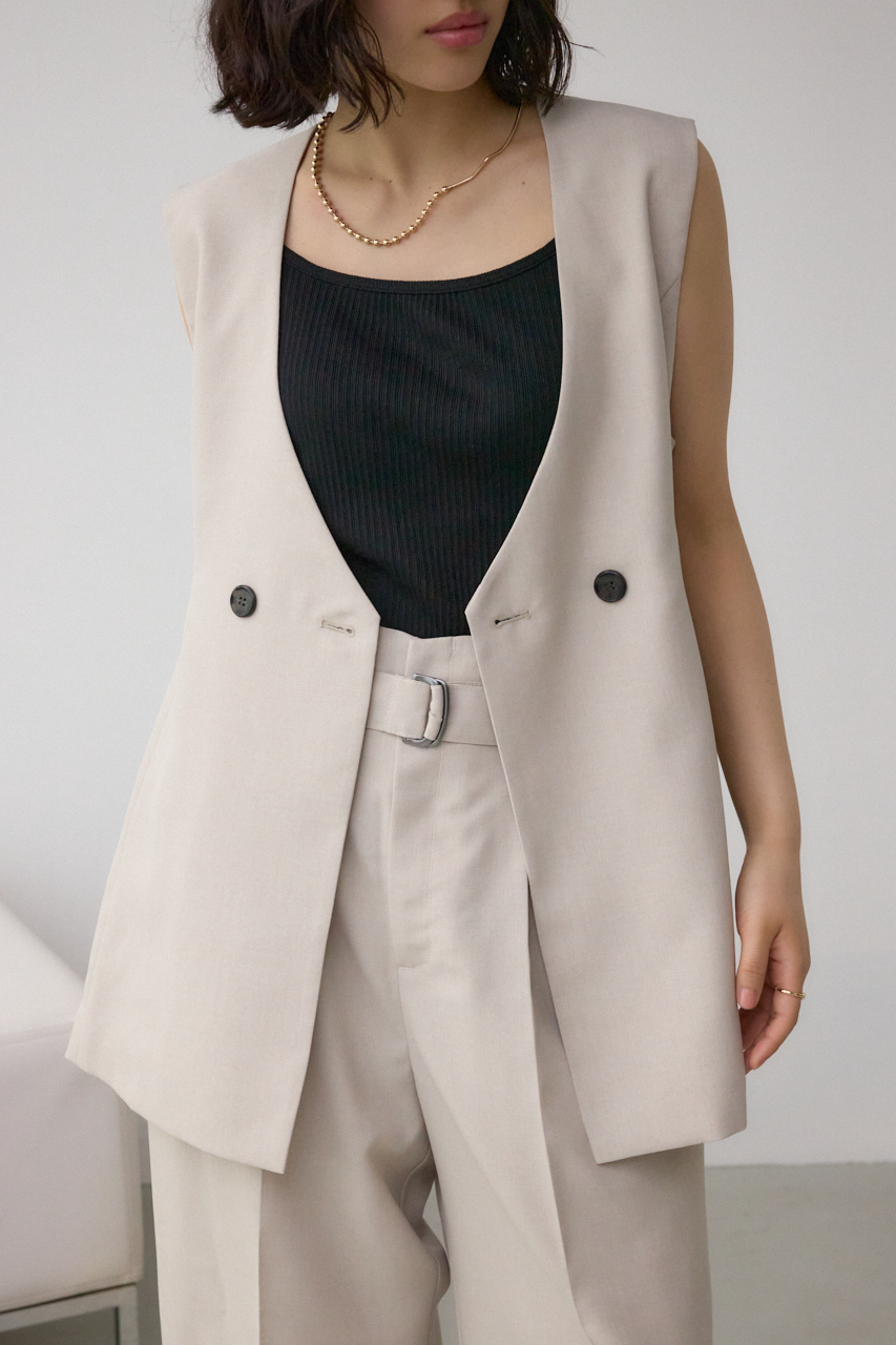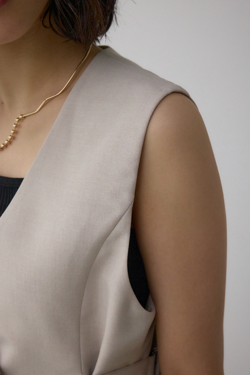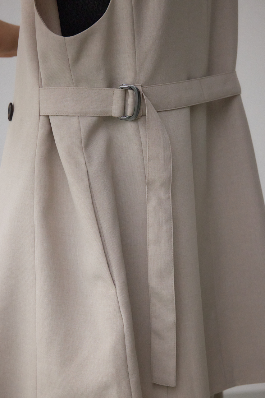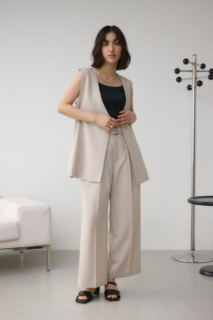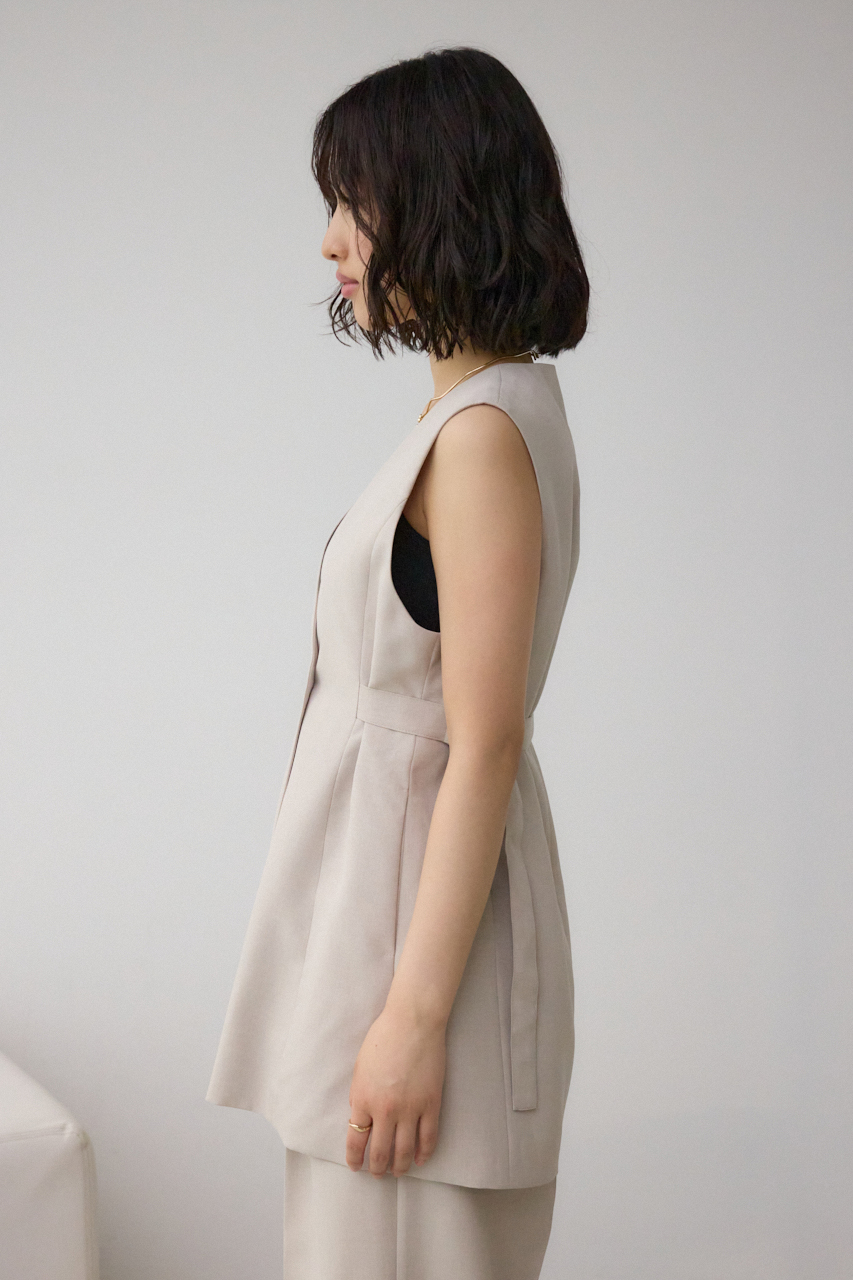 サイドベルトがポイントのリネンライク素材を使用したジレ。