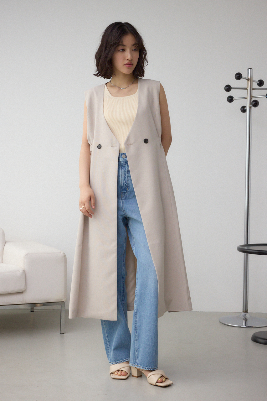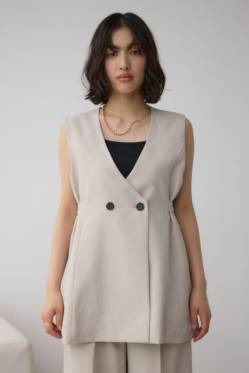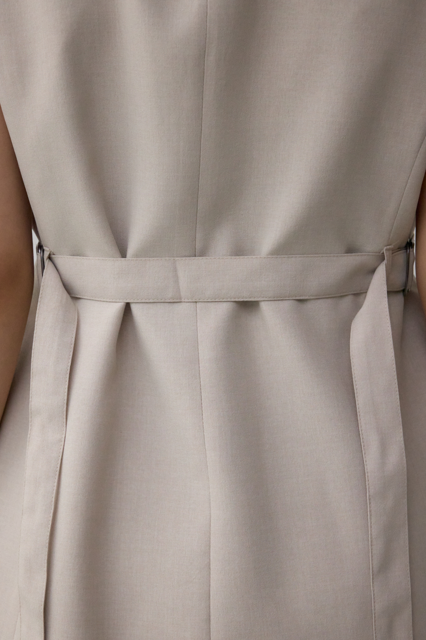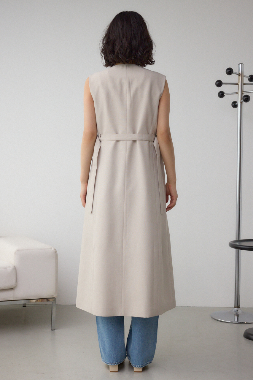 サイドベルトがポイントのリネンライク素材を使用したジレ。