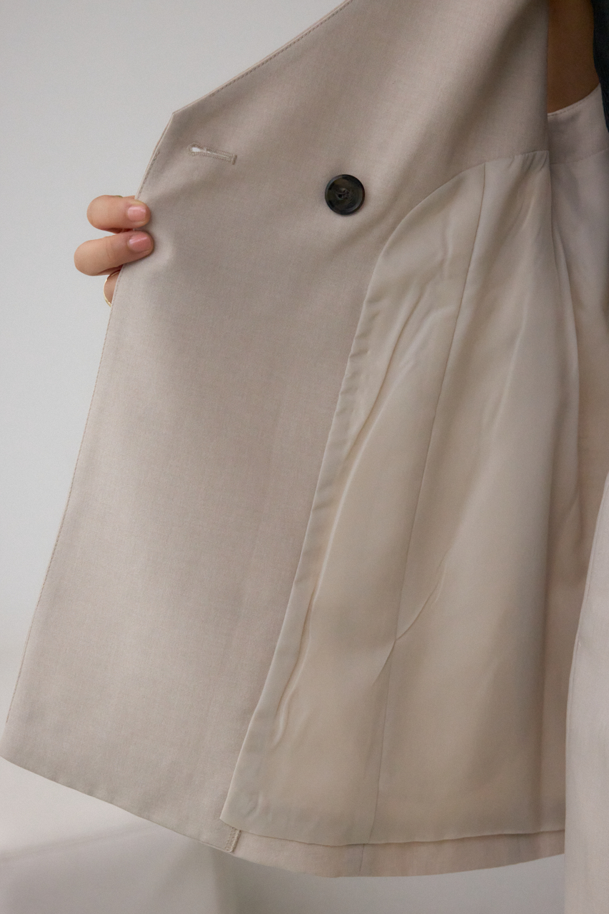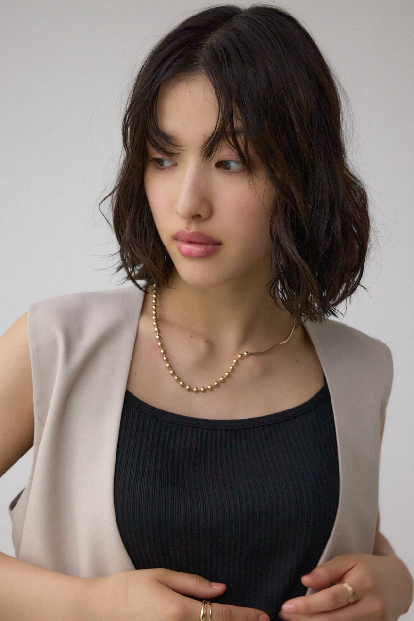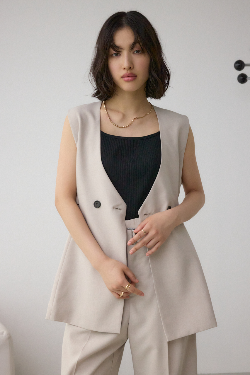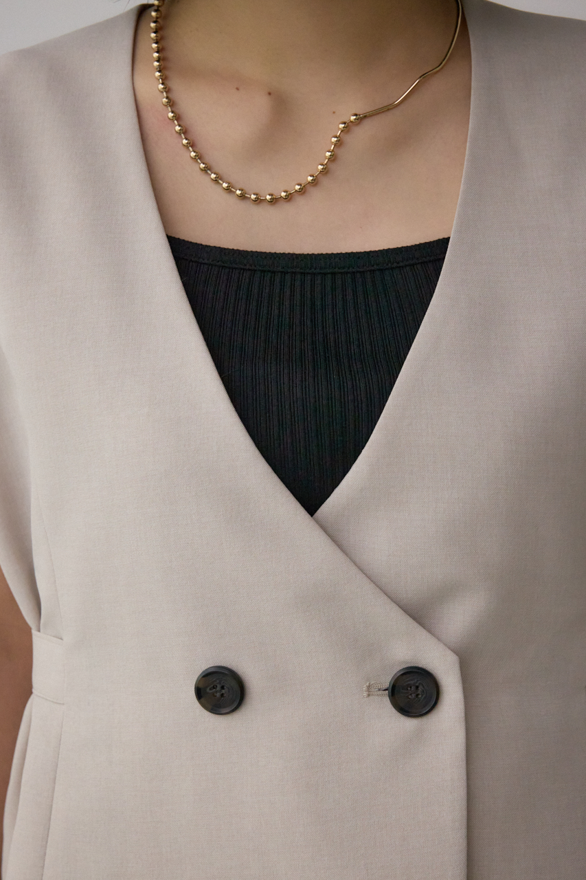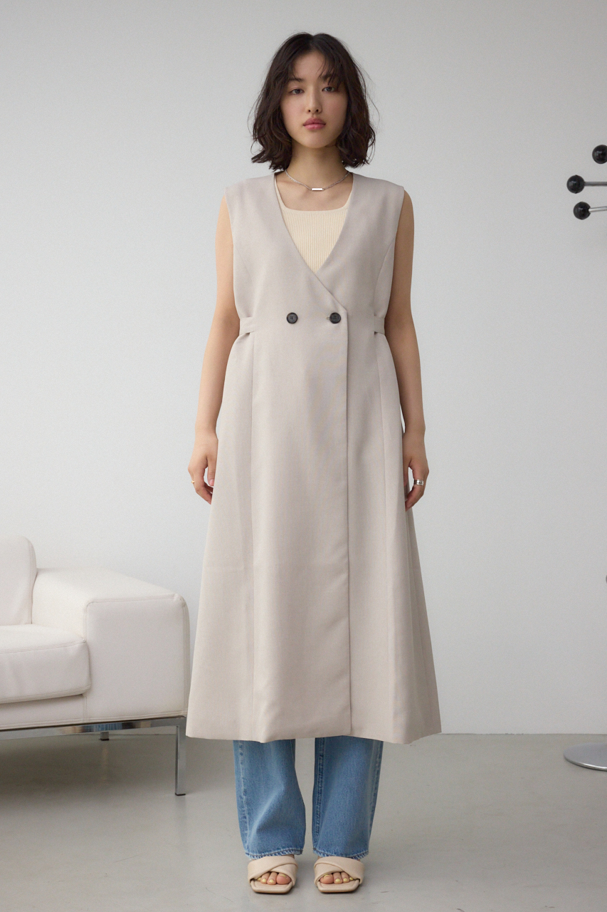 サイドベルトがポイントのリネンライク素材を使用したジレ。
