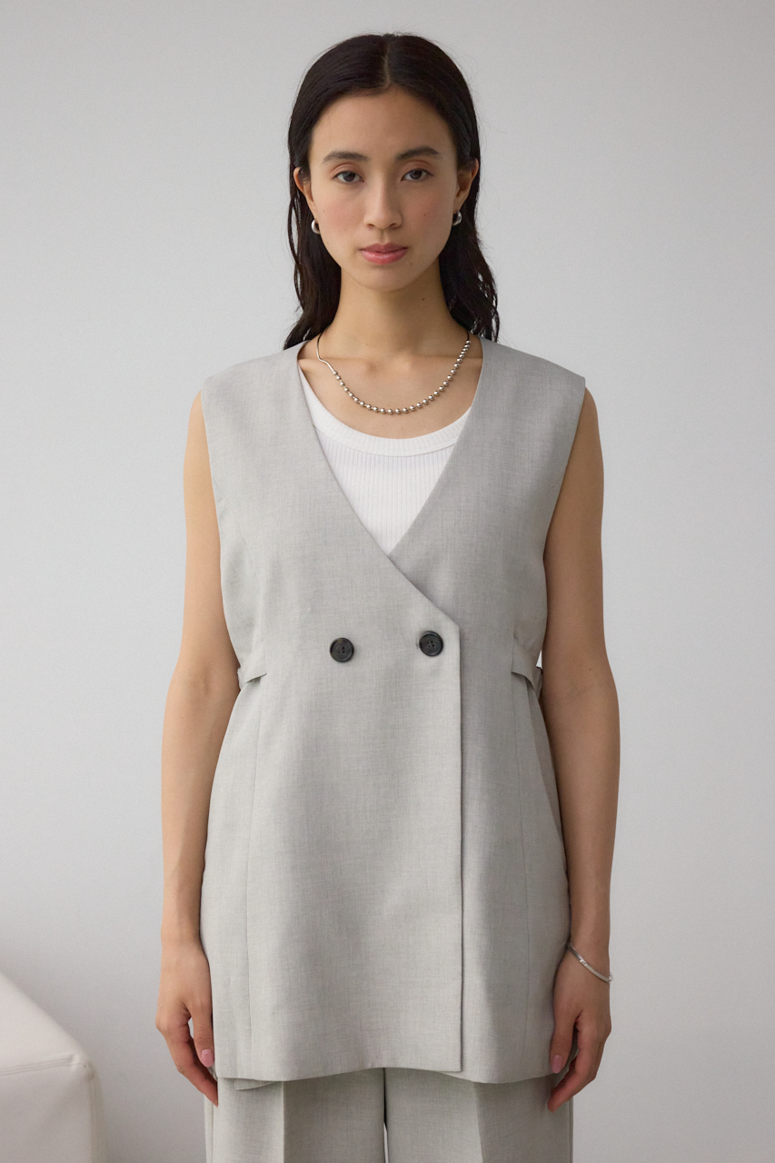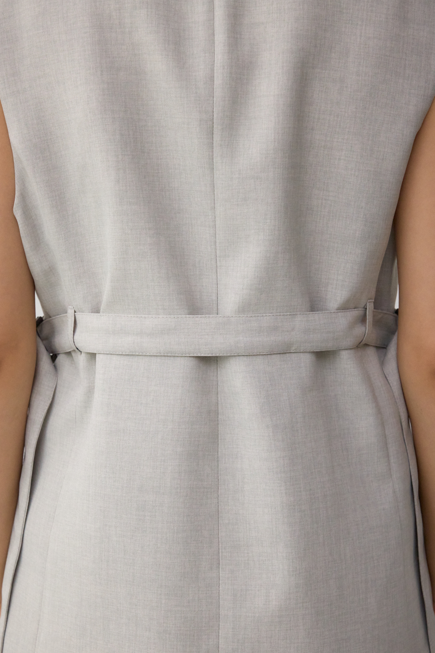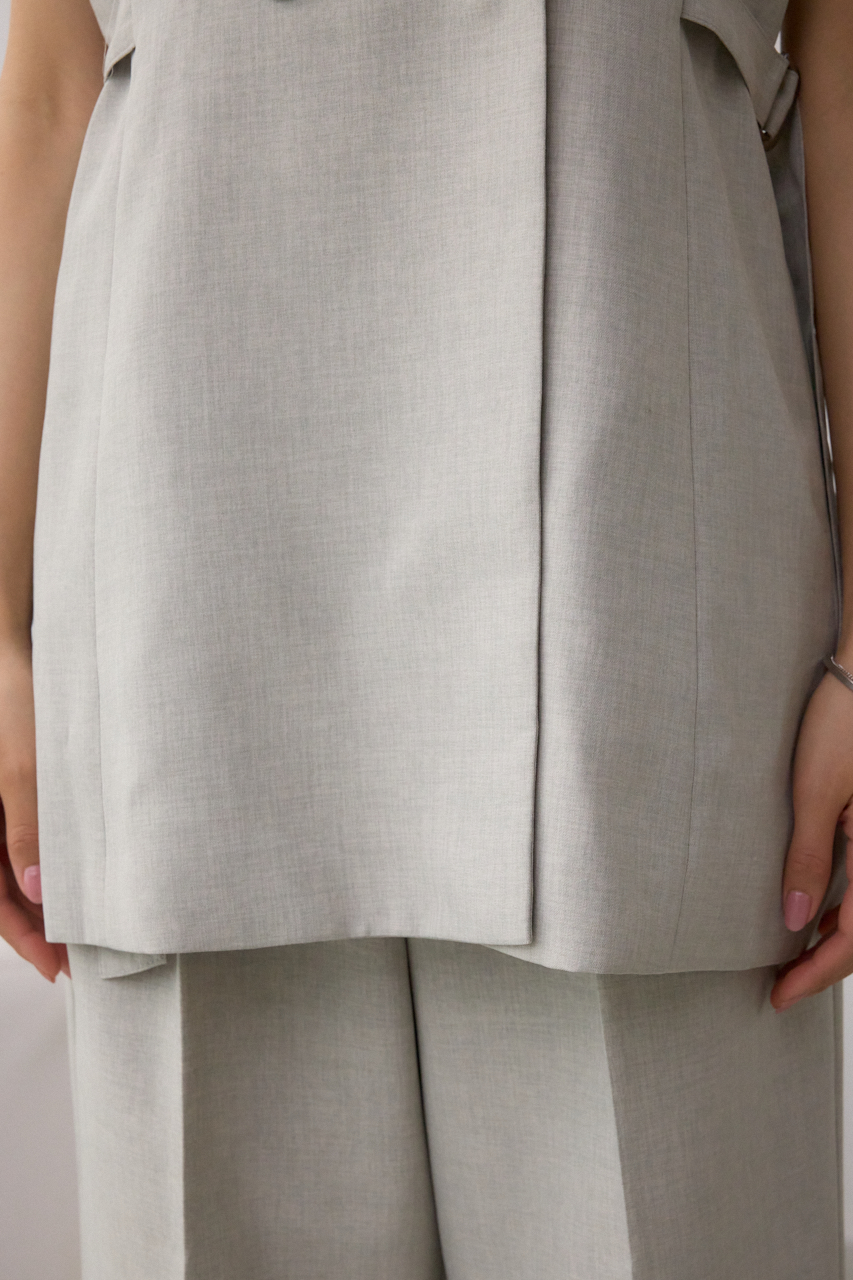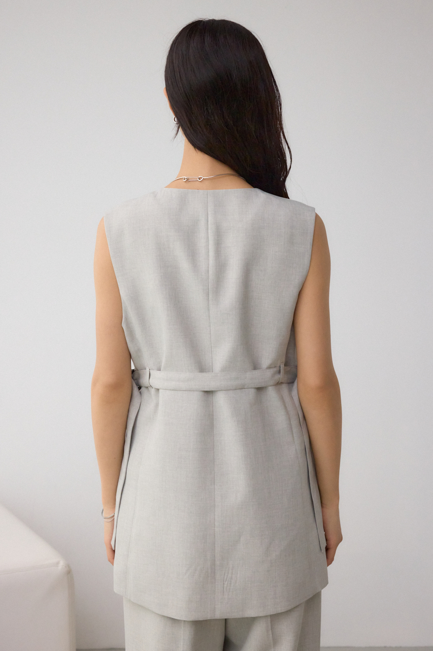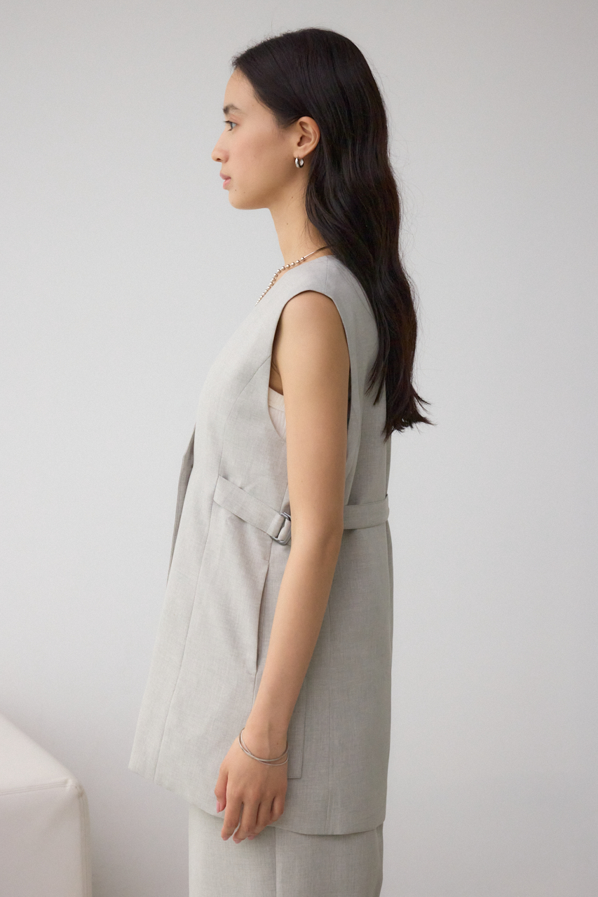 サイドベルトがポイントのリネンライク素材を使用したジレ。