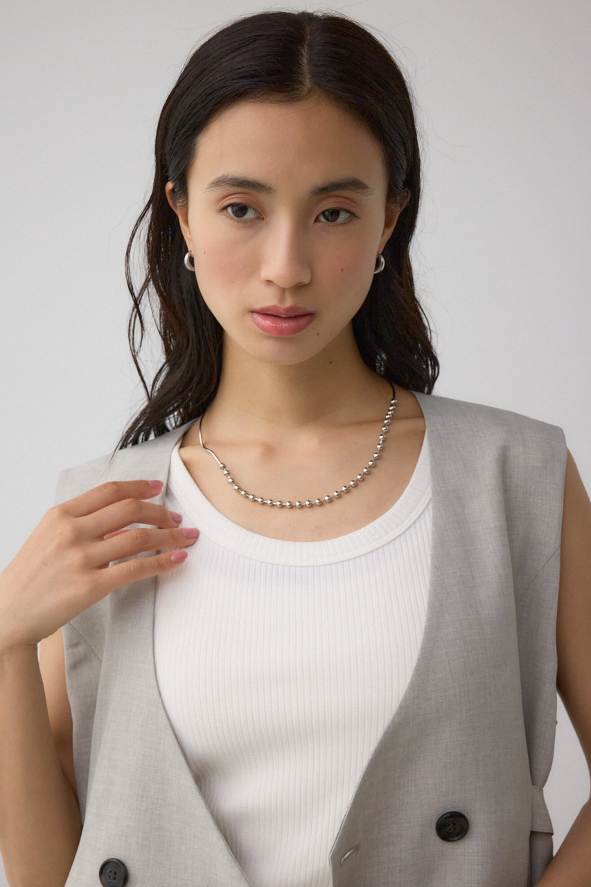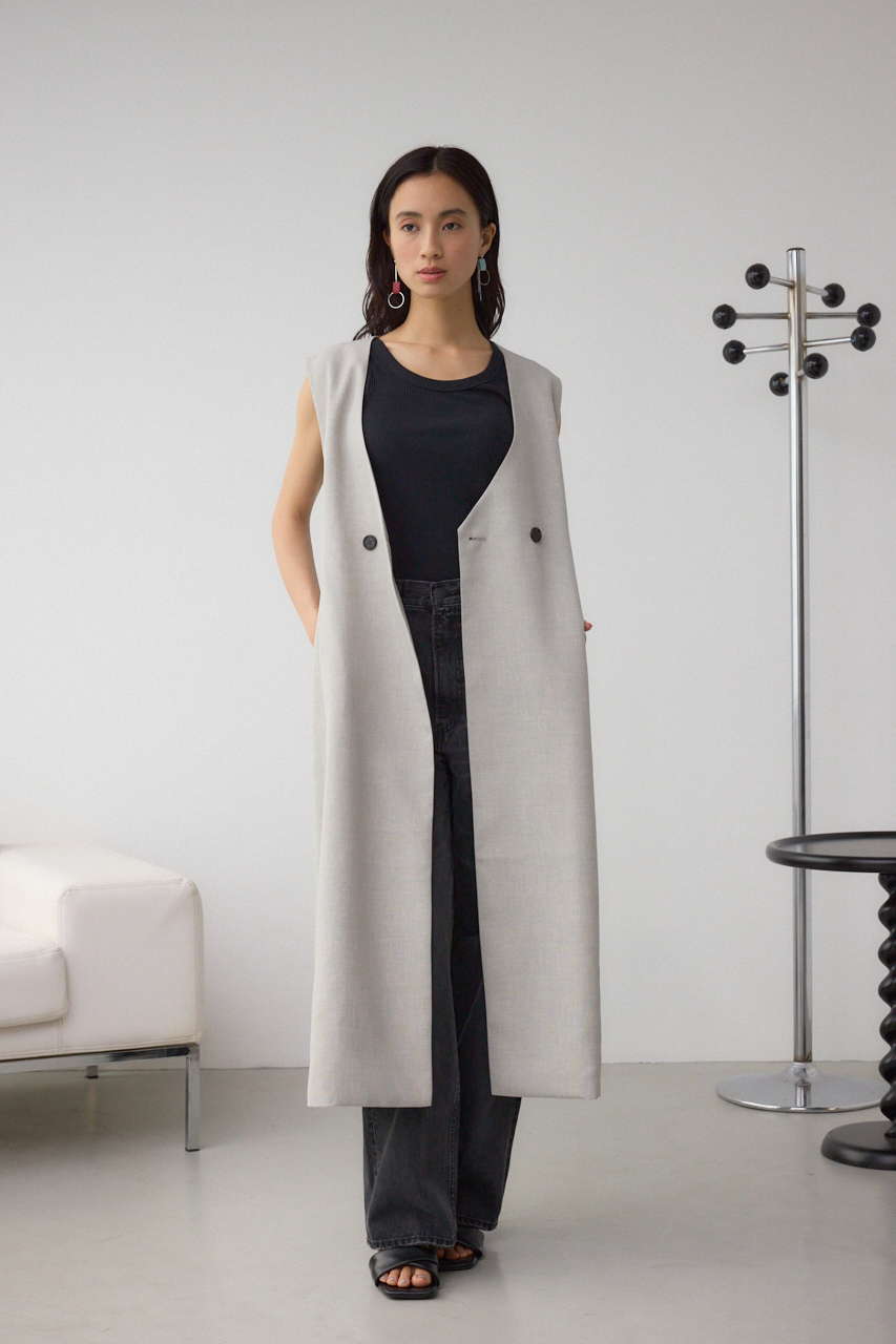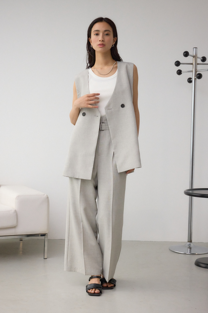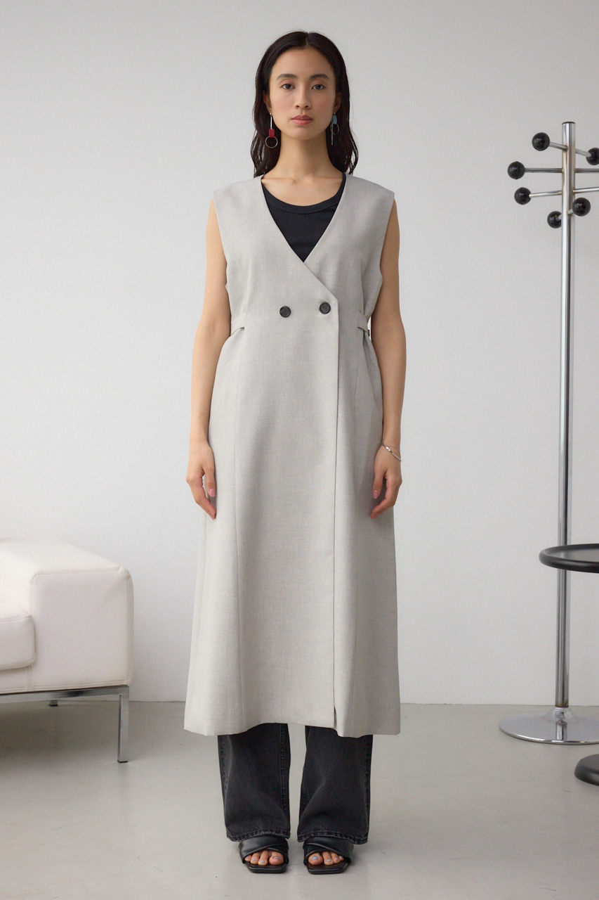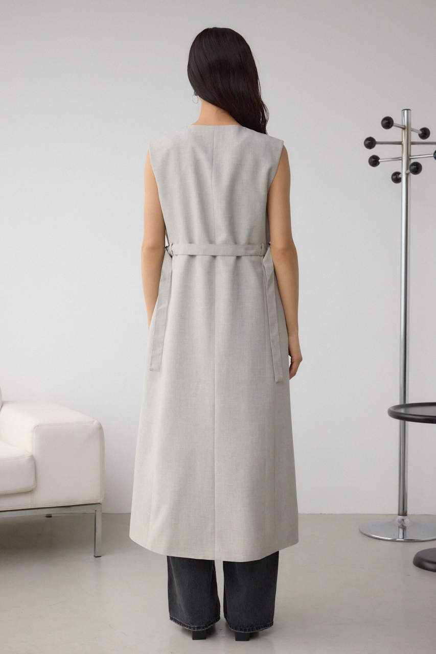 サイドベルトがポイントのリネンライク素材を使用したジレ。