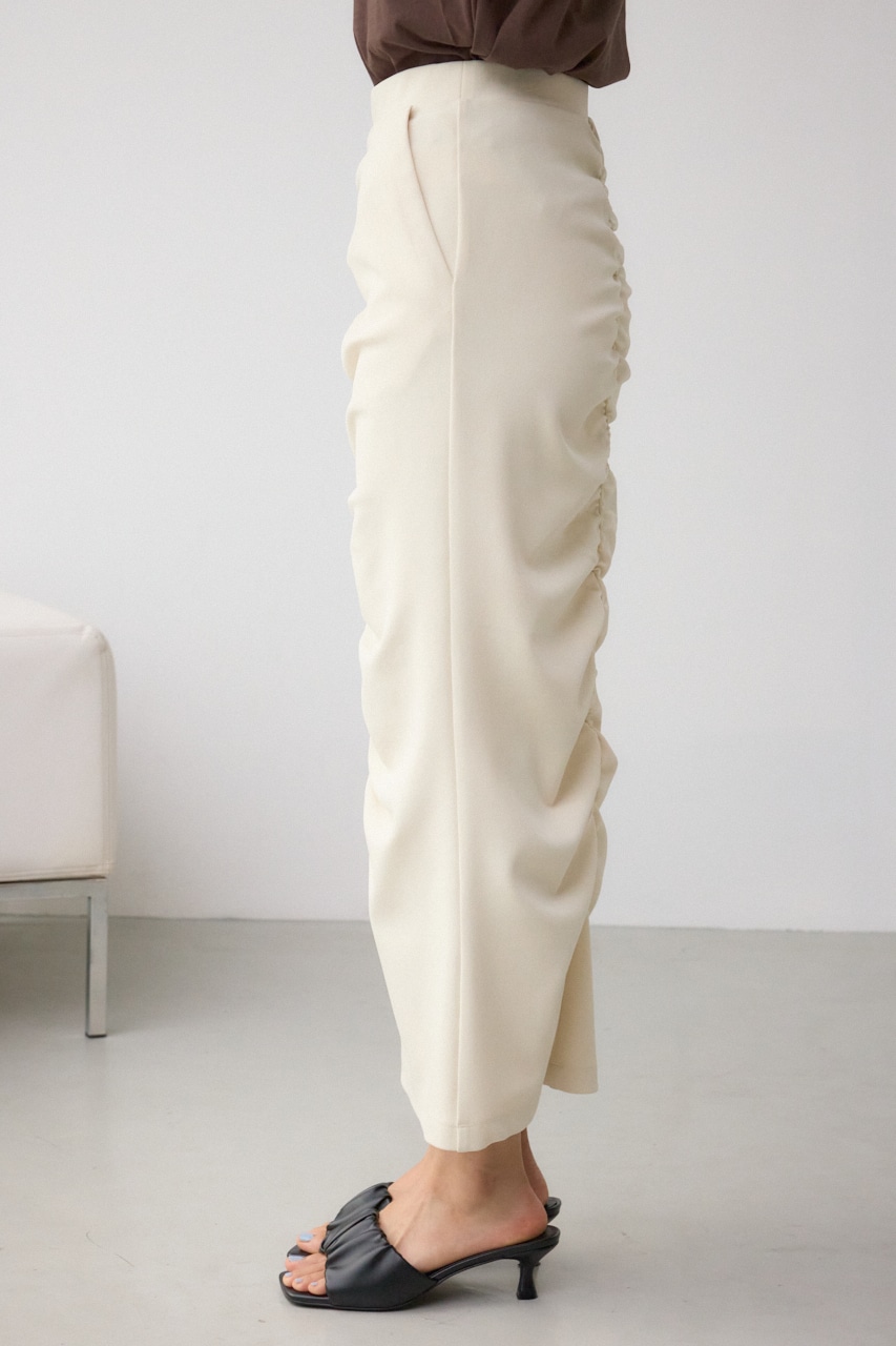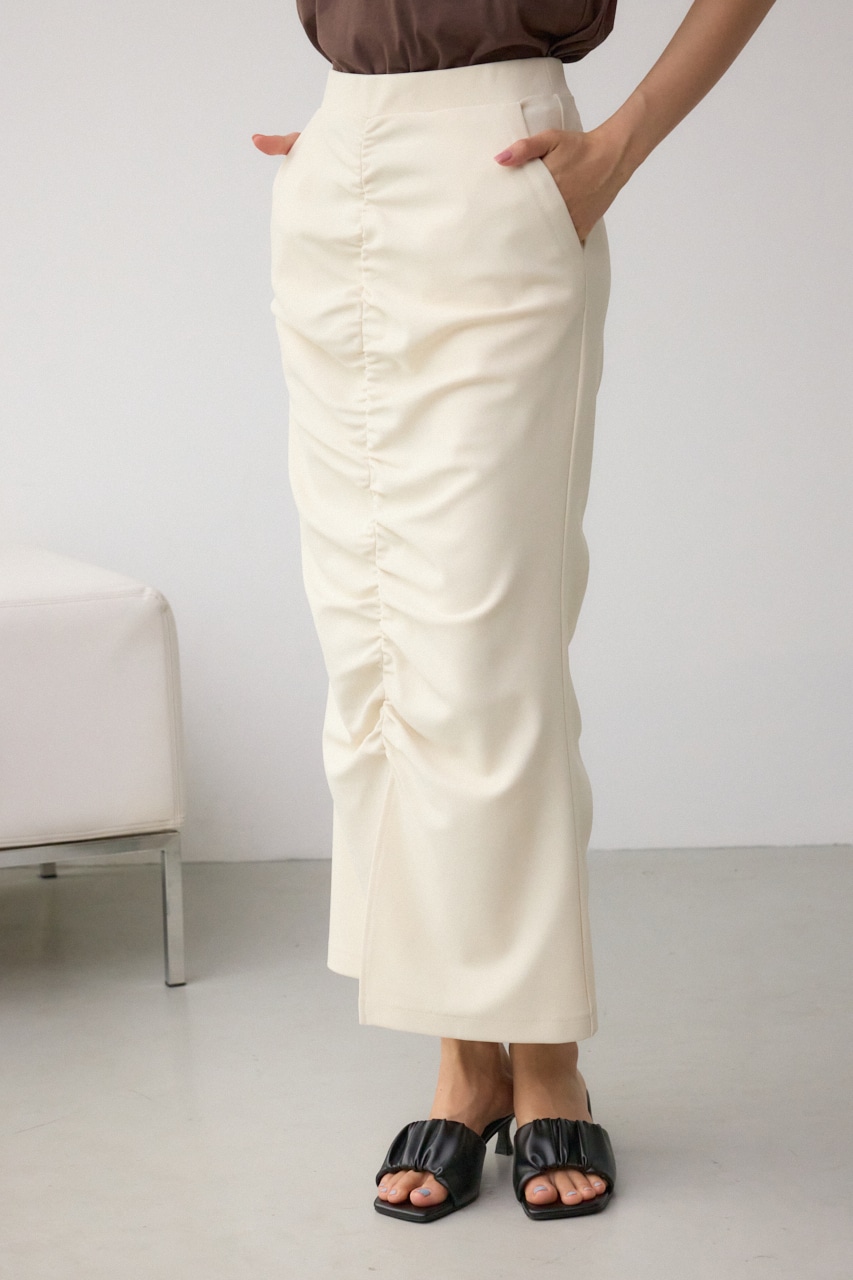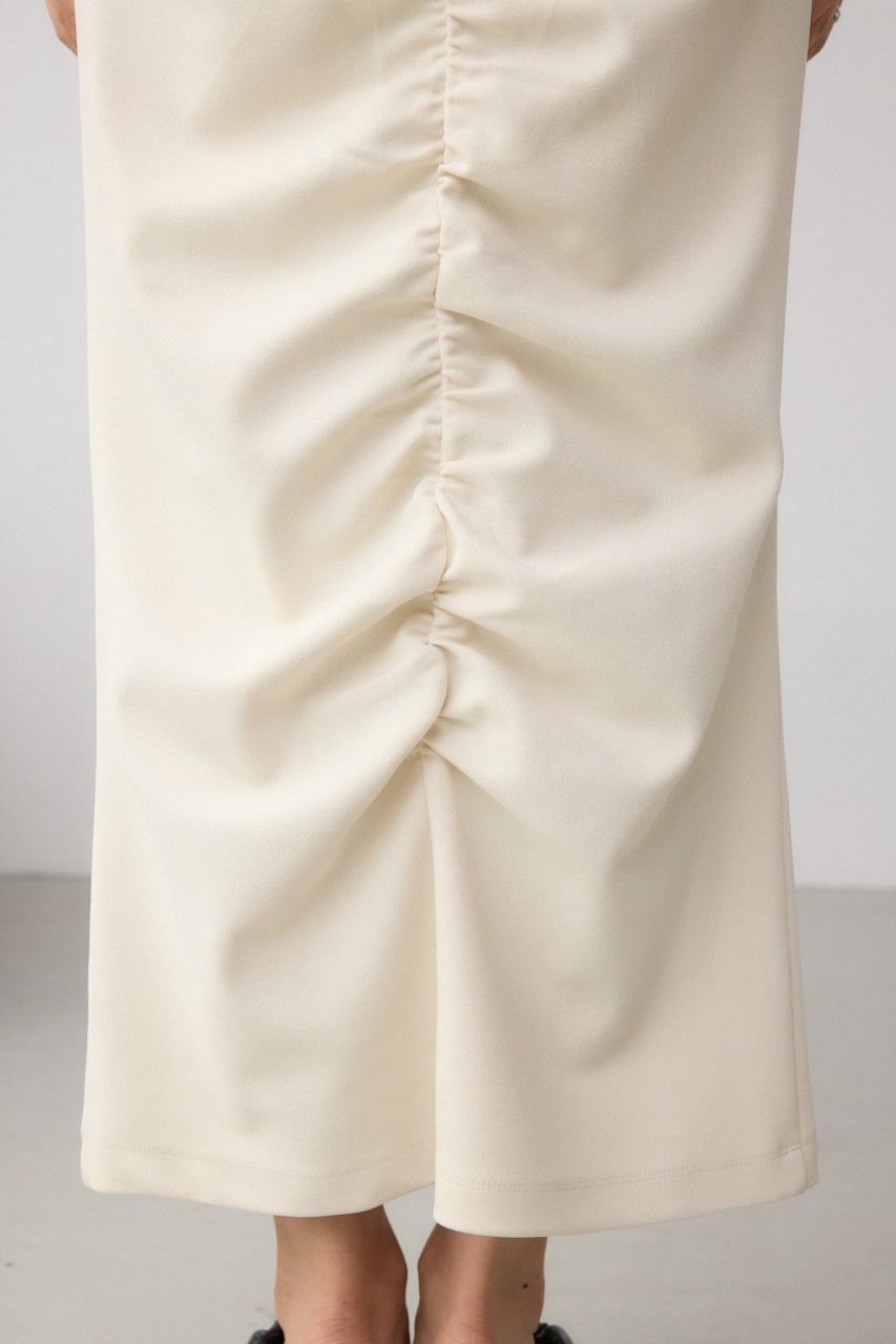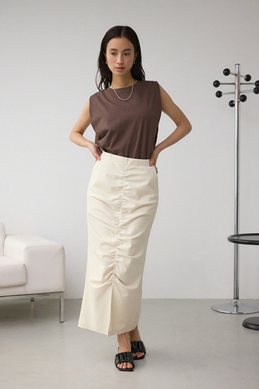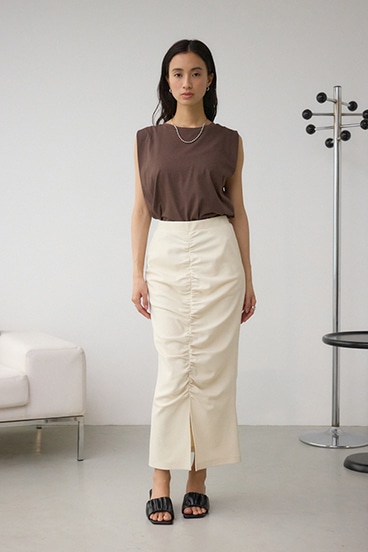 フロントにギャザーを施したスタイルアップが叶う1枚。